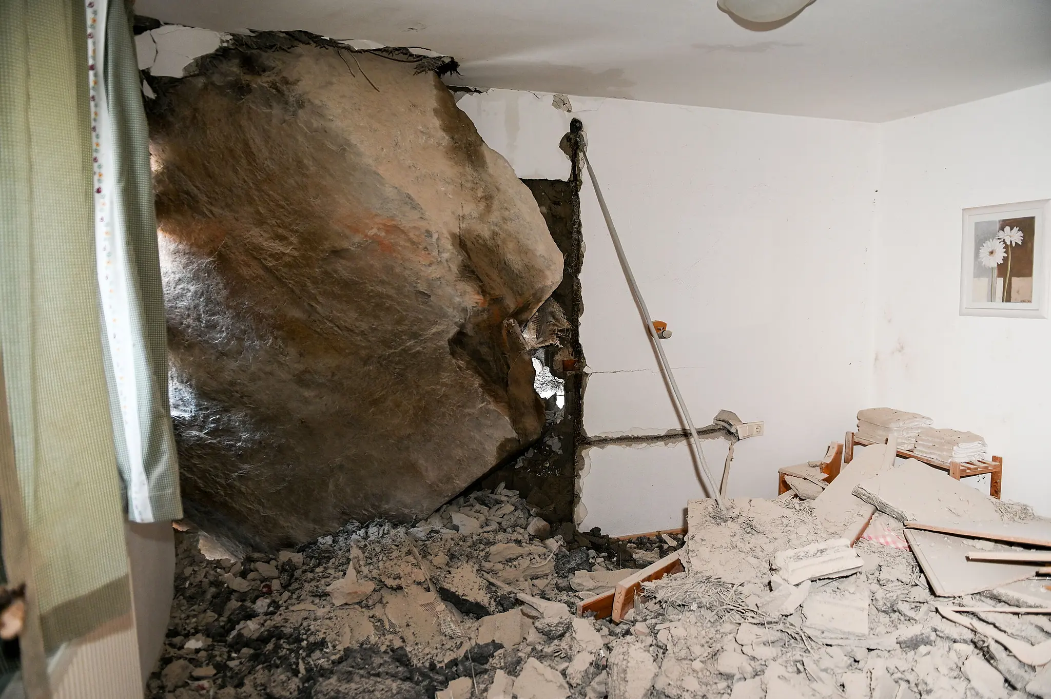 Der Felsblock, der sich gegen 2.00 Uhr gelöst hatte, blieb in der Hauswand stecken. Verletzt wurde niemand, es mussten jedoch insgesamt 14 Personen aus den umliegenden Häusern evakuiert werden, sagte ein Sprecher der Polizei. Nun soll ein Steinschlagschutzdamm errichtet werden.