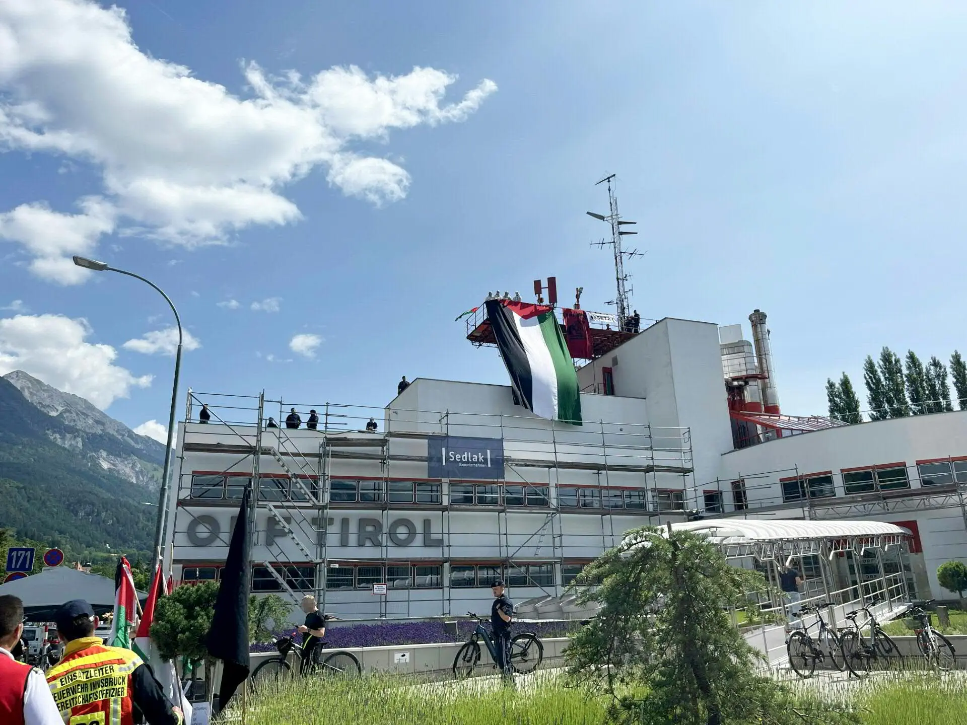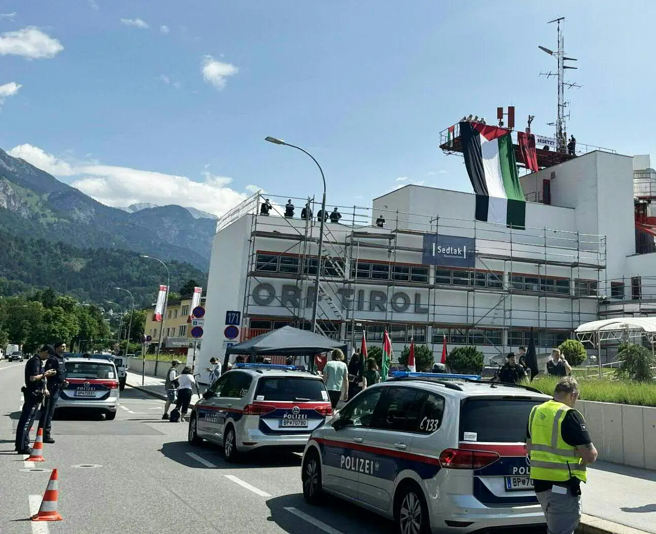 Eine Gruppe pro-palästinensischer Aktivist:innen ist Freitagvormittag in das Landesstudio des ORF Tirol am Innsbrucker Rennweg eingedrungen. Dort stiegen die neun Verdächtigen unter anderem auf das Dach, hissten Palästina-Fahnen und protestierten gegen die ihrer Ansicht nach nicht-objektive Berichterstattung. Als sie sich weigerten, ihre unerlaubte Aktion zu beenden, wurden die Aktivist:innen kurz vor Mittag letztlich festgenommen, sagte ein Polizeisprecher zur APA.