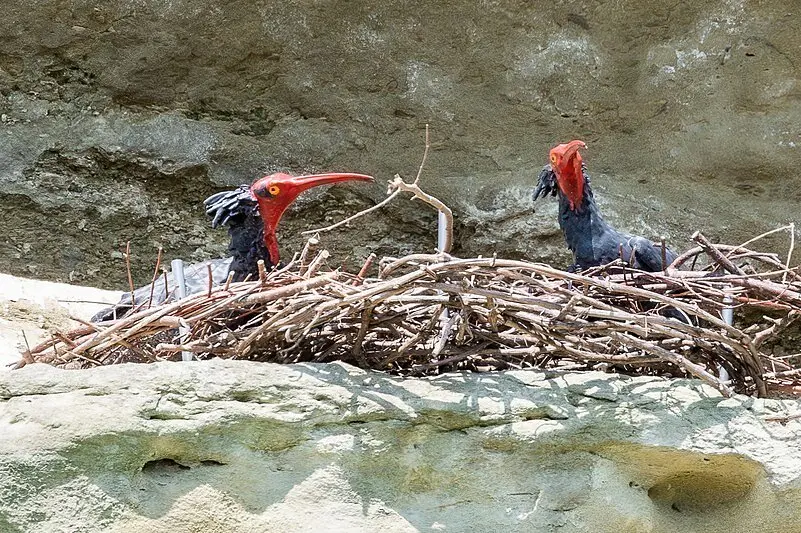 Erstmals haben die Tiere nun selbstständig in einer natürlichen Felsnische in Deutschland bei Überlingen am Bodensee gebrütet. Animiert wurden sie dabei laut Angaben des Tiergartens von zwei Waldrapp-Attrappen, die vom Naturhistorischen Museum Wien (NHM) mittels 3D-Drucker hergestellt wurden.