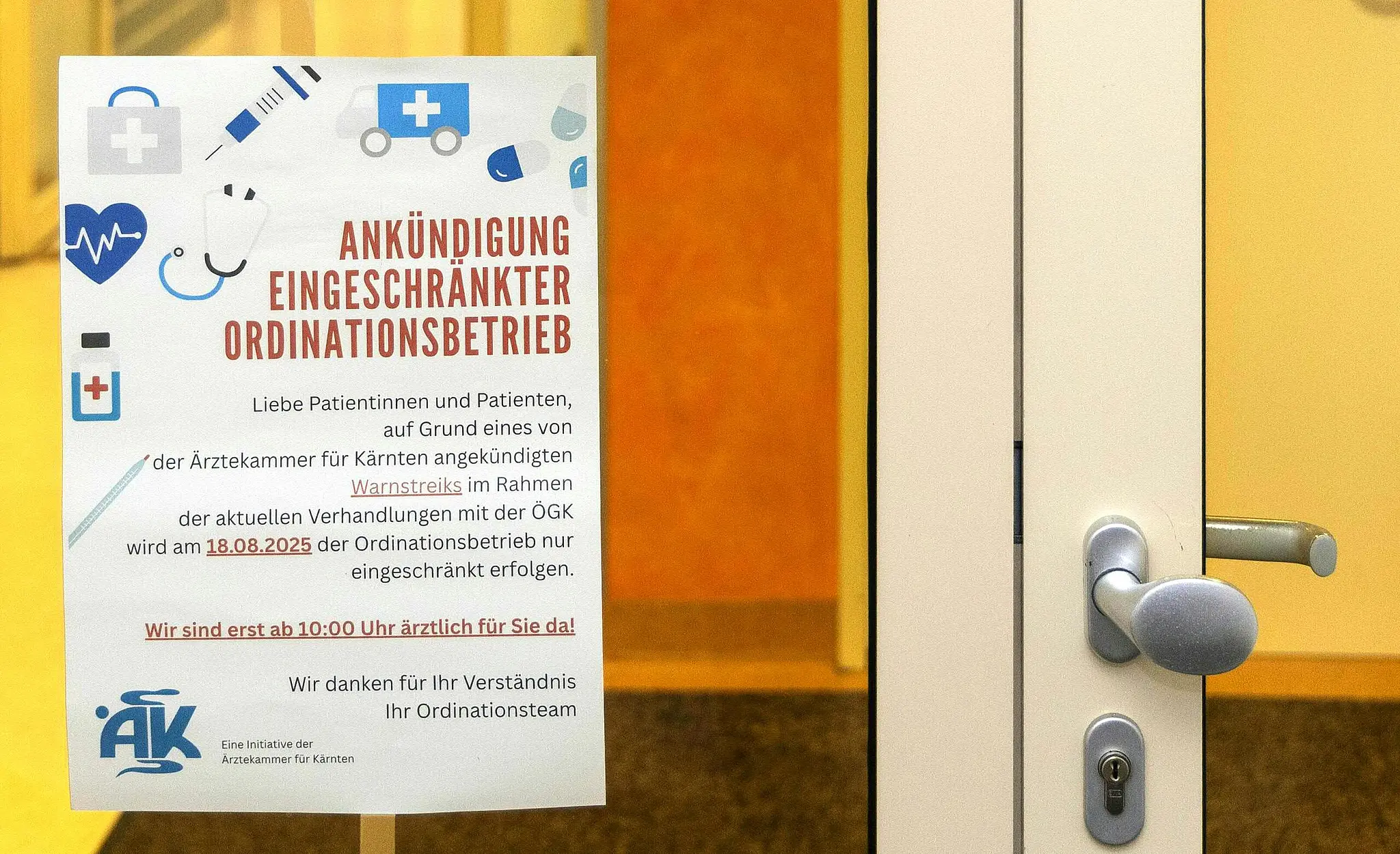 Im Tarifstreit mit der Österreichischen Gesundheitskasse (ÖGK) sind Kärntner Ärztinnen und Ärzte am Montag in einen Warnstreik getreten. Der Ordinationsbetrieb wurde erst um 10 Uhr aufgenommen. Schätzungen der Ärztekammer zufolge haben sich rund drei Viertel der Ärzte dem Streik angeschlossen. Fruchtet der Protest nichts, so können weitere Maßnahmen – auch mehrtägige Ordinationsschließungen – folgen. Auch die Österreichische Ärztekammer unterstützte die Maßnahmen.