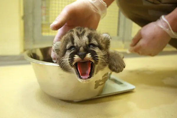 Junge Pumas werden rund drei Monate gesäugt, aber schon mit rund sechs Wochen knabbern die neugierigen "Kätzchen" erstmals am Fleisch.