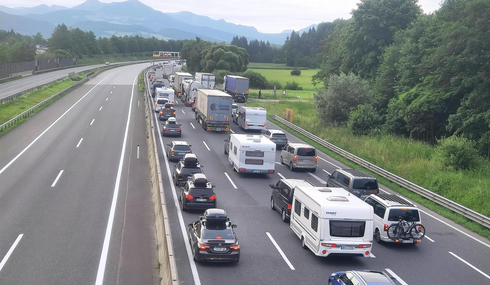 Am Pfingstmontag war die Verkehrslage deutlich entspannter. Die Blockabfertigung vor der Tunnelbaustelle wurde zwischenzeitlich in beiden Richtungen aktiviert. In beiden Fahrrichtungen betrug die Wartezeit gegen 16 Uhr etwa 45 Minuten.