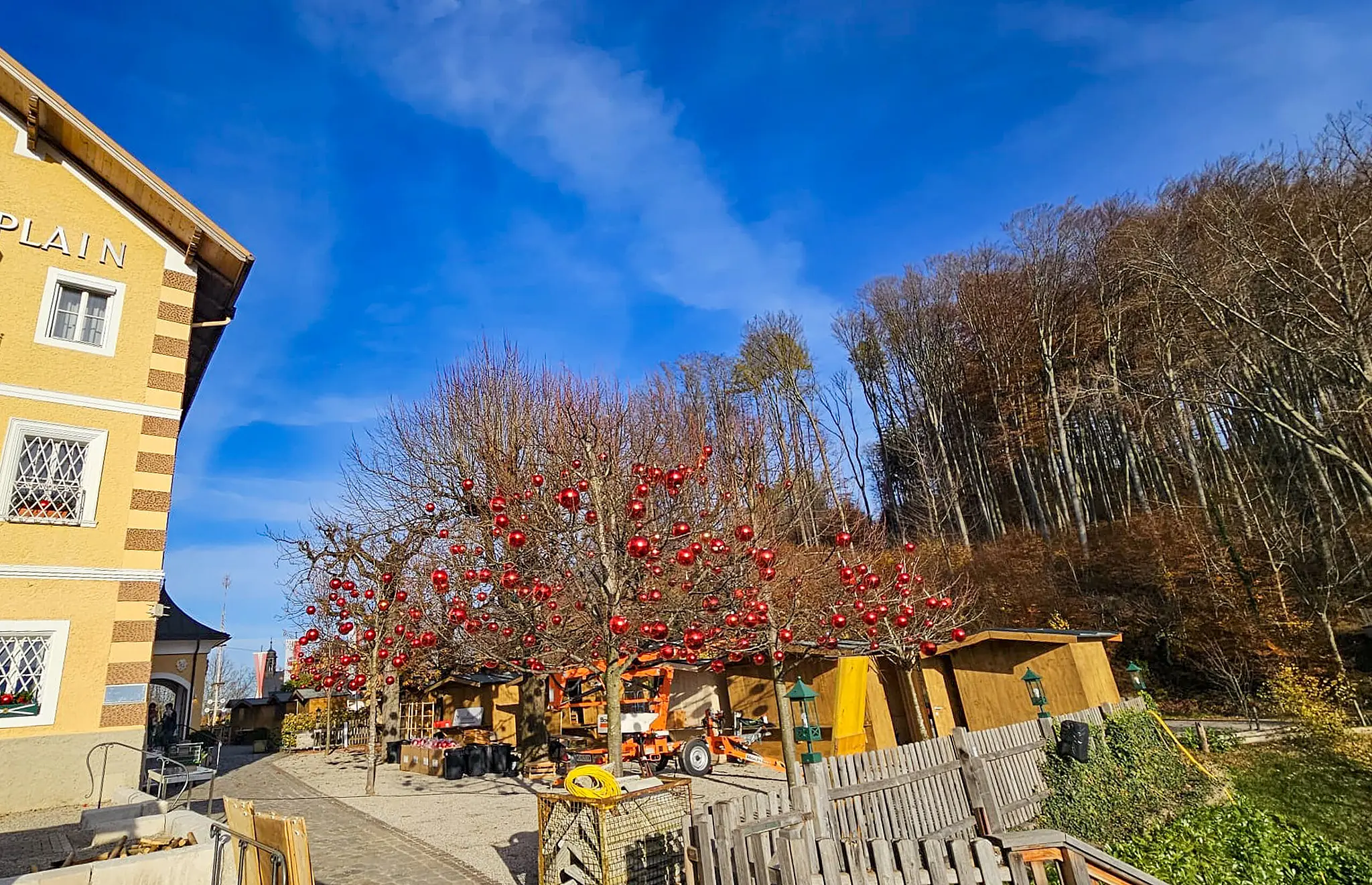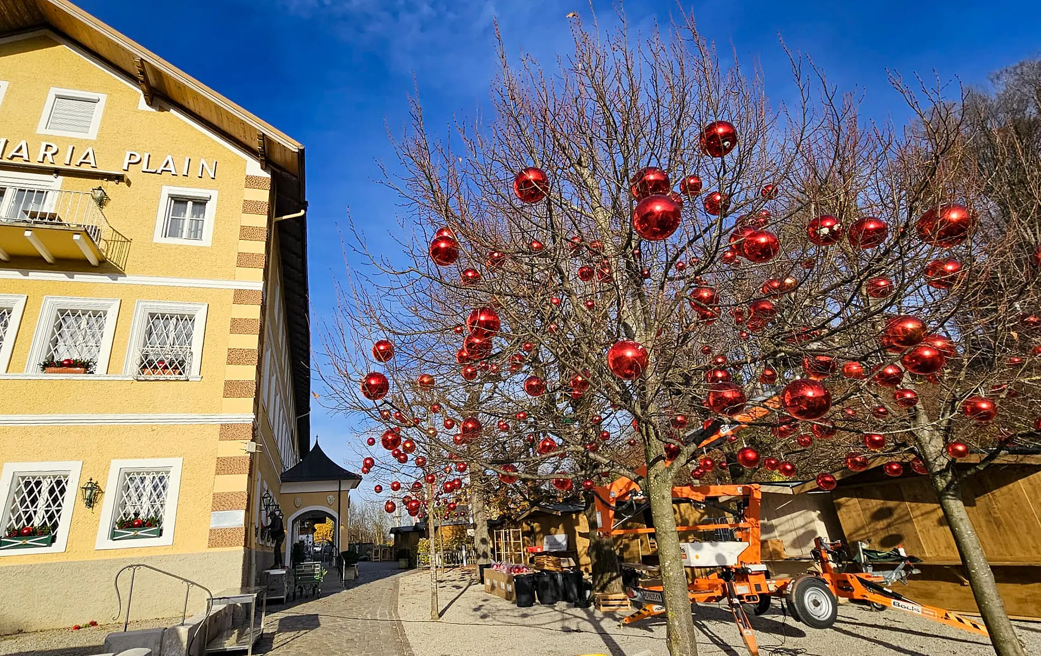 Vielerorts laufen derzeit die Aufbauarbeiten für die Adventmärkte im Bundesland Salzburg. Auch in Maria Plain In Bergheim (Flachgau) soll in wenigen Tagen der stimmungsvolle Plainer Christkindlmarkt eröffnet werden. 500 rote Christbaumkugeln werden auf dem Platz für ein weihnachtliches Ambiente sorgen. Wir haben die Bilder vom Aufbau für euch.