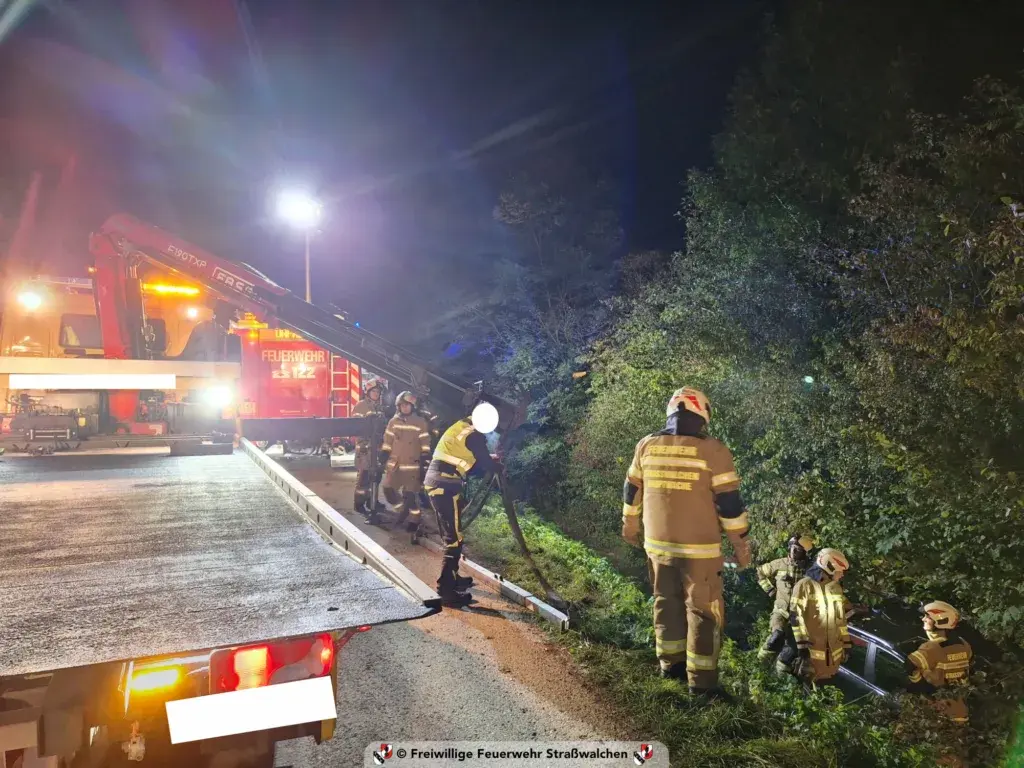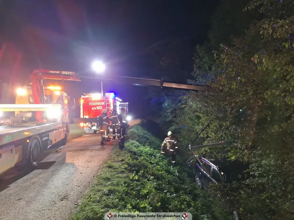 Ein Auto ist in Straßwalchen von der Straße abgekommen und in einen Bach gestürzt. Eine Person wurde verletzt.