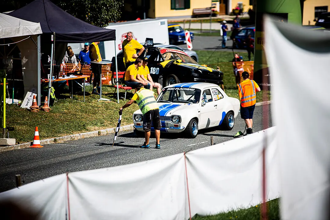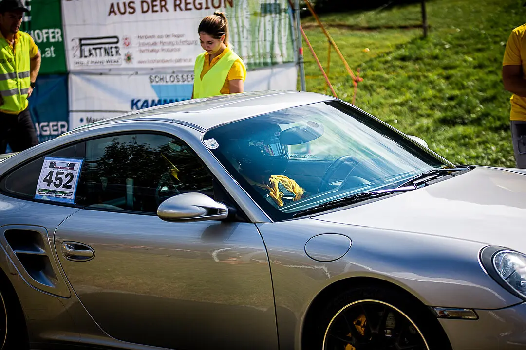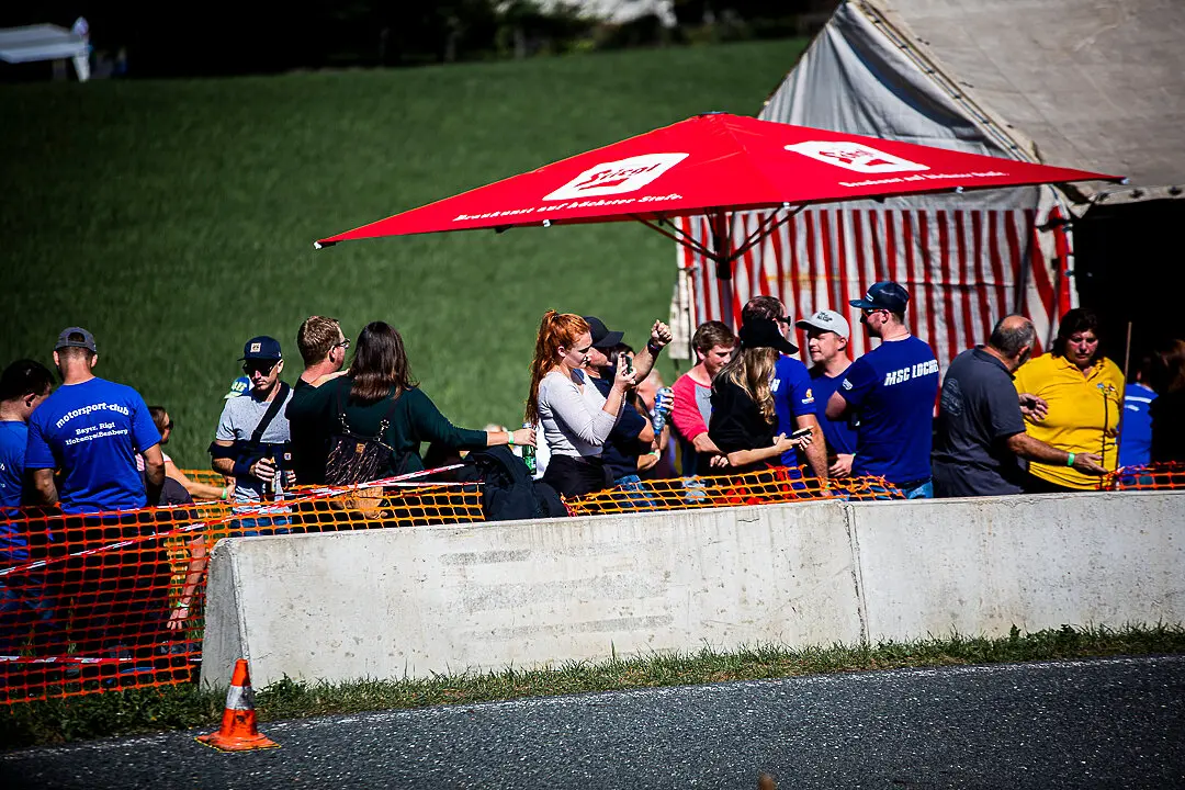 Zahlreiche Zuschauer:innen verfolgten das spannende Spektakel beim SLM-Bergslalom in Schlößl in Nußdorf am Haunsberg (Flachgau) bei bestem Wetter. Die Amateur-Rennfahrerinnen manövrierten ihre Wagen gekonnt auf der kurvenreichen Straße.