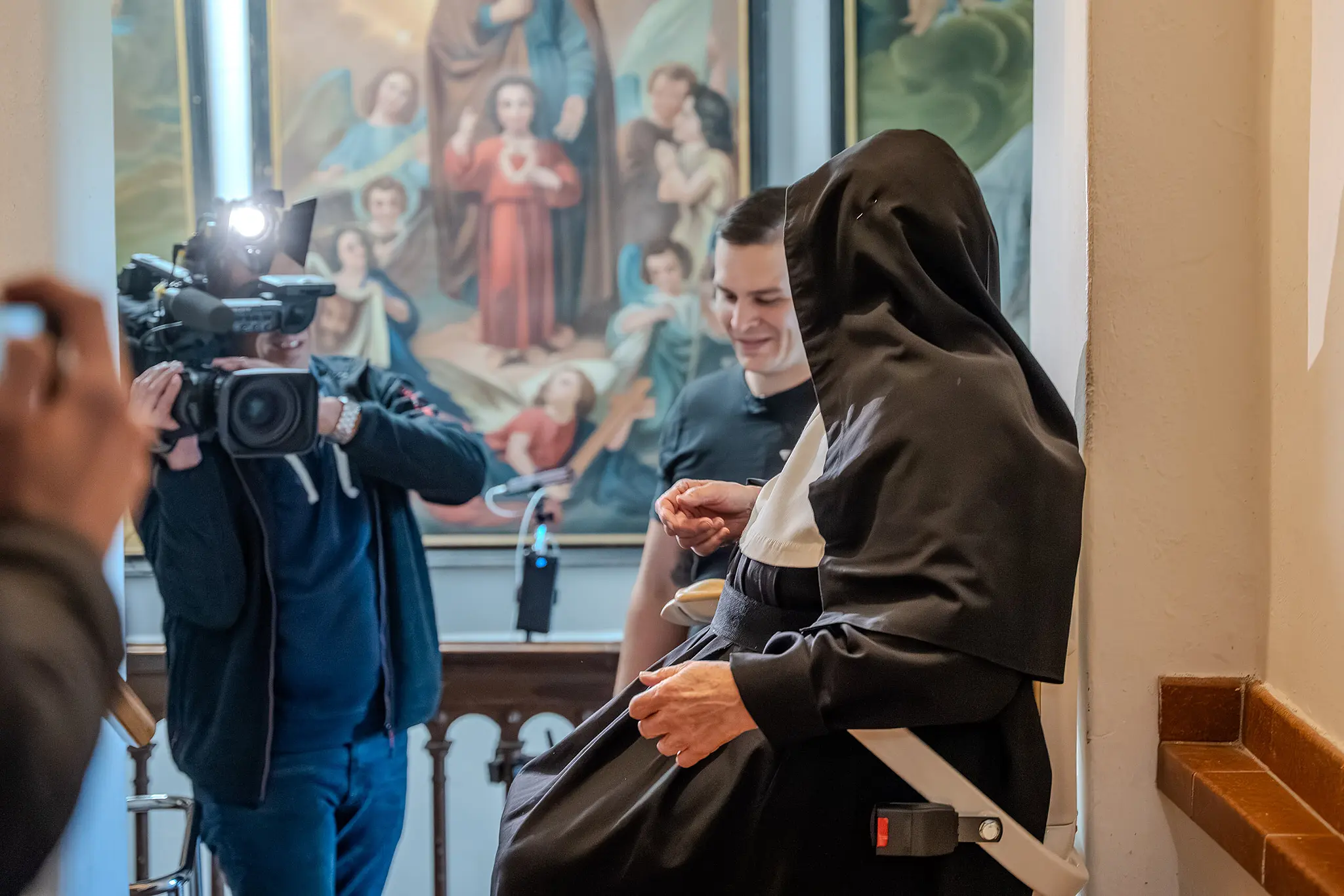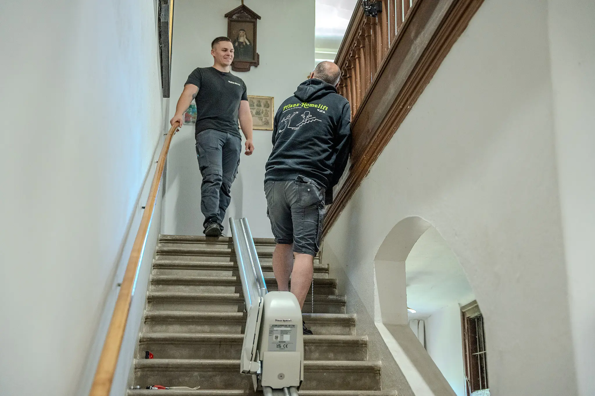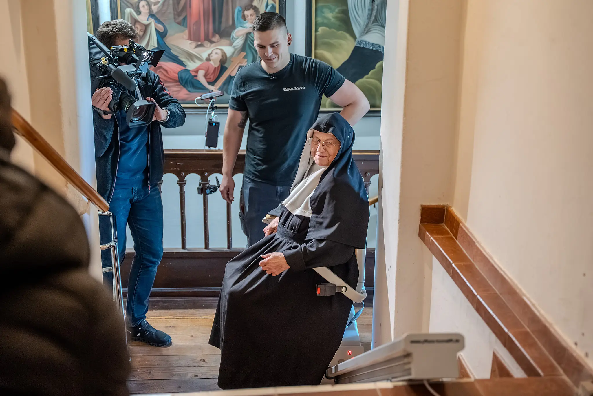 Der bis zum Auszug der Nonnen vorhandene Treppenlift war abgebaut worden – für die betagten Frauen eine Herausforderung. Sie sind zum Teil auf den Rollator angewiesen. Für den Weg von ihren Zimmern im vierten Stock hinunter in den Garten oder in die Klosterkapelle hatten sie nun mühsam die Treppen nehmen müssen. Der neue Lift dürfte den Schwestern das Leben also deutlich erleichtern. Gespendet wurde das Hilfsgerät von der deutschen Firma Pflanz, die nicht nur die Kosten übernahm, sondern Lieferung und Installation auch selbst durchführte.