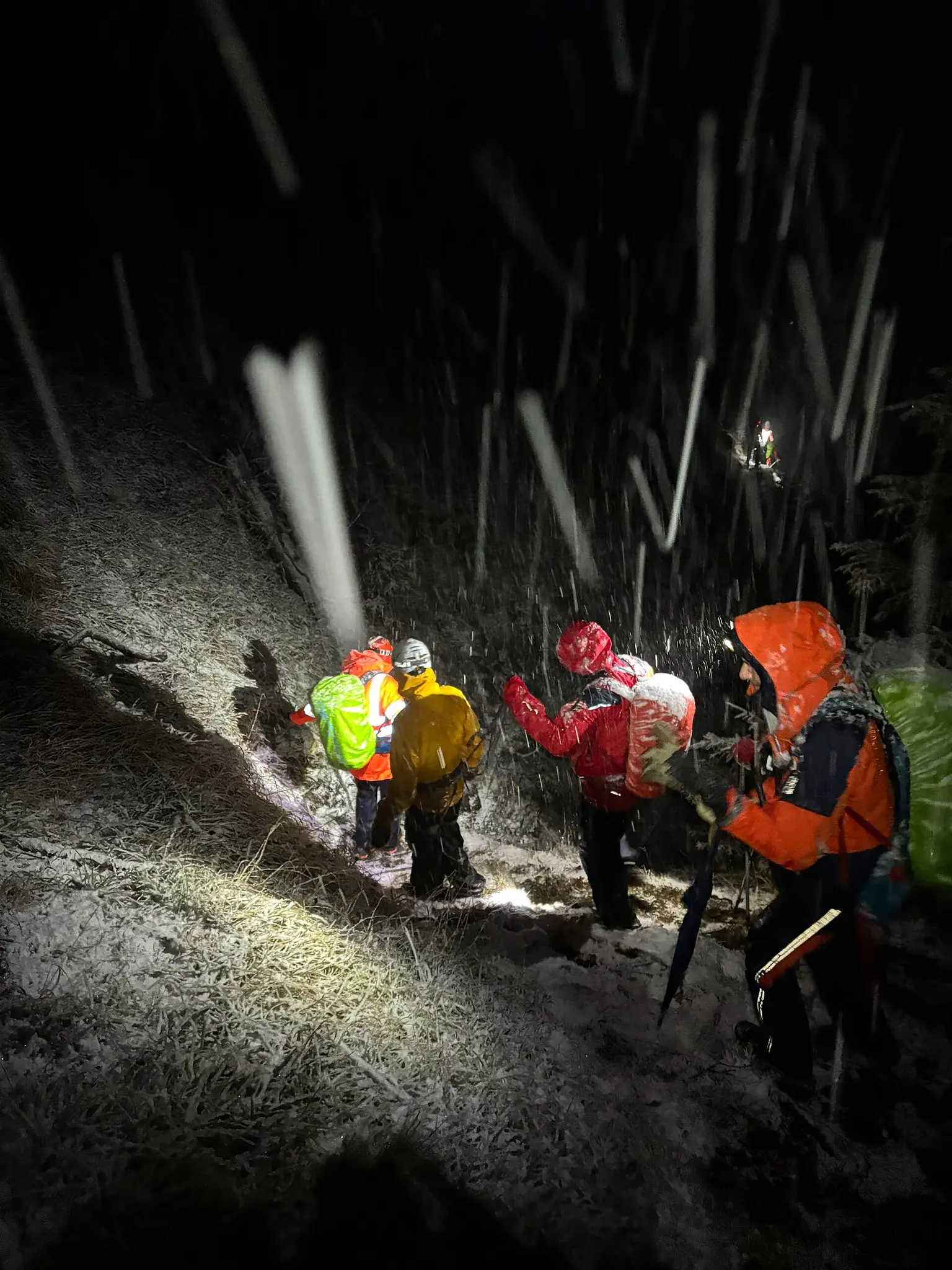 Trotz widrigster Bedingungen stiegen zehn Bergretter entschlossen zum Gipfel auf. Oben angekommen, versorgten sie die völlig durchnässten, unterkühlten und erschöpften Männer mit trockener Kleidung und Wärmepads. Im Anschluss konnte das Trio mit Hilfe der Bergrettung unverletzt ins Tal begleitet werden.