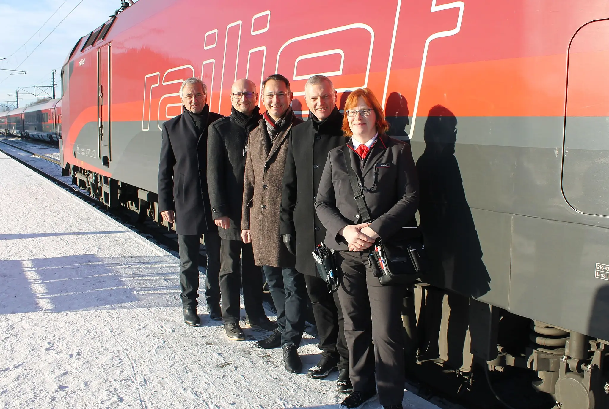 Neumarkts Bürgermeister Adi Rieger (ÖVP), Bürgermeister a.D. Emmerich Riesner, Landtagsabgeordneter Josef Schöchl (ÖVP) und ÖBB-Regionalmanager Christian Spanner begrüßten einen der ersten Railjets am Sonntagvormittag. „Der Ausbau des Bahnhofs Neumarkt-Köstendorf“ zum Knotenbahnhof sowohl für den Fern- und Nahverkehr bringt einen echten Mehrwert für die Menschen in der Region, die so noch stärker zum Umstieg auf den öffentlichen Verkehr bewogen werden können“, sind sich Rieger und Spanner einig.