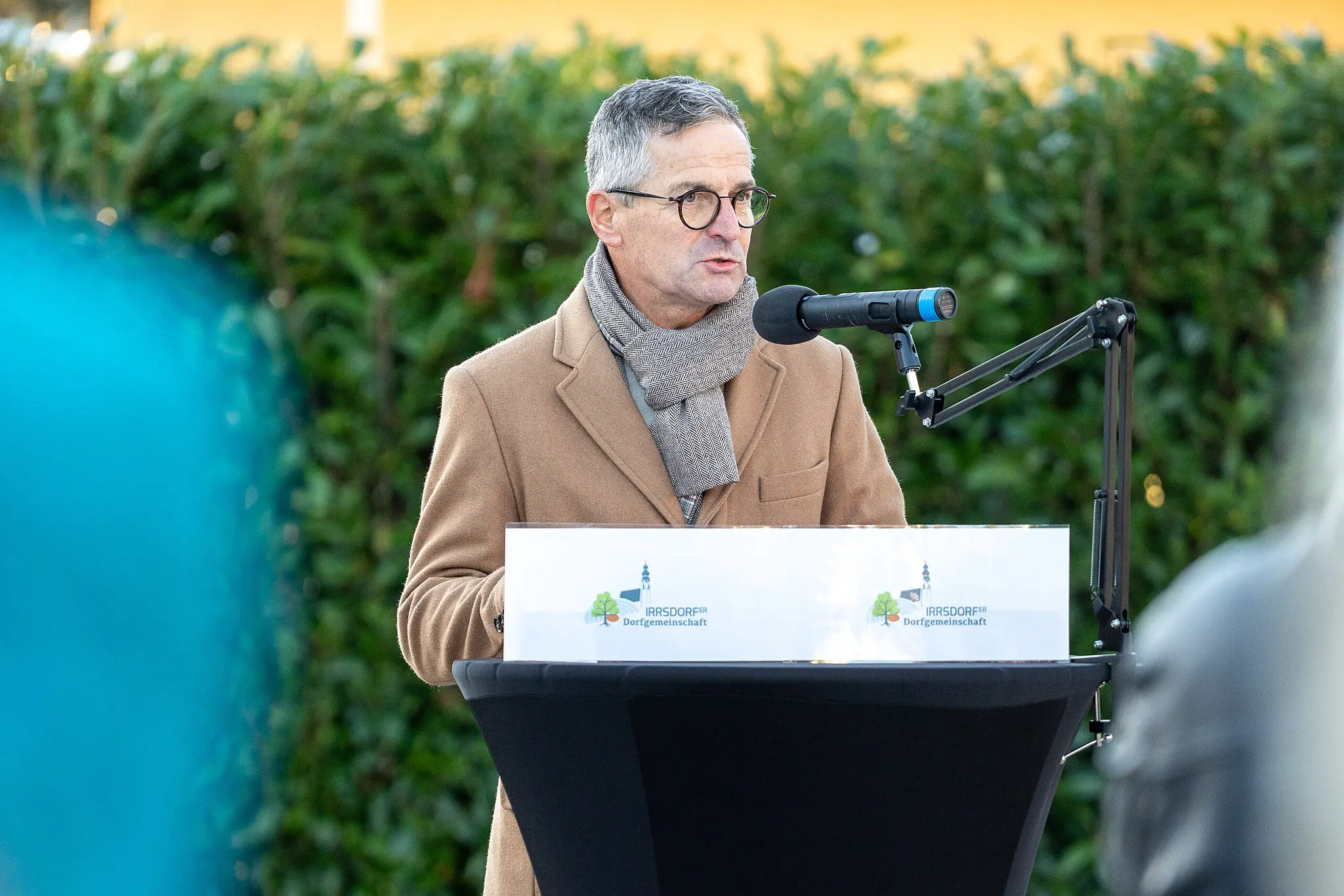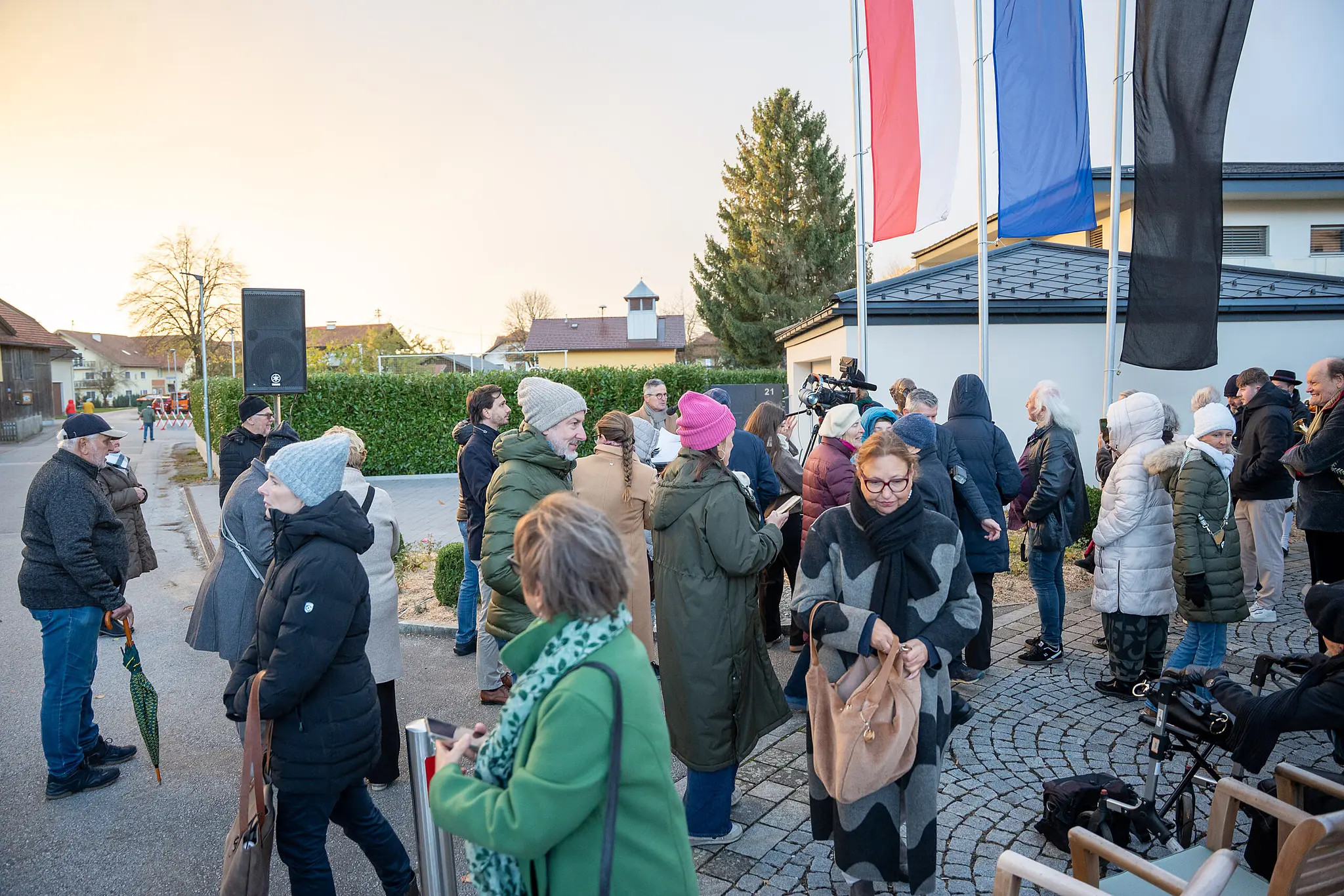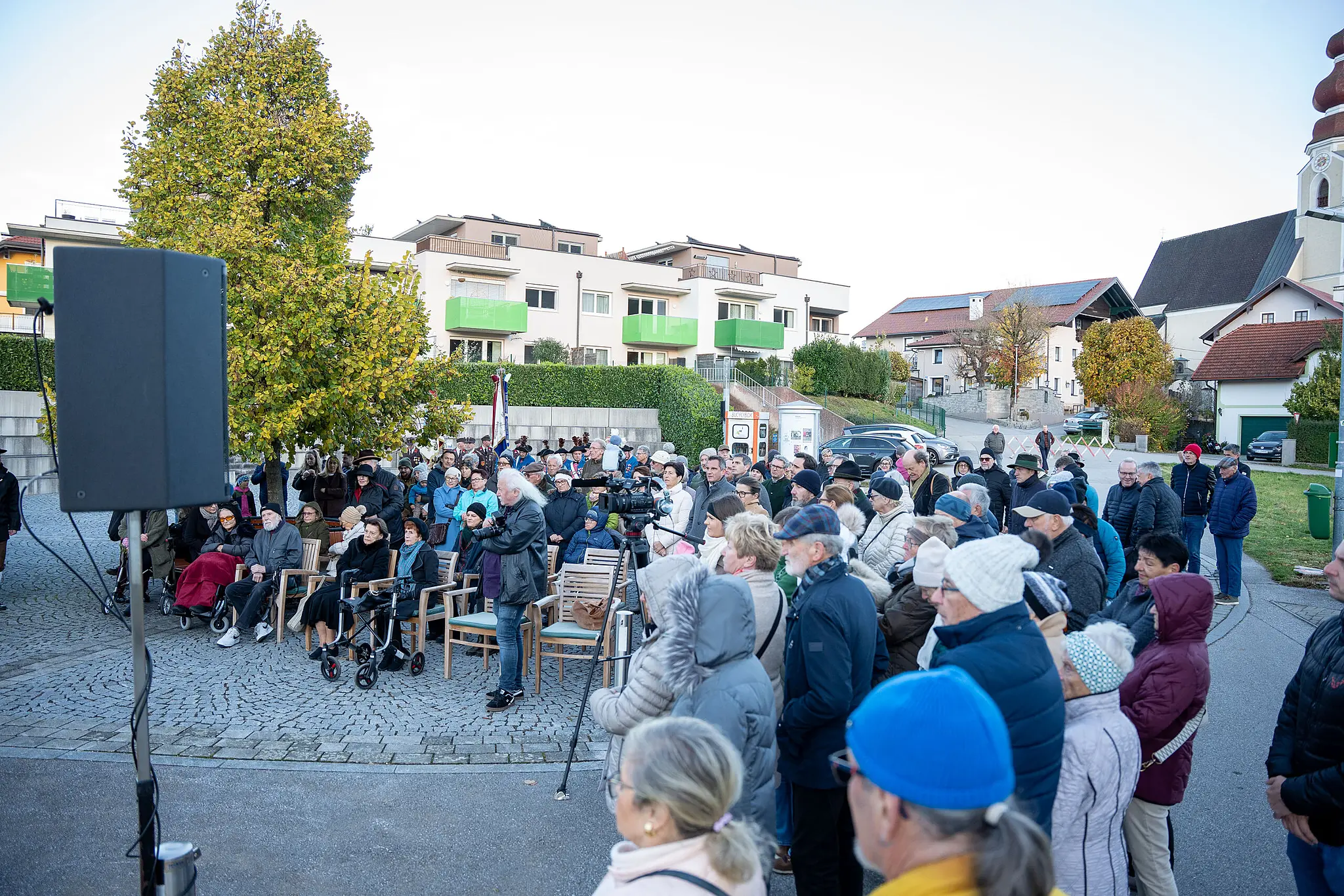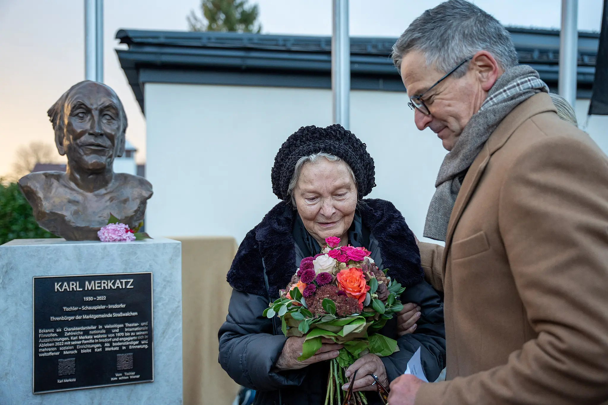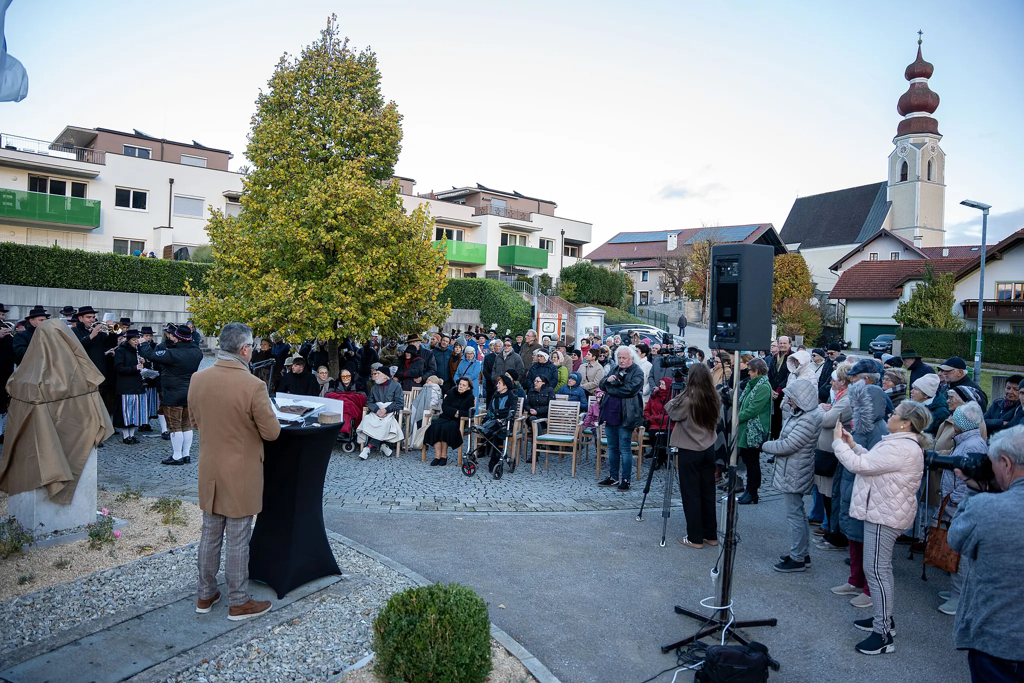 Das Kunstwerk stammt aus der Hand von Merkatz‘ Enkeltochter Magdalena Kasper Bayerl – einer Bildhauerin, die ihrem Großvater mit der Bronzeskulptur ein würdiges Denkmal setzen will. Die Marktgemeinde lud alle Bürgerinnen und Bürger sowie Gäste aus der Region dazu ein, Teil der Feier zu sein und gemeinsam das kulturelle Erbe des legendären Schauspielers zu würdigen. Erwartet wurden zahlreiche örtliche Vereine, darunter die TMK Hochfeld, die Leonhardischützen, die Feuerwehr und die Goldhaubengruppe. Auch öffentliche Vertreter wie der Obmann der LAG Seenland, Funktionäre aus Marktgemeinde und Tourismusverband hatten ihre Teilnahme zugesagt bzw. in Aussicht gestellt. "Die Landespolitik hat aufgrund des Todes von Landesrat Josef Schwaiger abgesagt und ließ sich entschuldigen", schilderte Rainer. Zu Ehren des verstorbenen Politikers wurde eine Trauerminute abgehalten.