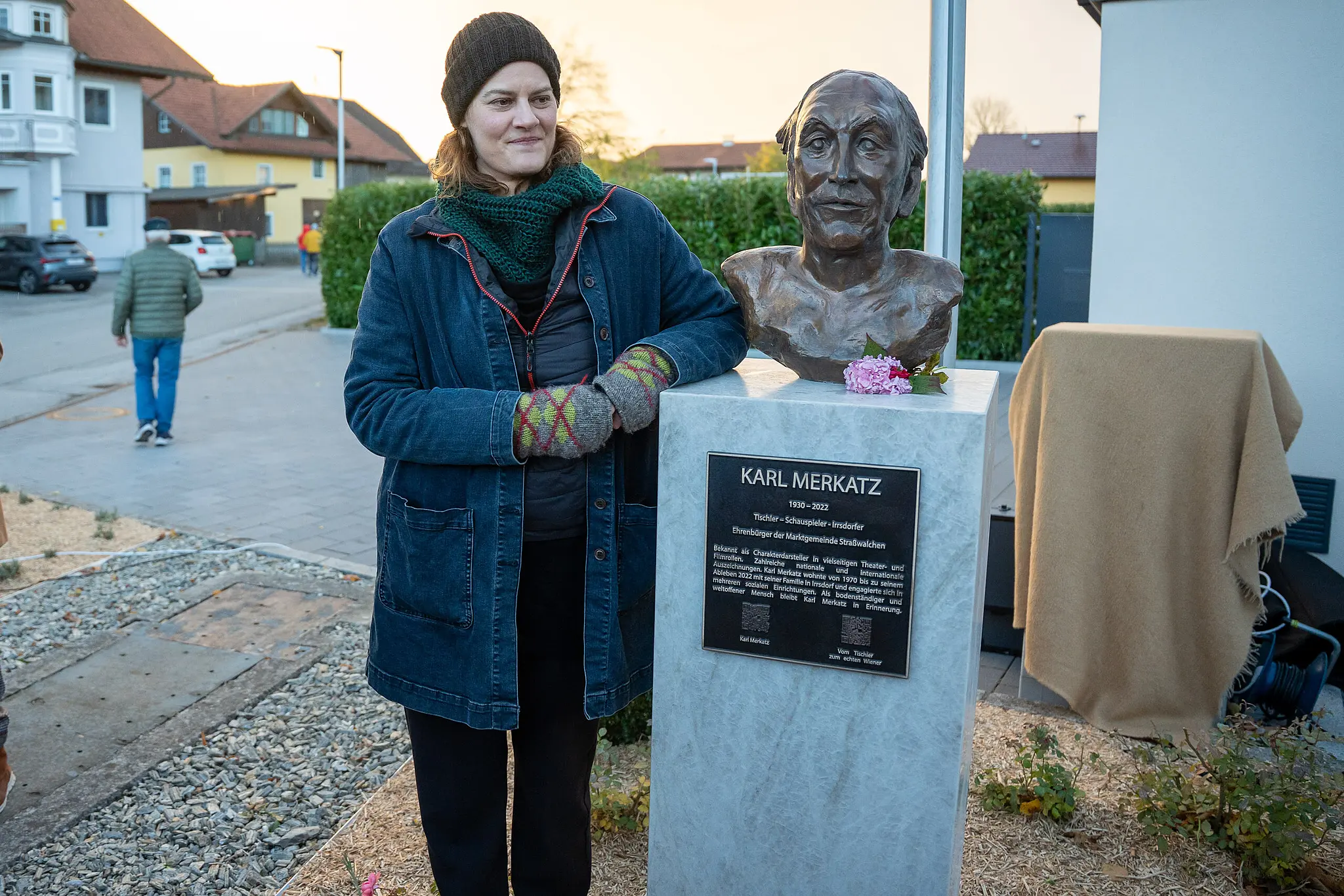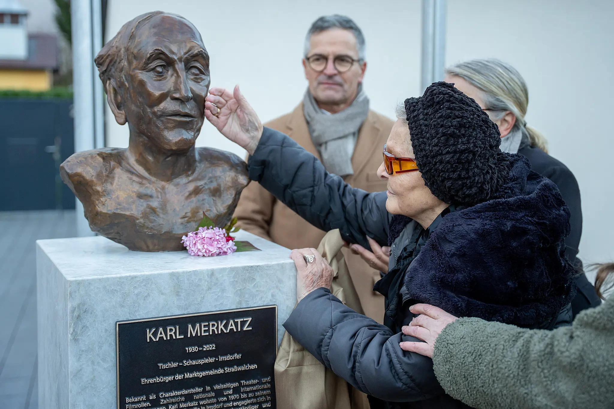 Karl Merkatz ist Anfang Dezember 2022 im Alter von 92 Jahren verstorben. Er hat die heimische Film- und Fernsehlandschaft geprägt wie kaum ein anderer. Legendär war seine Rolle als "Mundl". Merkatz wurde 2021 zum Ehrenbürger in seiner Wahlheimat Straßwalchen (Flachgau) ernannt. Zu Ehren des vor drei Jahren Verstorbenen wurde am Freitag am Irrsdorfer Dorfplatz eine Büste aus Bronze enthüllt.