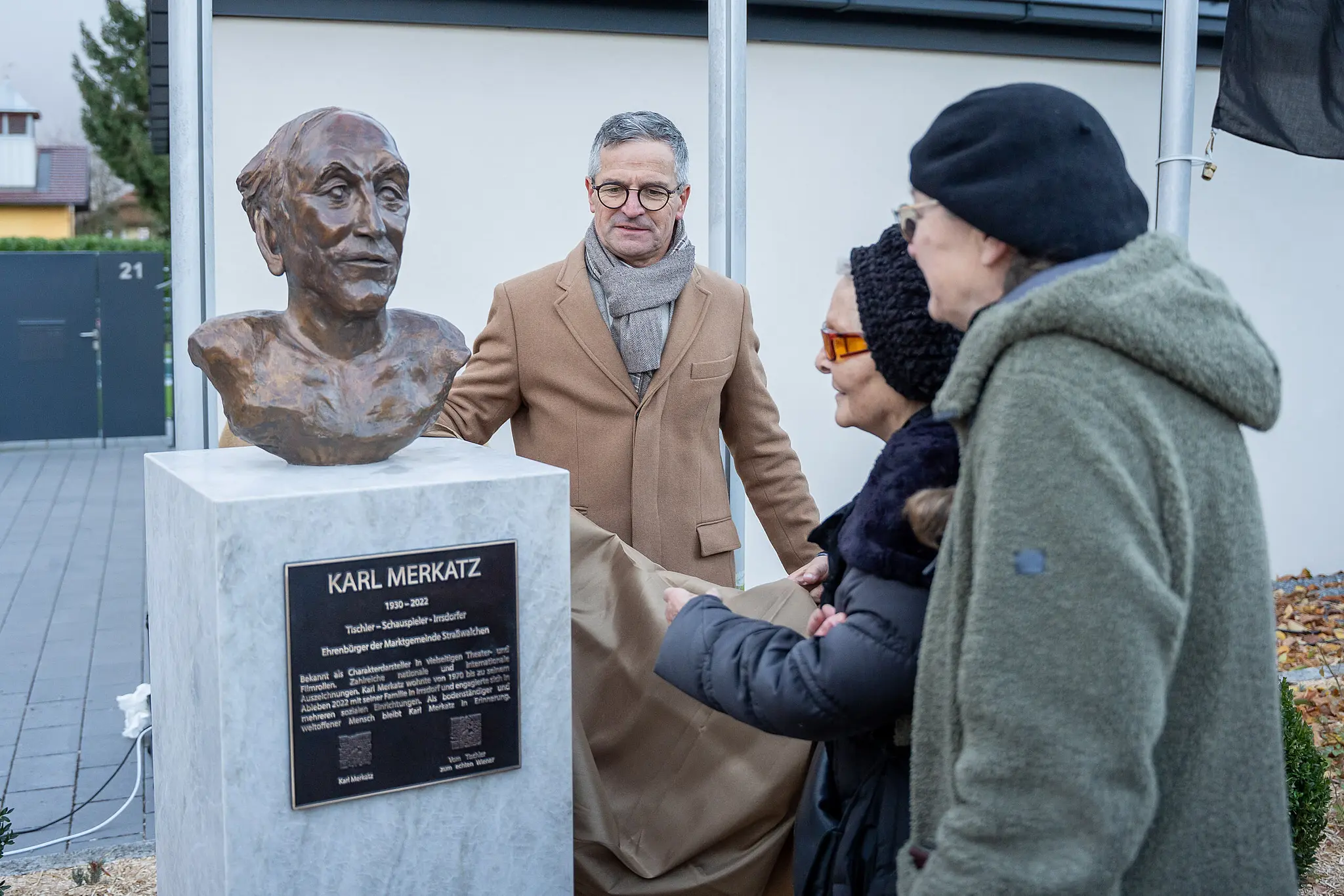 Am Irrsdorfer Dorfplatz in Straßwalchen wurde eine Bronzebüste zu Ehren des legendären Künstlers Karl Merkatz feierlich enthüllt.