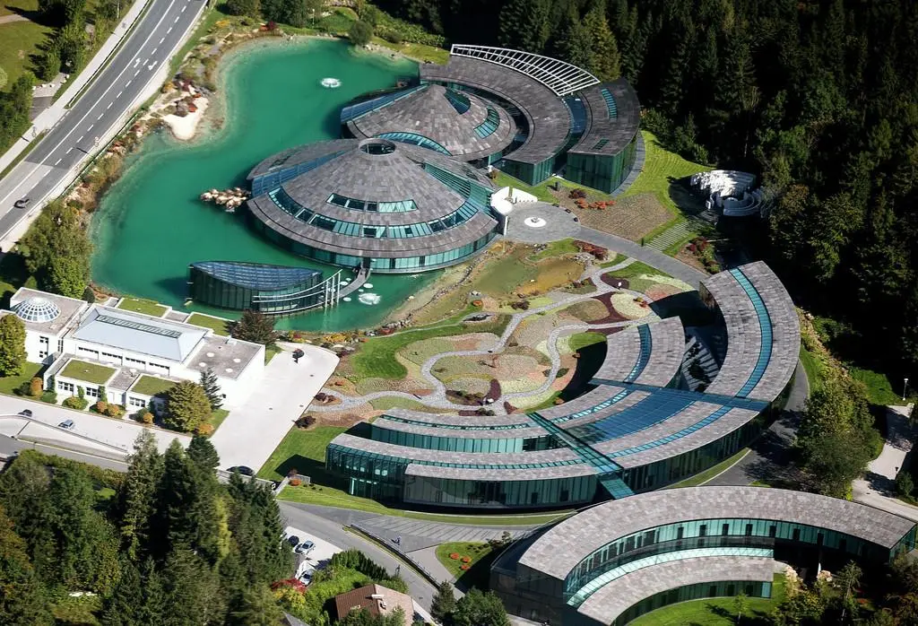 Zentrum des Firmenkomplexes sind dabei zwei innen offene Gebäude in Vulkanform – und eine 22,5 Meter lange, in Bronze gegossene Bullenherde. "Die Frage war, was passt zu Red Bull. Ein Vulkan ist das Energiegeladenste auf unserer Erde", sagte der Künstler, der bei der Umsetzung seiner Ideen freie Hand genoss. "Ich war beim Bau weder an Normen noch an finanzielle Einschränkungen gebunden. Das inspiriert den Künstler. Ein anderer Bauherr sagt: Was kostet das. Dietrich Mateschitz sagt: Mach es."