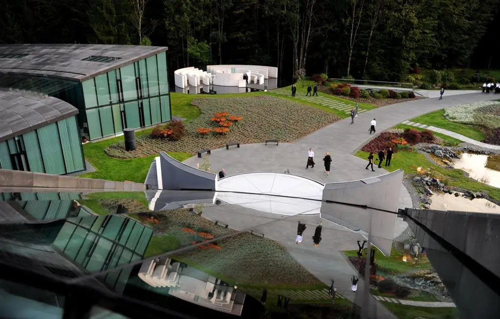 Die Gebäude für rund 700 Mitarbeiter (sie sind de facto schon seit Jahren in Betrieb) wurden fast ausschließlich aus Glas, Basalt, Granit und Metall errichtet – eine Referenz auf den vulkanischen Ursprung. "Aus Holz findet sich nicht einmal ein Zahnstocher", witzelte Pirker, der fachlich an diesem Abend einiges an Lob einheimste: "Für ihn ist Architektur keine Schablone. Er hält Grenzen für behindernd und unnötig, jeder muss selbst gestalten können", sagte der deutsche Architekt Wolfram Putz und sprach von der "seltenen günstigen Fügung zwischen Künstler und Kunstfreund"