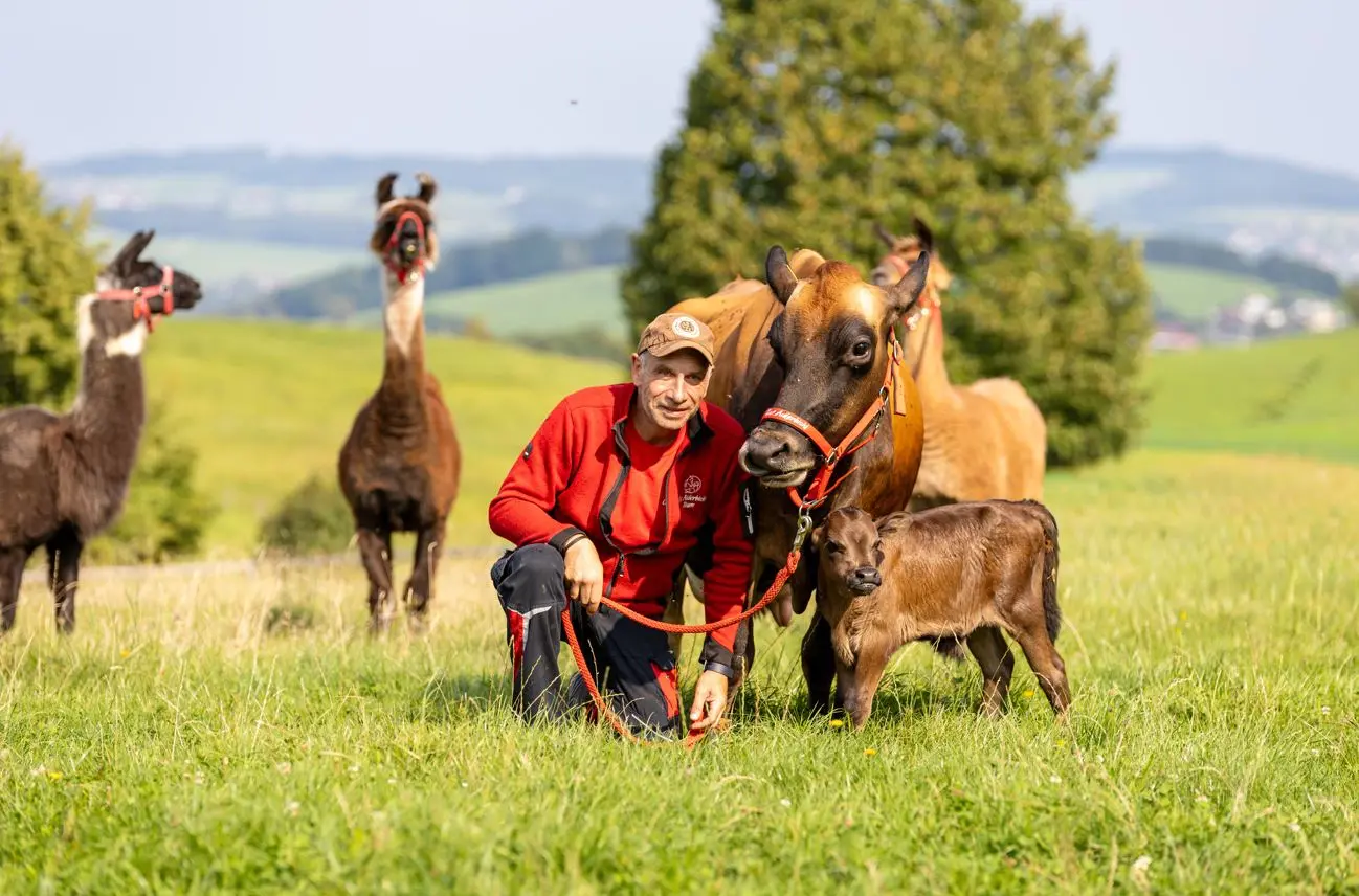 Martins Geschichte ist besonders rührend: Seine Mutter Alma, eine Jersey-Kuh, wurde von einem Bio-Bauern vor der Schlachtung gerettet und zunächst als Ammenkuh eingesetzt. Ihre dauerhafte Haltung dort stellte sich aber als rechtliche Herausforderung dar – ehe sie ihr erstes Kalbs Emil auf die Welt brachte, berichtet Gut Aiderbichl in einer Aussendung.