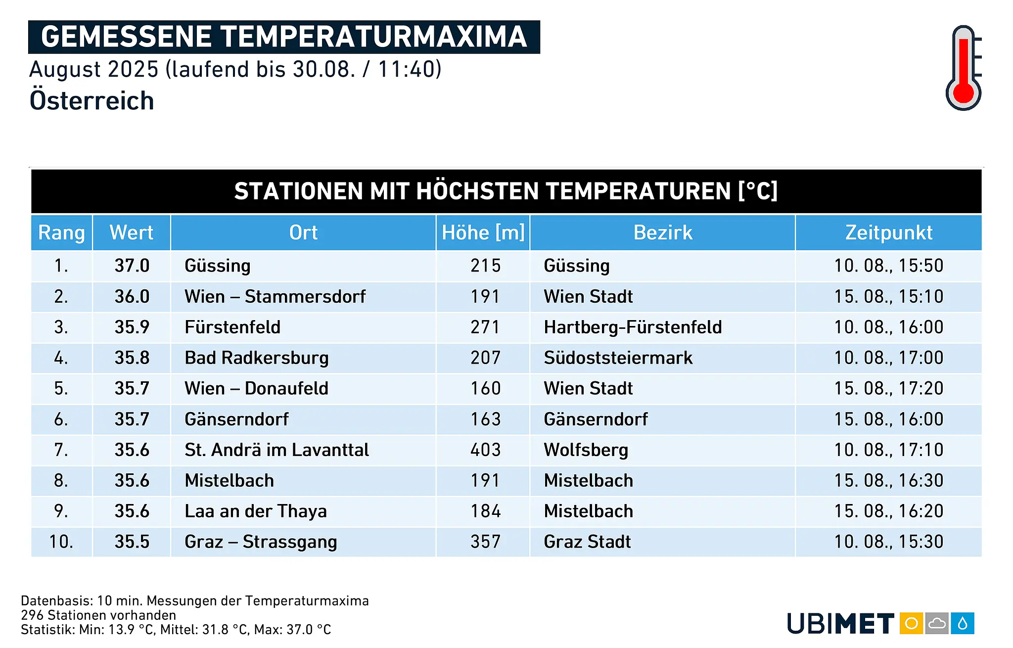 - 35,9 Grad Fürstenfeld (ST, 10.)