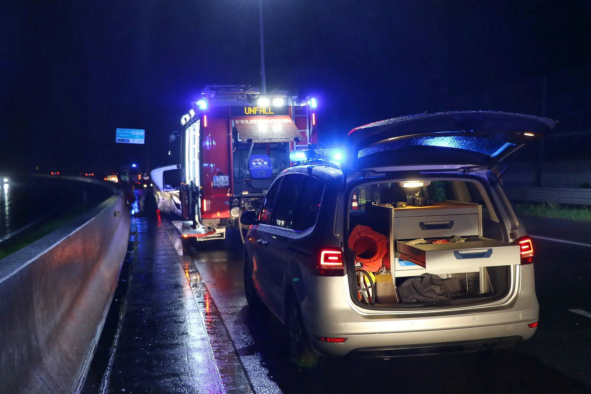 Der 26-jährige Lenker aus Polen fuhr mit drei weiteren Insassen gegen 23.30 Uhr auf der A1 in Richtung Salzburg. Im Gemeindegebiet von Hallwang geriet er bei einem Überholvorgang aufgrund von Aquaplaning ins Schleudern. Er kollidierte dabei mit der rechten Leitschiene, schleuderte auf die Fahrbahn zurück und krachte dann mit der linken Seite gegen die Betonmittelleitschiene.