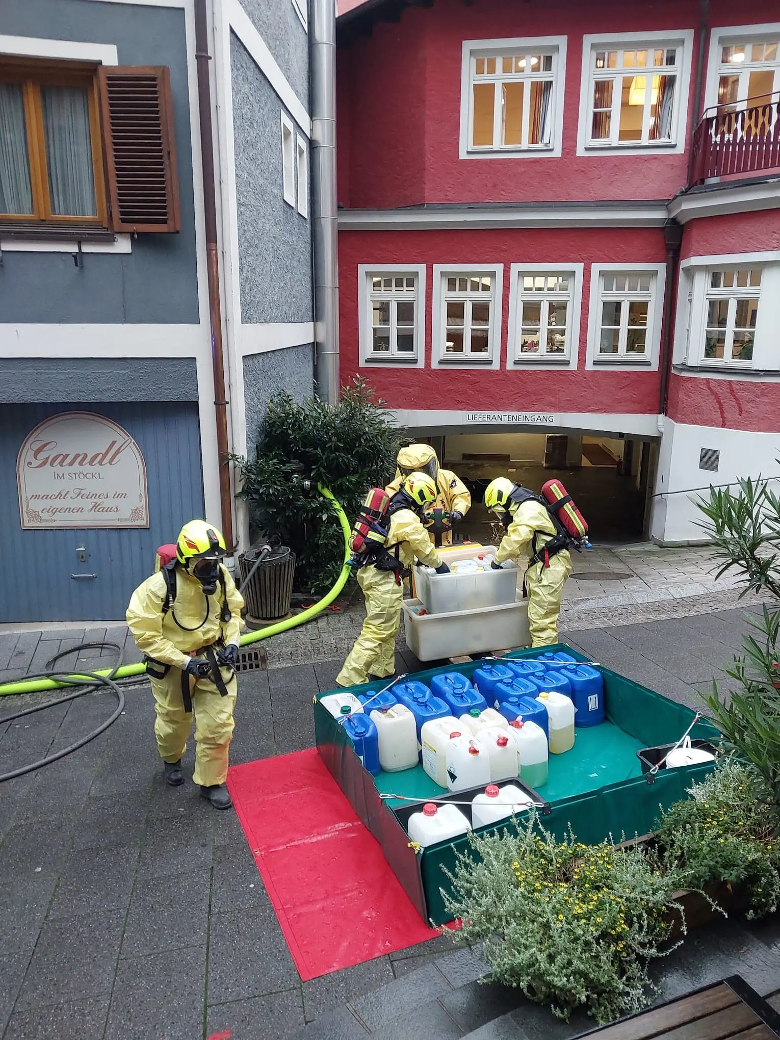 Einsatzkräfte mit Atemschutz und gasdichten Anzügen brachten die Gebinde ins Freie, wo sie von einer Spezialfirma entsorgt wurden. Gegen Mittag war der Einsatz beendet und das Hotel wurde wieder freigegeben. Gäste waren nicht in Gefahr, da sich in dem Gebäudetrakt nur Mitarbeiter:innen befunden hätten, so der Bezirksfeuerwehrkommandant.