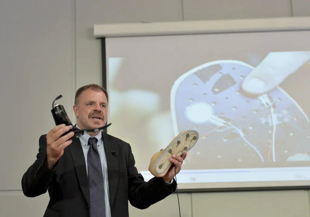 Möglich wird das durch Druckpunkte auf der künstlichen Fußsohle, deren Informationen bis zum Stumpf des amputierten Beines übertragen werden. Der künstliche Fuß ist einem natürlichen nachempfunden - mit entsprechender Druckverteilung vom vorderen Teil bis zur Ferse. Was diese Infos bedeuten, hat Prothesenpatient Wolfgang Rangger nach eigenen Angaben lernen müssen. Das Erkennen des Untergrunds wird durch die Reaktivierung von Nervenenden als Überträger von Informationen von Sensoren aus der Prothese möglich.