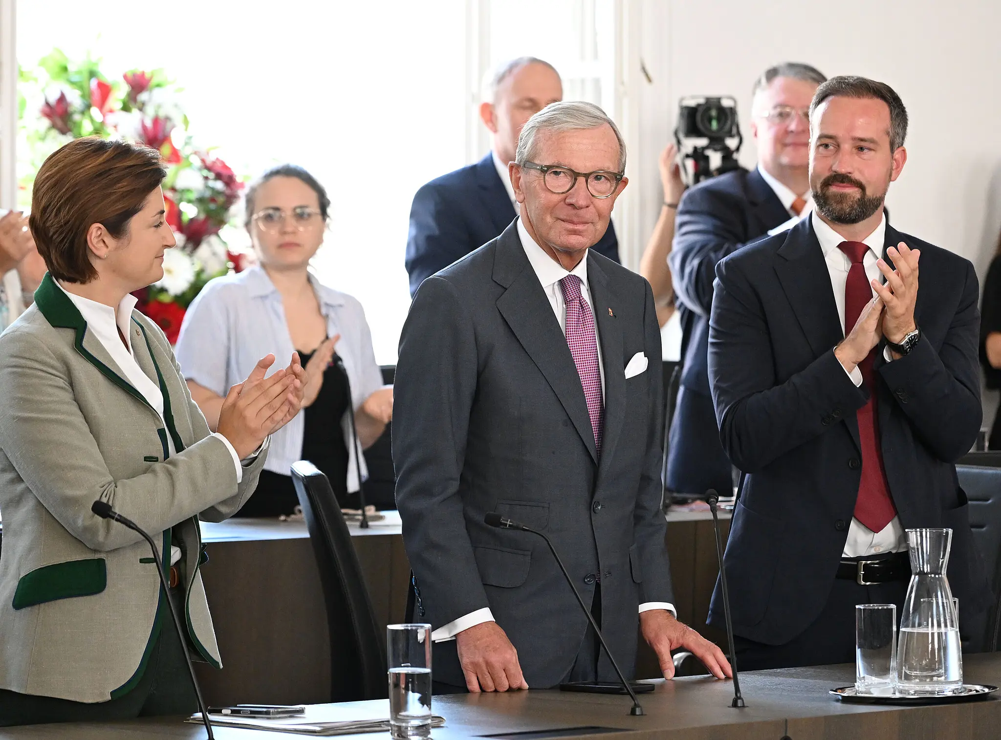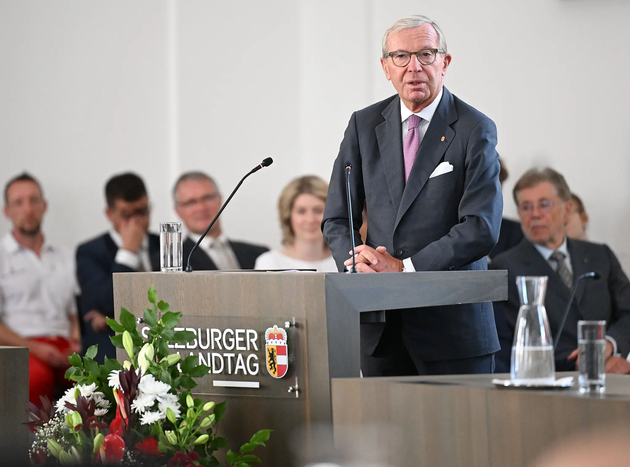 Zuvor war der scheidende Landeshauptmann Wilfried Haslauer (ÖVP) ein letztes Mal an das Rednerpult im Landtag geschritten, um "nach 21 Jahren hiermit die Zurücklegung meiner Funktion als Landeshauptmann und Mitglied der Landesregierung" bekannt zu geben. Er hob noch einmal hervor, wie sich die Welt in den vergangenen 21 Jahren verändert hat, "und mittendrin steht unser schönes kleines Land Salzburg, das in den 21 Jahren wohlhabender geworden ist, sicherer, und viele Menschen haben eine neue Heimat gefunden, auch wenn sie nicht immer nur willkommen waren". Haslauer kam 2004 in die Politik und war unter Burgstaller zunächst neun Jahre lang Landeshauptmannstellvertreter.