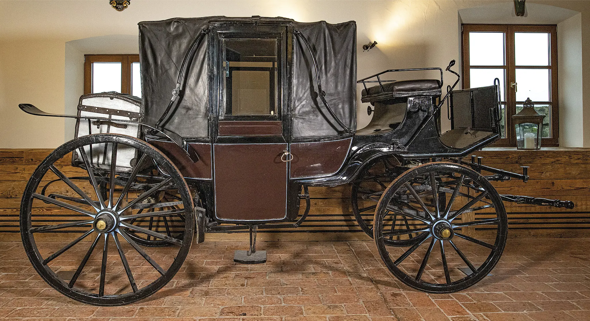 Bei der um 1900 gebauten Karosse aus der Privatsammlung Schloss Fuschl handelt es sich um einen sogenannten Landauer aus wahrscheinlich belgischer Produktion - einen herrschaftlichen Reisewagen mit für damalige Verhältnisse komfortabler Ausstattung. Der Regisseur der drei 1955, 1956 und 1957 erschienenen Sissi-Filme, Ernst Marischka, hatte als Drehort für seine Filme unter anderem das Schloss Fuschl gewählt. Es sollte die tatsächliche Heimat - Schloss Possenhofen am Starnberger See - der späteren österreichischen Kaiserin, der geborenen Herzogin Elisabeth von Bayern, darstellen.