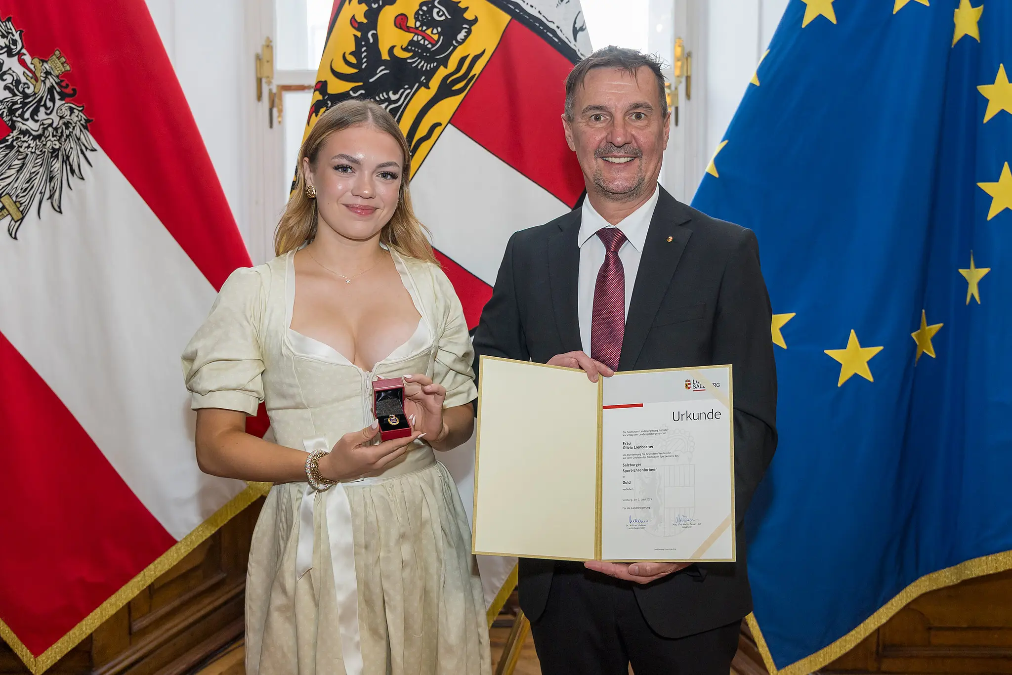Unter den Geehrten waren unter anderem Tänzerinnen Olivia Lienbacher aus Bürmoos (Flachgau) und Katharina Bacher aus Innsbruck, die für ihre Weltmeistertitel geehrt wurden.