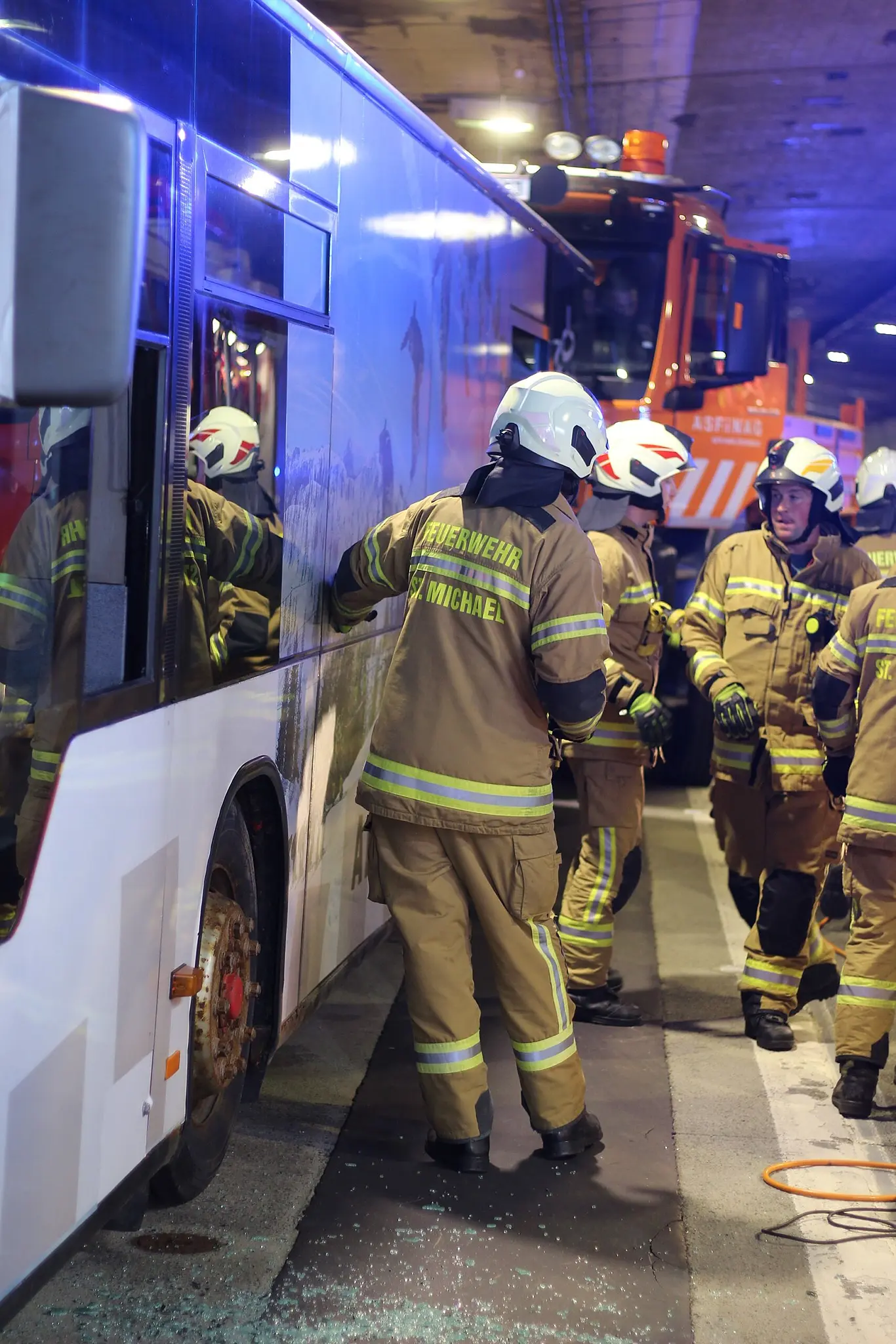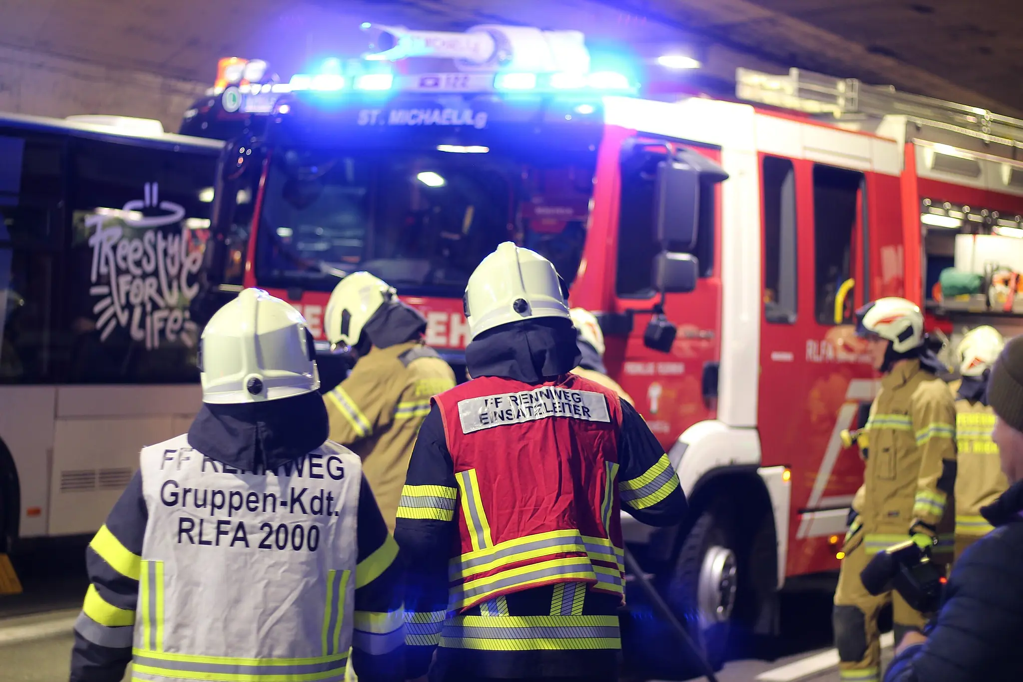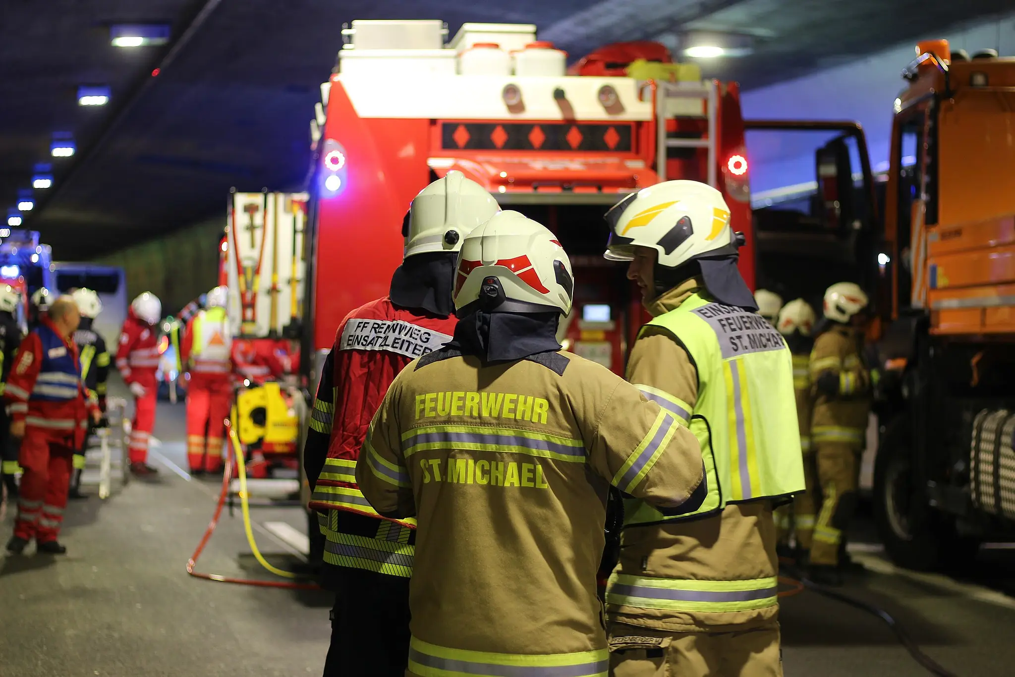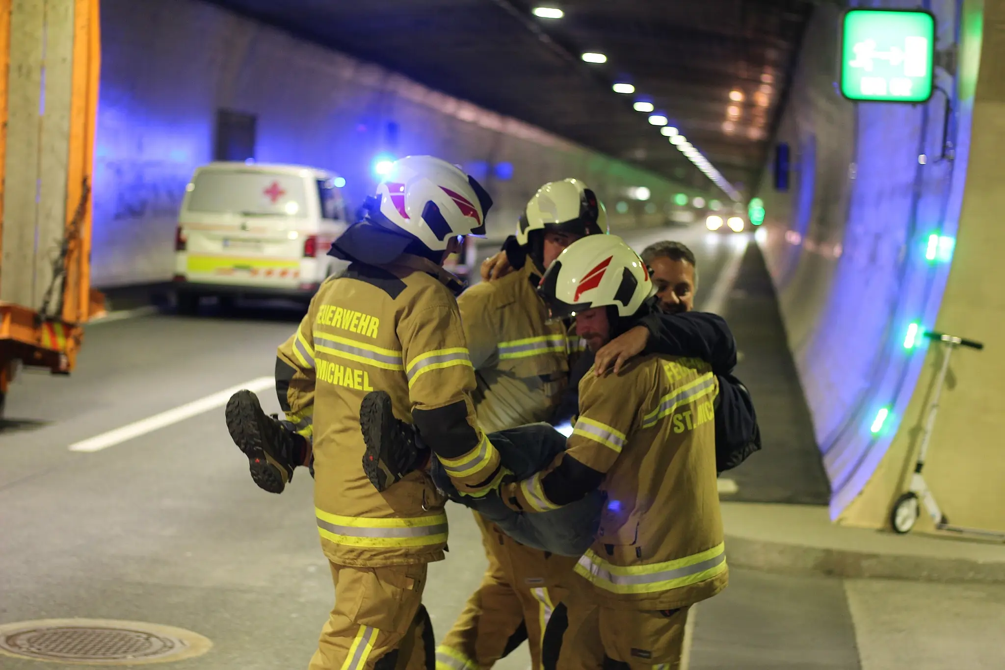 Reisebus-Unfall mit verletzten Personen und weiteren Auffahrunfällen: So lautete das Szenario einer großen Übung, die Samstagabend auf der Tauernautobahn (A10) im Katschbergtunnel zwischen dem Salzburger Lungau und Kärnten stattfand. Die Übung war gesetzlich vorgeschrieben, daran beteiligt waren insgesamt rund 300 Kräfte von Feuerwehr, Rettung, Polizei, Asfinag und Behörden.