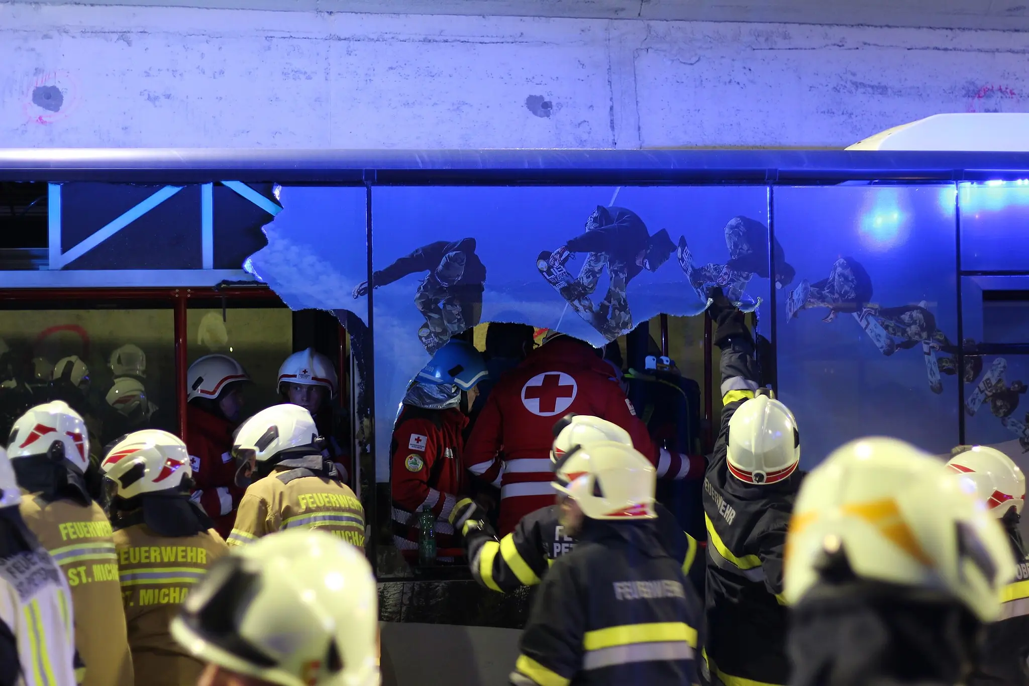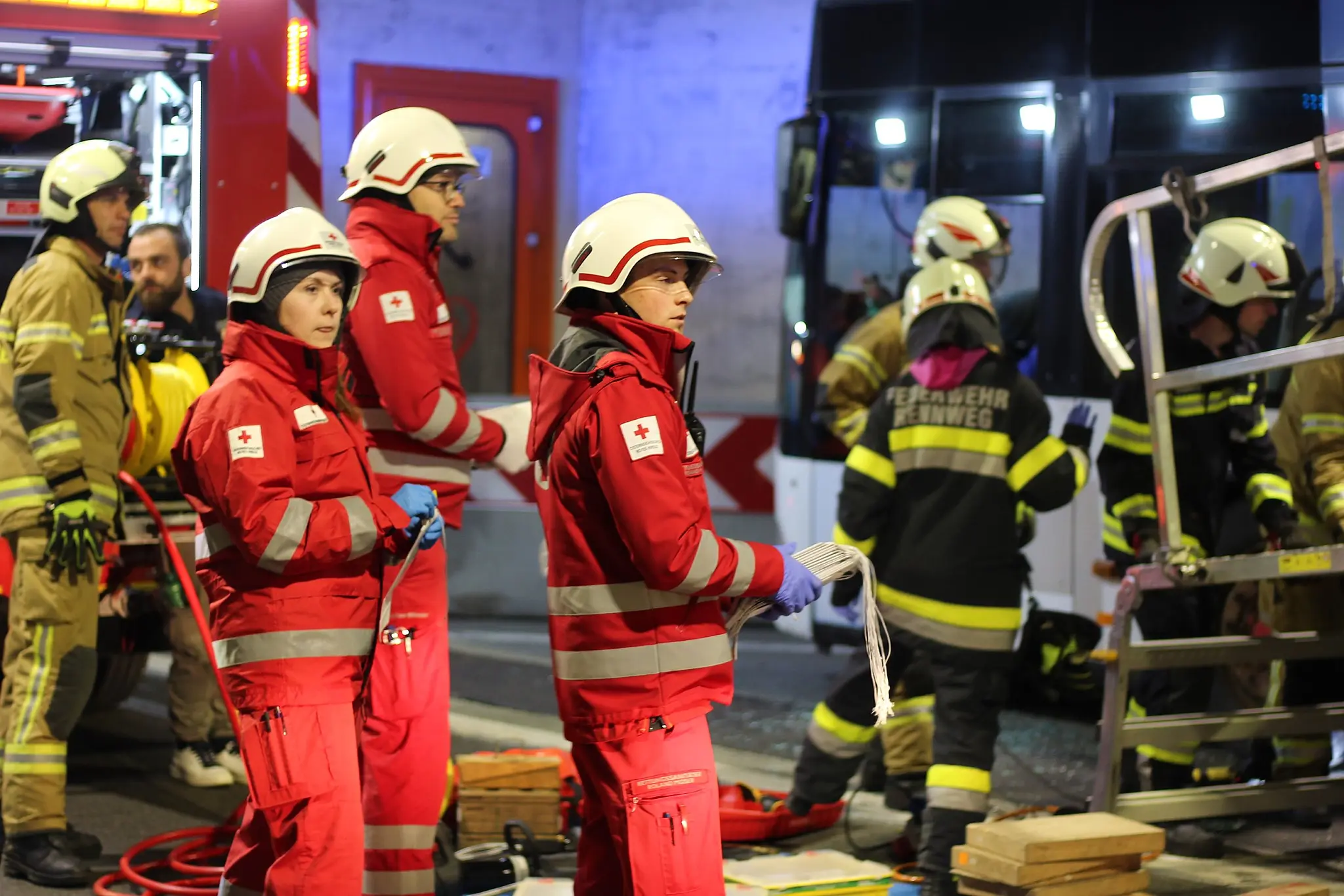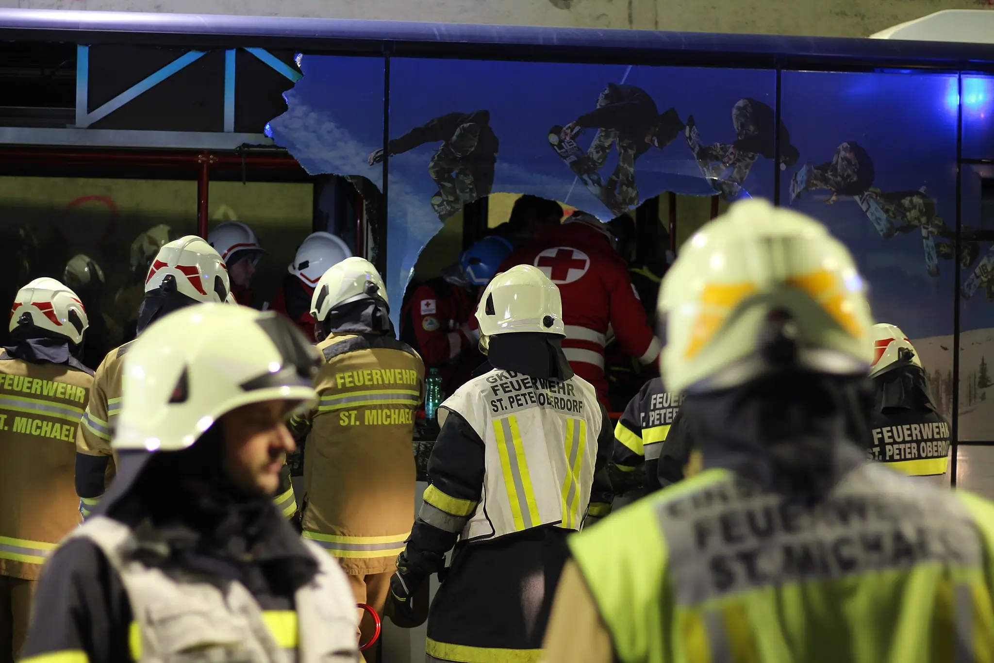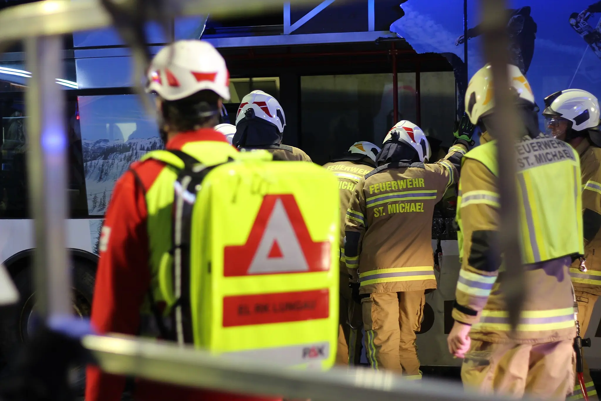 Reisebus-Unfall mit verletzten Personen und weiteren Auffahrunfällen: So lautete das Szenario einer großen Übung, die Samstagabend auf der Tauernautobahn (A10) im Katschbergtunnel zwischen dem Salzburger Lungau und Kärnten stattfand. Die Übung war gesetzlich vorgeschrieben, daran beteiligt waren insgesamt rund 300 Kräfte von Feuerwehr, Rettung, Polizei, Asfinag und Behörden.