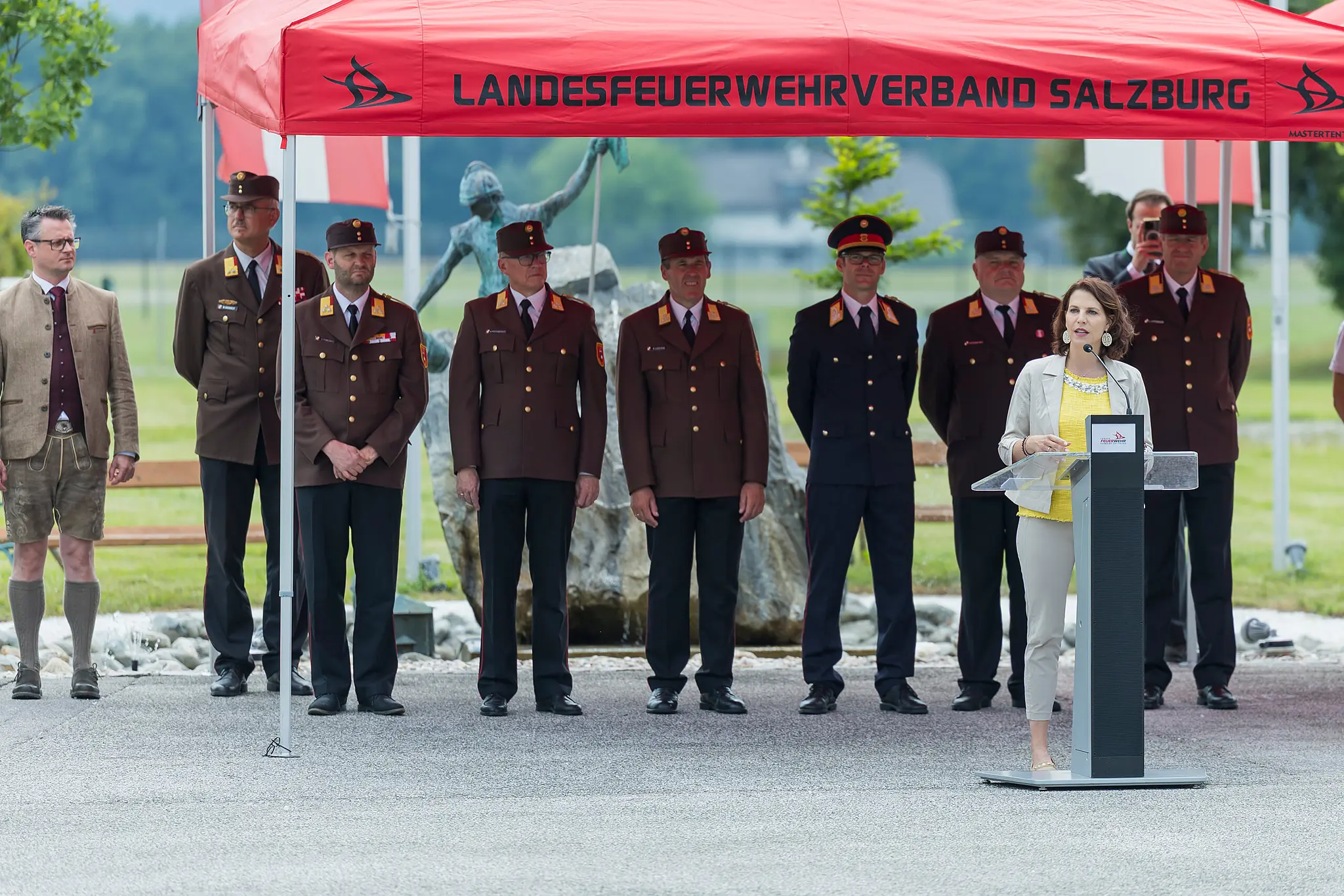 Rund 580 Einsatzkräfte kamen zur feierlichen Ehrung in die Landesfeuerwehrschule Salzburg. Die frisch gewählte neue Landeshauptfrau Karoline Edtstadler (ÖVP) sprach den Helfer:innen ihren großen Dank aus: „Es ist beeindruckend, wie selbstverständlich Salzburger Feuerwehrleute über Bundesländergrenzen hinweg helfen. Das ist gelebte Solidarität.“ Auch Landeshauptfrau-Stellvertreterin Marlene Svazek (FPÖ) hob die Auszeichnung als "Zeichen des Miteinanders“ hervor.