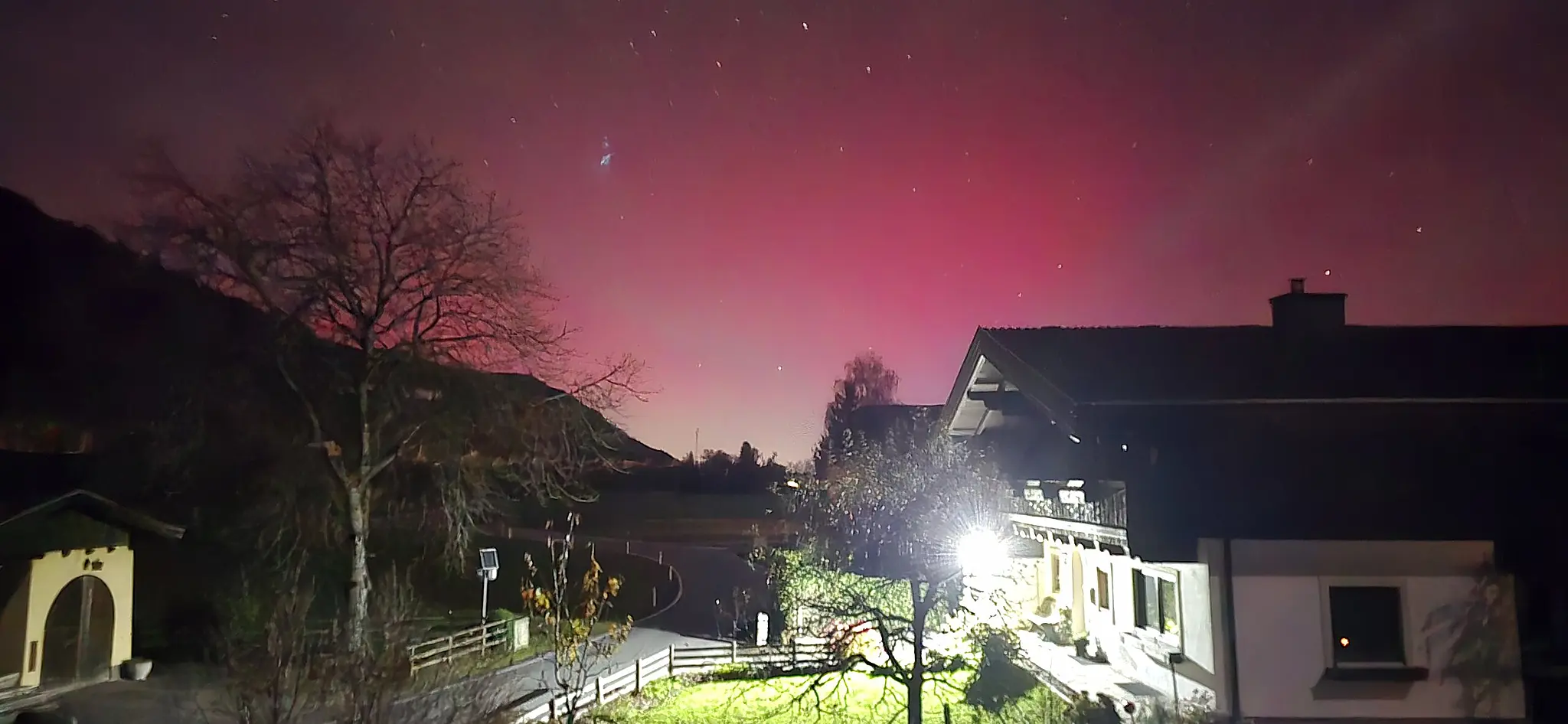 Vom Sonnblick Observatorium in Rauris (Pinzgau) aus war das Naturschauspiel etwa bestens sichtbar: Dort zeigten sich die Polarlichter in knalligem Pink und satten Magenta-Tönen, wie ein Bild von Observatoriumstechniker Hermann Scheer zeigt.