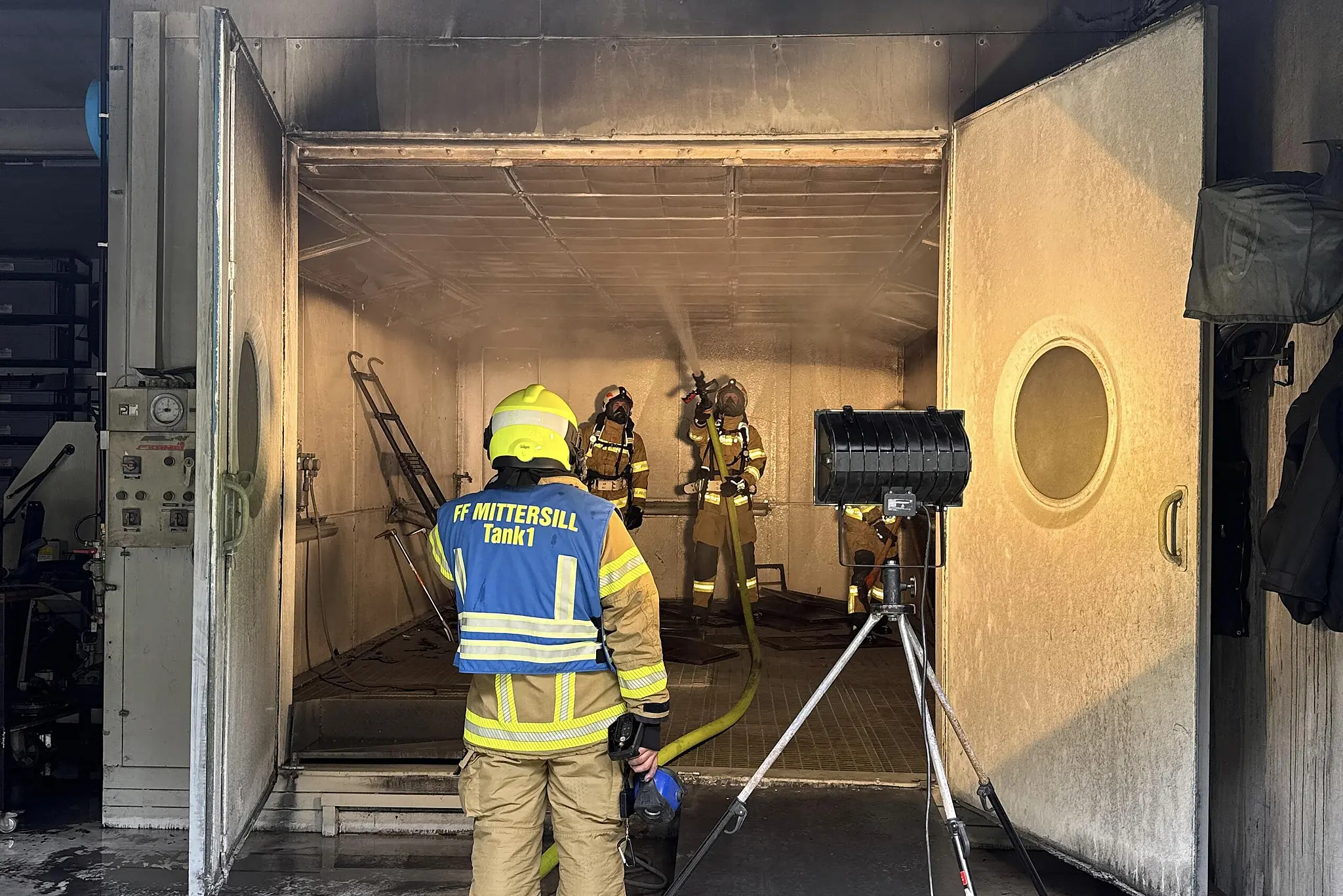 Eine Person hatte bereits versucht, den Brand mittels Feuerlöscher zu löschen. Der Einsatzleiter der Feuerwehr Mittersill schickte zwei Atemschutztrupps in die Werkstatt, um den Brand zu bekämpfen und ein Übergreifen der Flammen auf das Gebäude zu verhindern. Außerdem wurde Alarmstufe 2 ausgelöst und damit die Floriani aus Hollersbach und Stuhlfelden alarmiert.