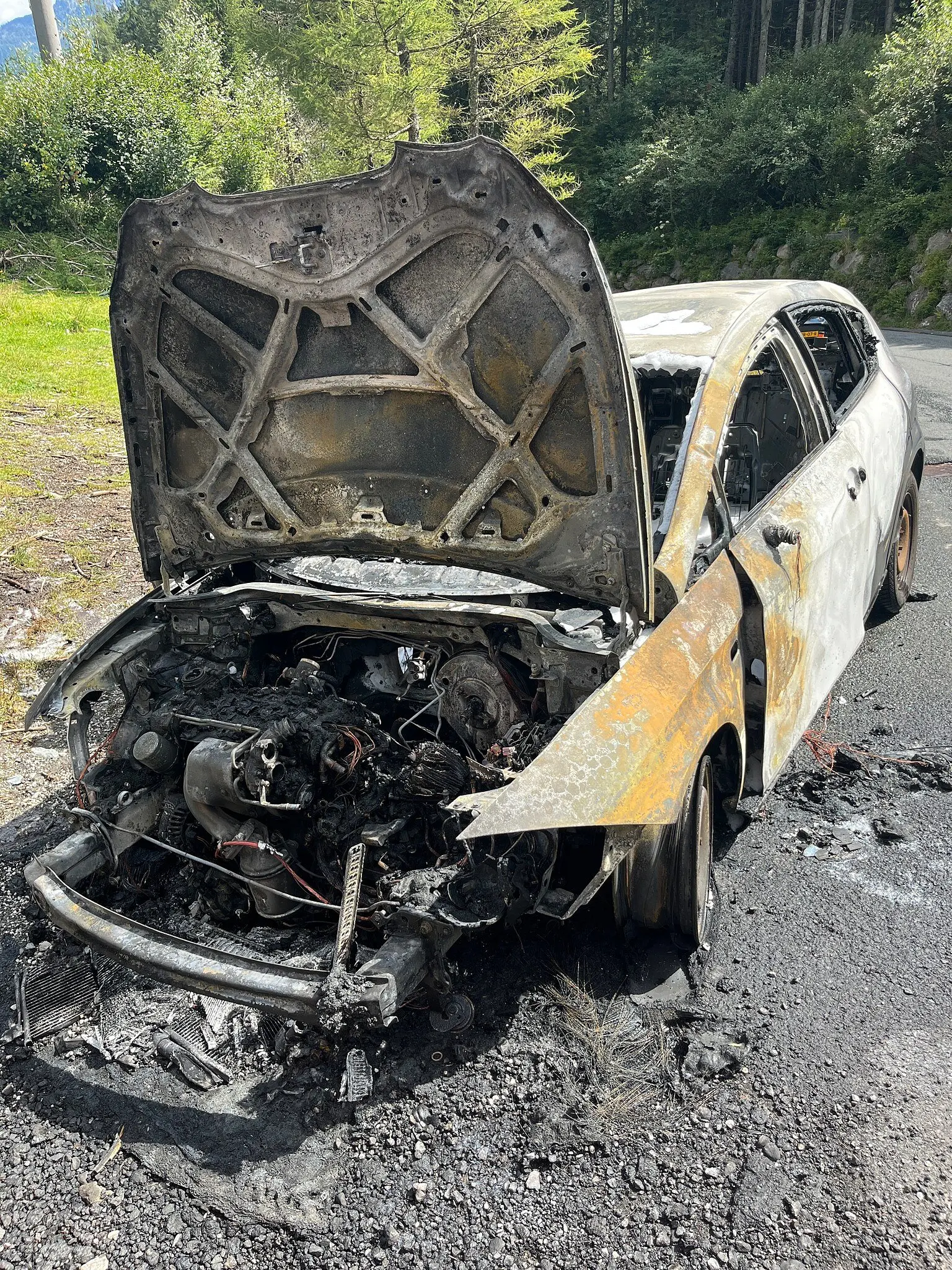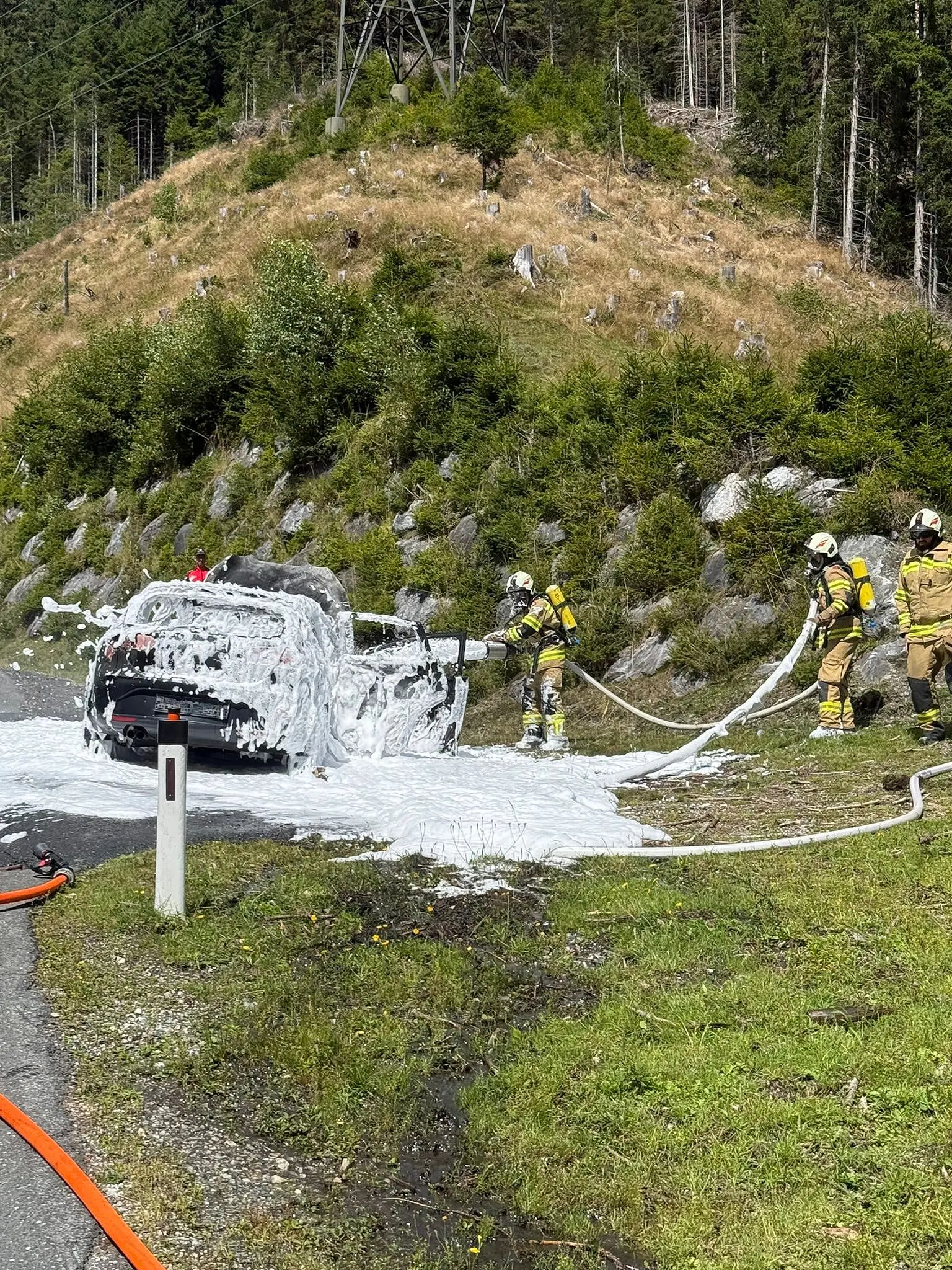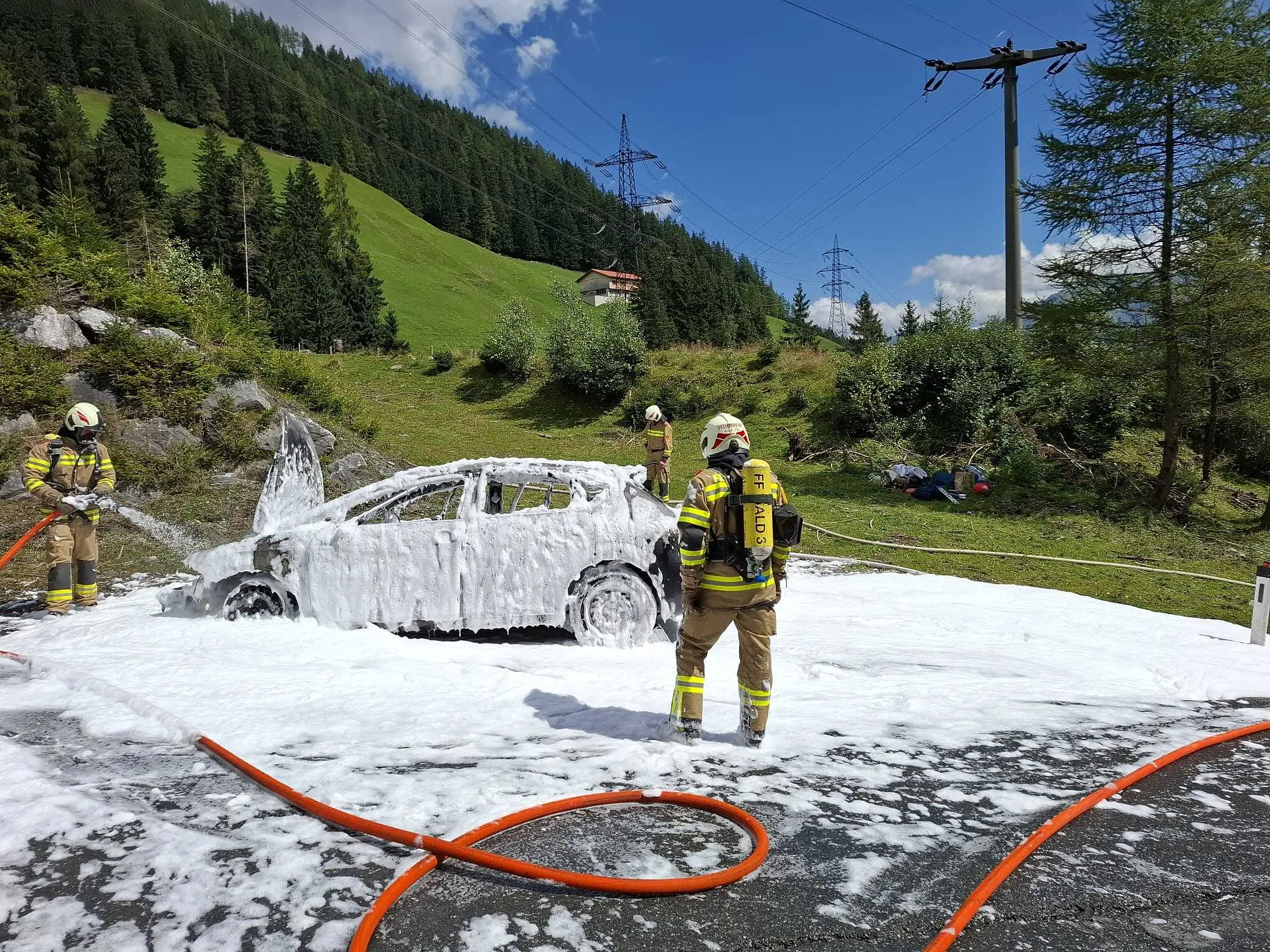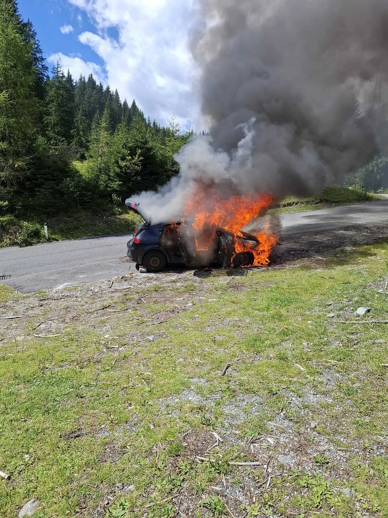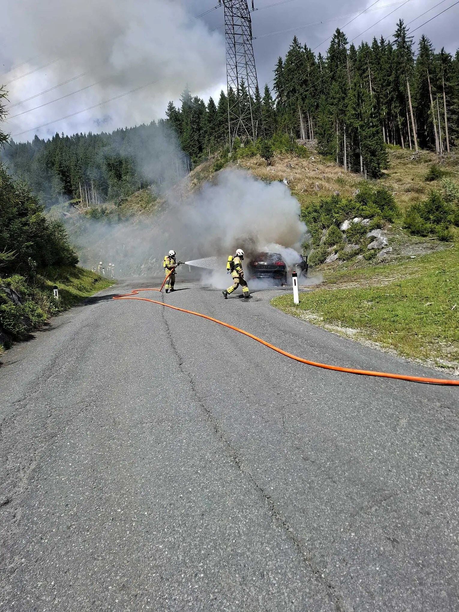 In Flammen stand am Sonntag ein Auto auf der Alten Gerlosstraße (B165) in Wald im Pinzgau. Weil zeitgleich die Bergmesse Markkirchl im Salzachtal stattfand, waren einige Feuerwehrleute aus Wald im Pinzgau in der Nähe des Einsatzortes. Die ersten Einsatzkräfte versuchten den Brand mit einem Handfeuerlöscher einzudämmen.