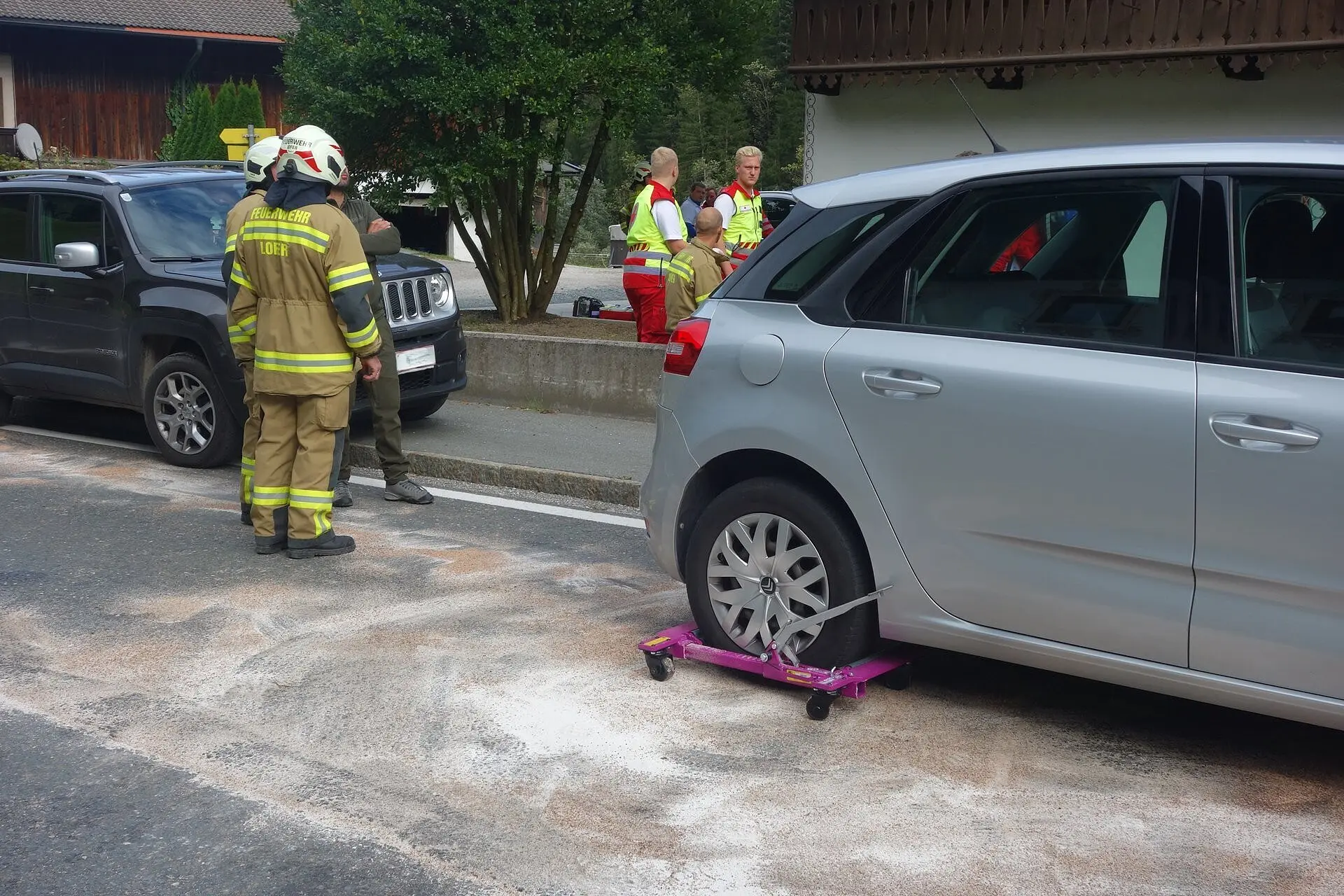 Die Feuerwehr Lofer unterstützte das Rote Kreuz, sicherte die Unfallstelle ab, regelte den Verkehr, band auslaufende Betriebsmittel und half den Abschleppunternehmen beim Verladen der Fahrzeuge.