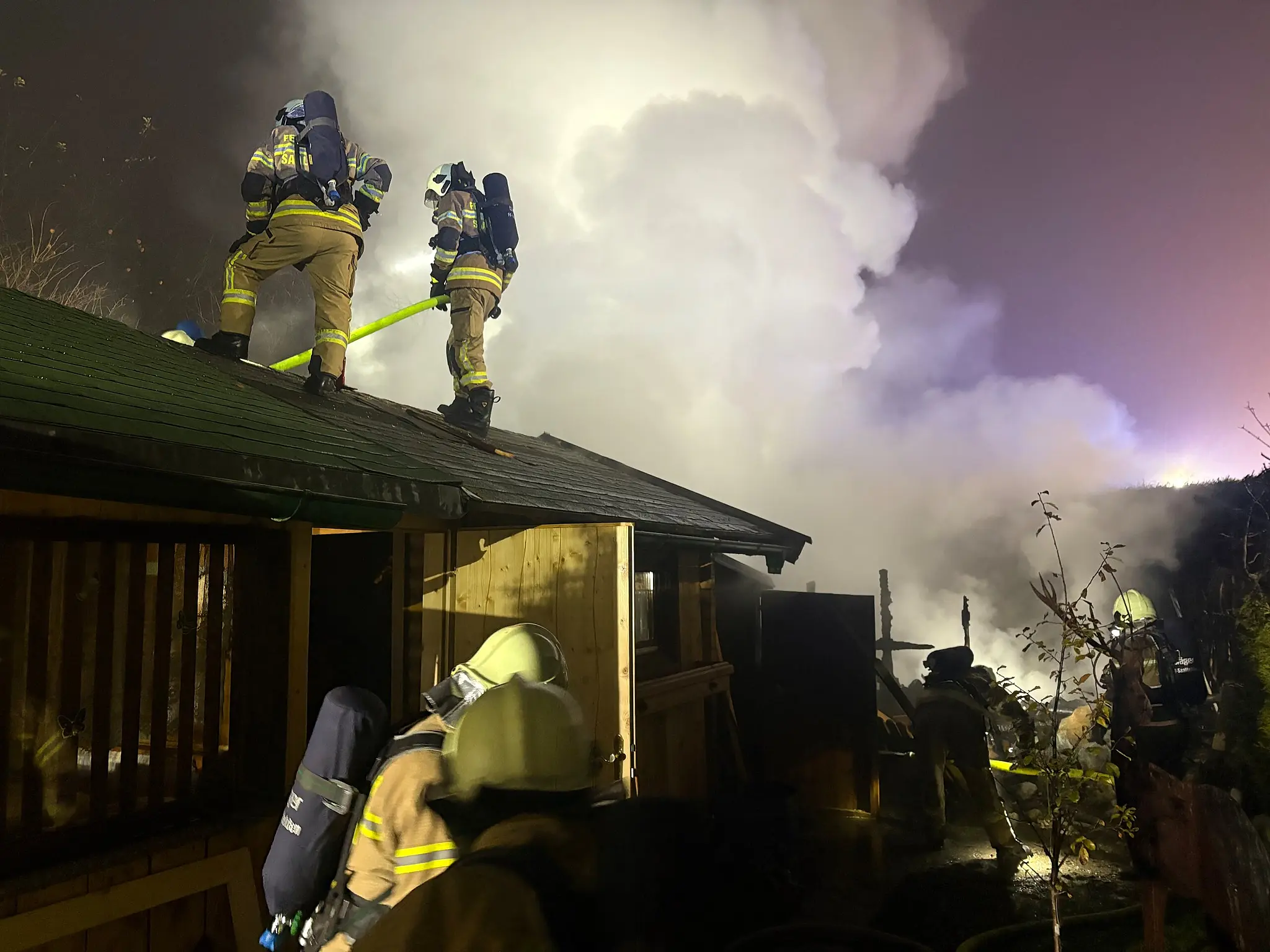 Zwei Gartenhütten sind in Saalfelden am Samstag in Vollbrand gestanden. Die Feuerwehr war mehrere Stunden lang im Einsatz. Gefährlich gestaltete sich die Lage aufgrund mehrerer Gasflaschen, die in den Hütten gefunden wurden.