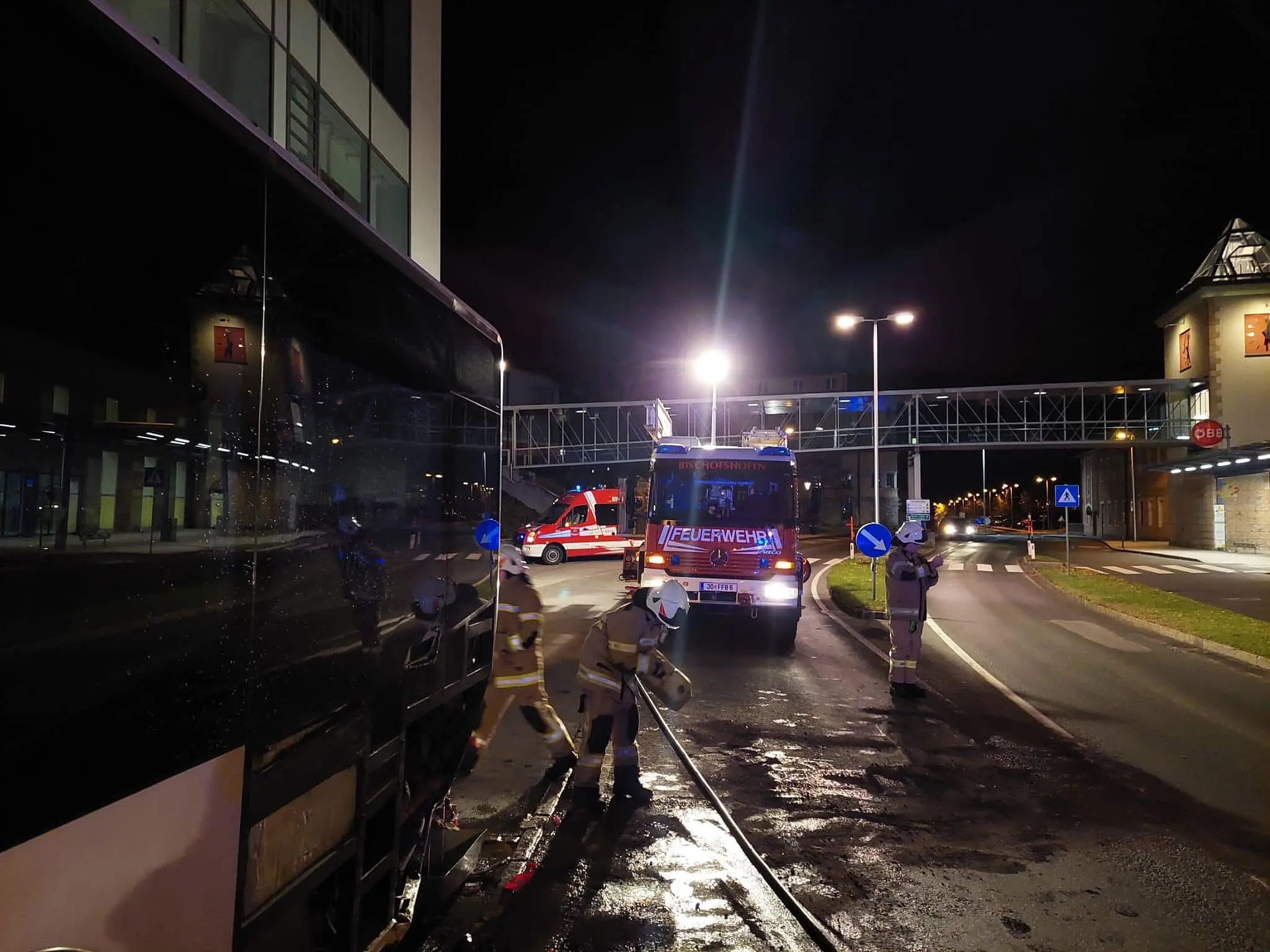 Die Freiwillige Feuerwehr Bischofshofen führte die Aufräumarbeiten durch und band die ausgetretenen Betriebsstoffe. Da es sich um einen Bus mit Erdgas-Antrieb (CNG) handelte und durch den Unfall eine nicht unerhebliche Beschädigung am Motor verursacht wurde, blieb ein Teil der Feuerwehrmannschaft bei der Bergung des Fahrzeuges durch ein Spezialunternehmen vor Ort. Um 7 Uhr konnte der Einsatz für die Feuerwehr, die mit 18 Kräften vor Ort war, beendet werden, heißt es auf der FF-Homepage.