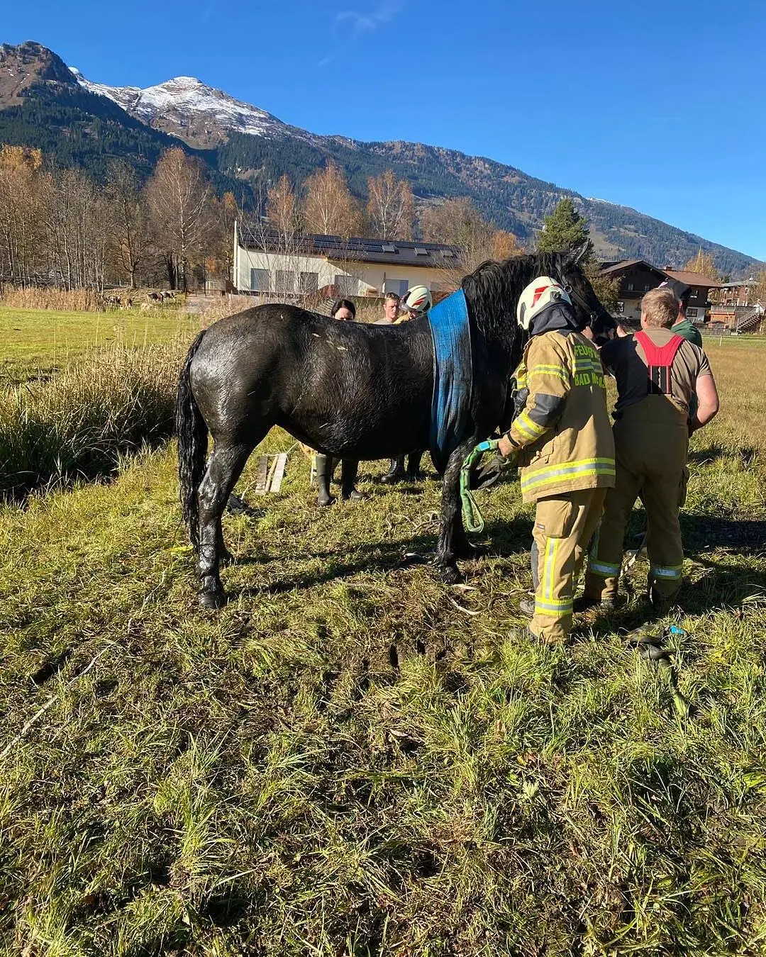 Eine junge Noriker-Stute war am Mittwoch in Bad Hofgastein (Pongau) in einem sumpfigen Wiesengraben geraten. Das Tier drohte in dem Morast zu versinken. Es konnte sich aus eigener Kraft nicht mehr befreien.