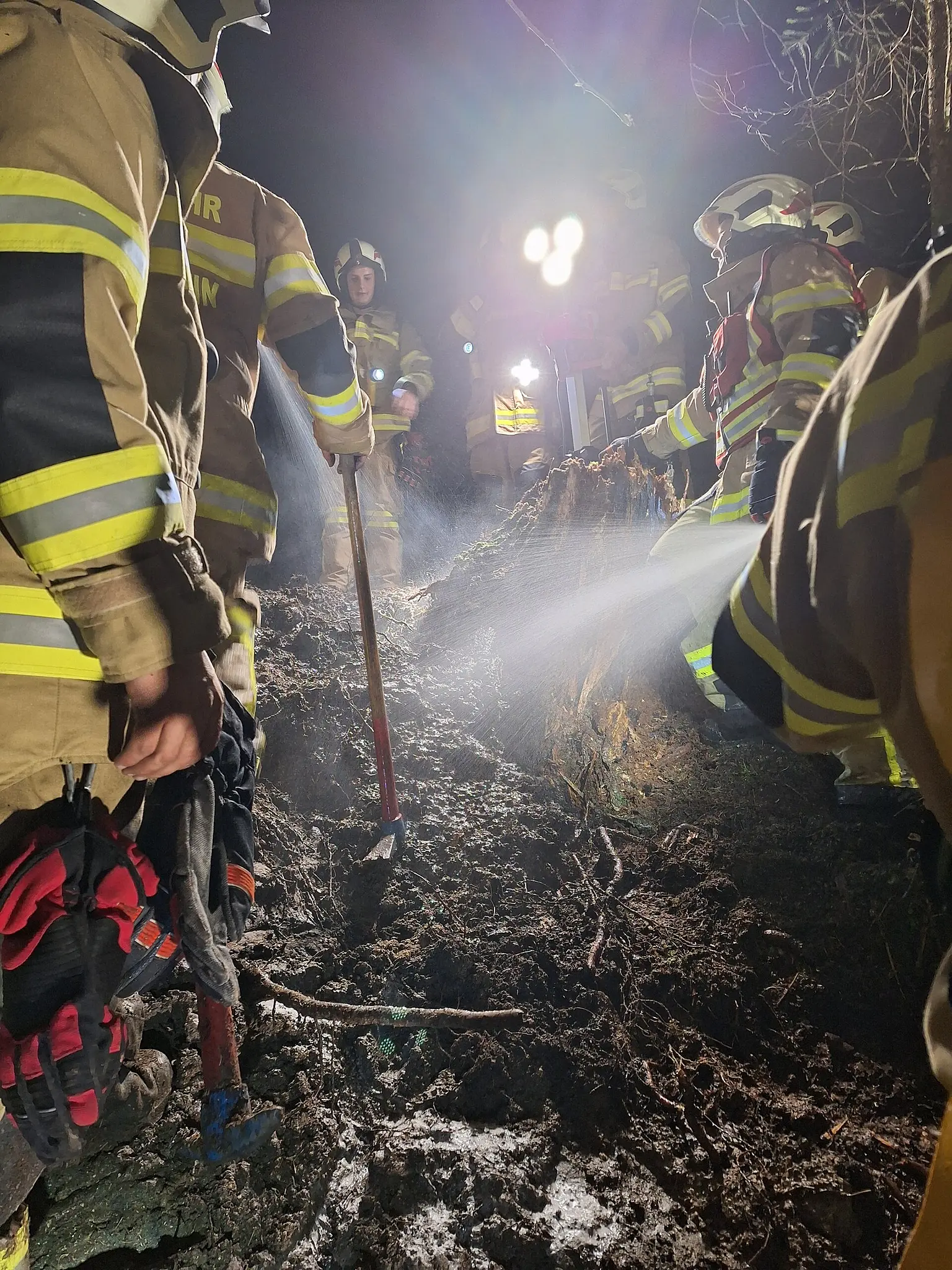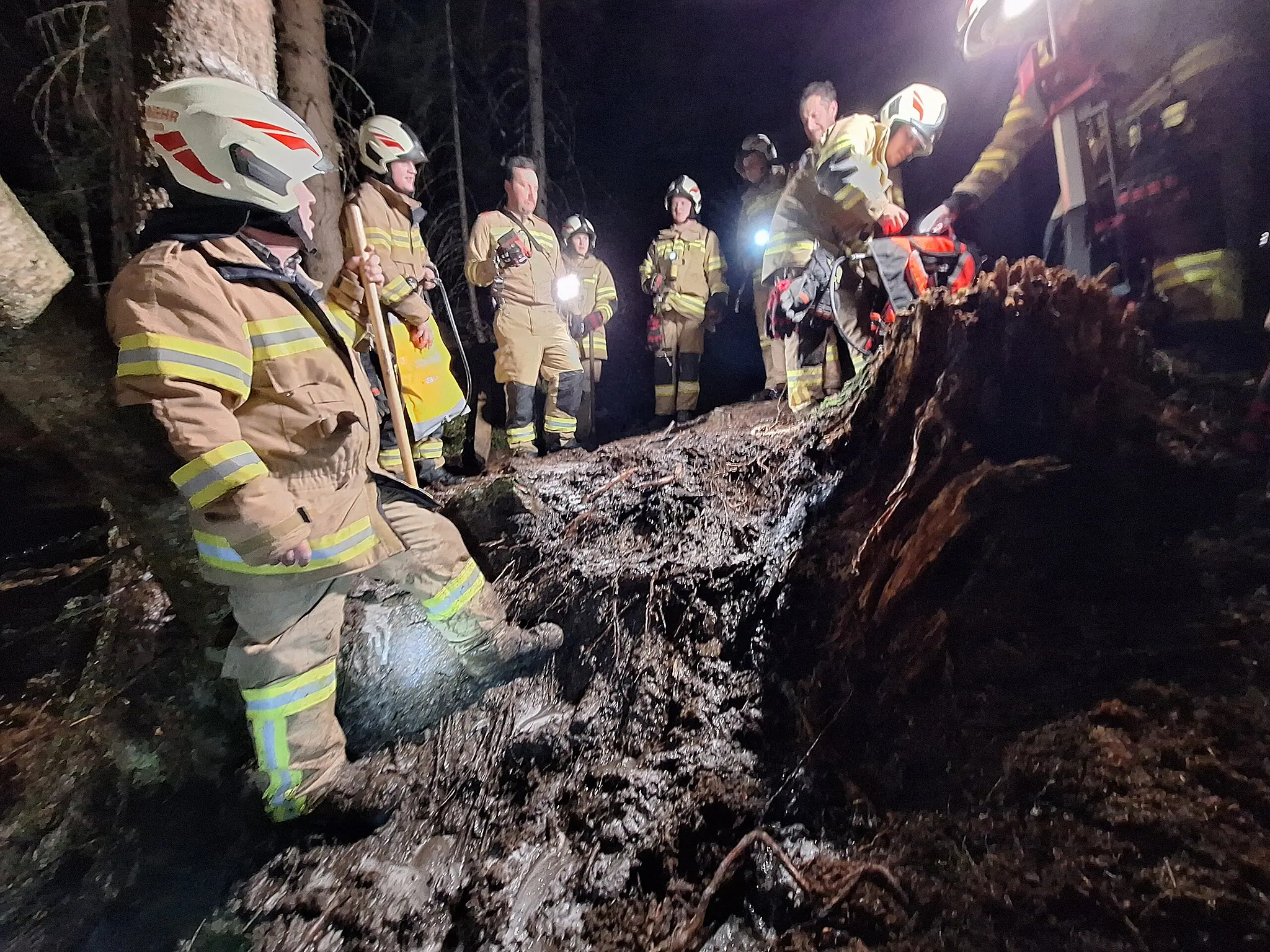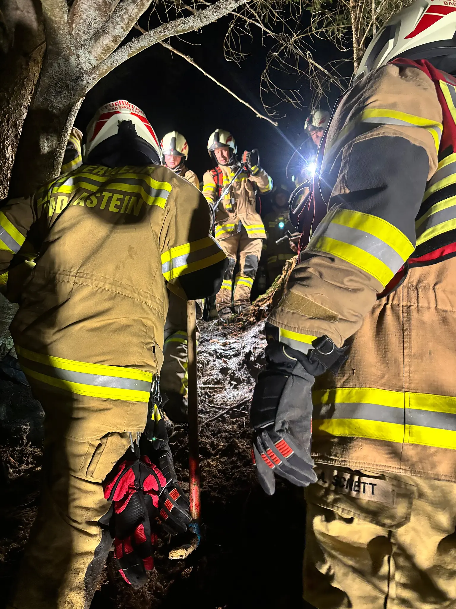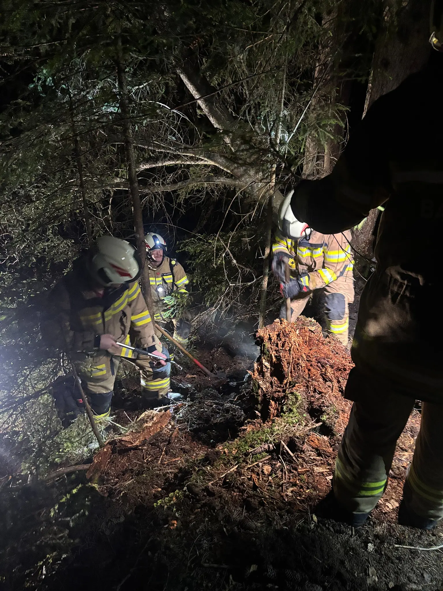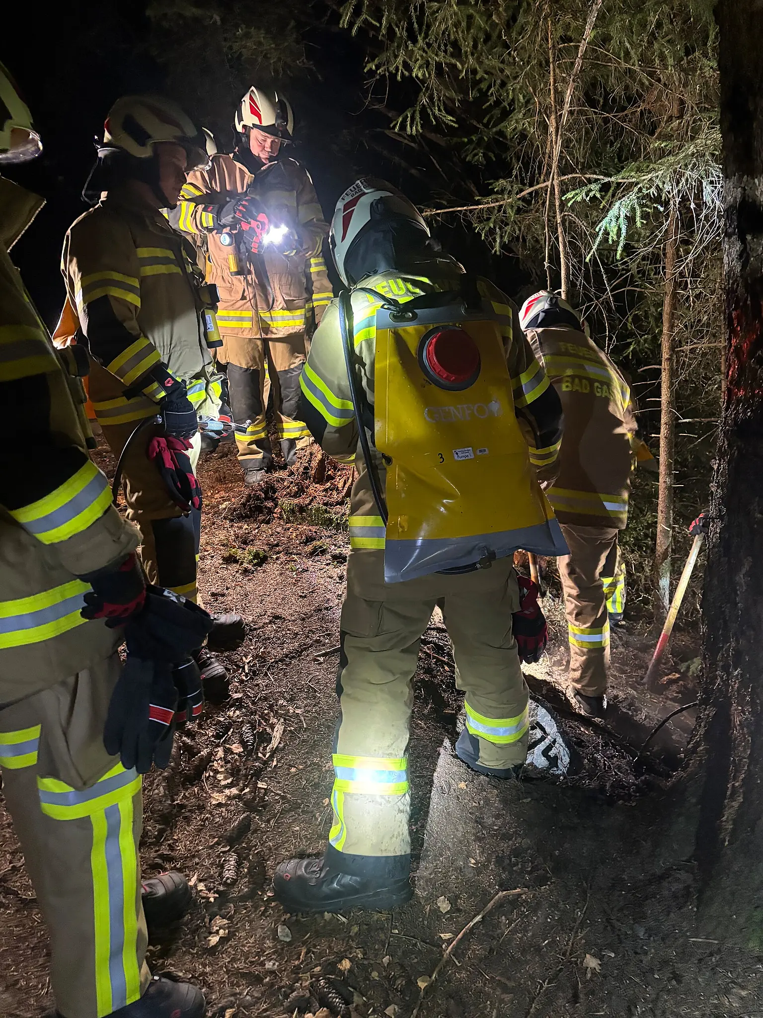 Für eine erste Schwierigkeit sorgte das unwegsame Gelände rund um die Brandstelle: Diese war mit den Feuerwehrfahrzeugen nicht direkt erreichbar. Die Mannschaft musste daher rund 400 Meter zu Fuß zurücklegen – ausgestattet mit Löschrucksäcken und Werkzeug.