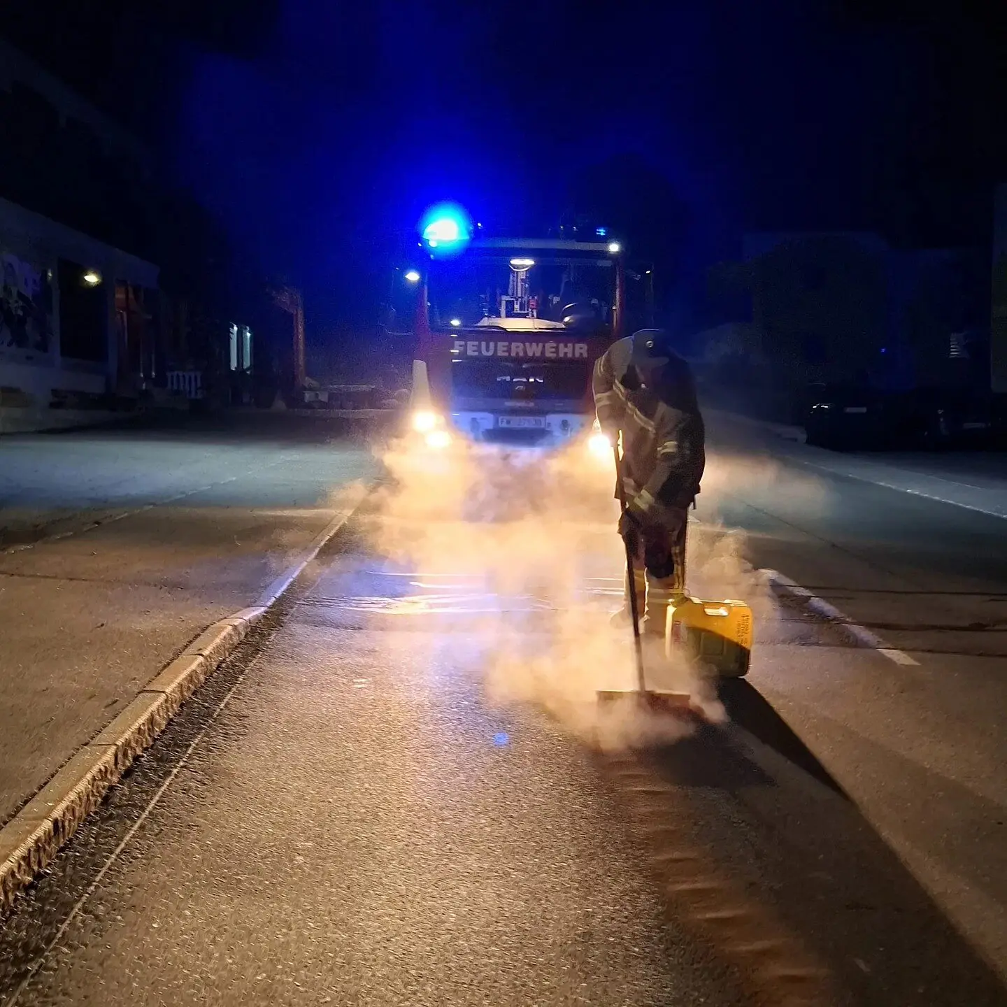 Da das verursachende Fahrzeug die Strecke auch wieder retour fuhr, war die Fahrbahn in beiden Richtungen verunreinigt. Die Floriani streuten den ausgelaufenen Kraftstoff mit Bindemitteln ab und reinigten die Fahrbahn gründlich. Nach rund zwei Stunden konnte der Einsatz beendet werden.