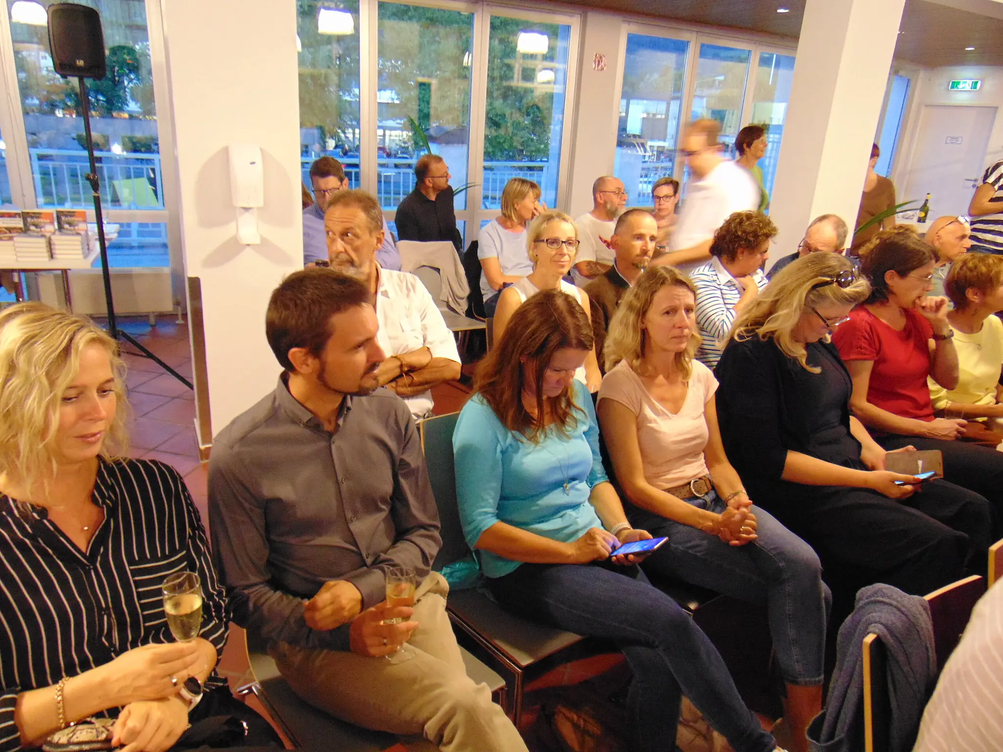 150 Menschen im Publikum warteten auf Claudia Rossbacher, Ernst Kaufmann, Roman Klementovic, Klaus Ranzenberger, Katharina Eigner und das Salzburger Krimi-Urgestein Manfred Baumann.