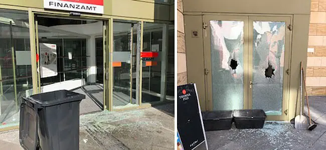 "Momentan wissen wir nur, dass es hier eine Sachbeschädigung gab. Was hier genau passiert ist und wie die Hintergründe sind, ist noch unklar", so Polizei-Pressesprecher Hans Wolfgruber im Gespräch mit SALZBURG24. Beim Finanzamt wurden Glastüren und Fenster eingeschlagen. Teile der Fassade und der Böden, im Außen- und Innenbereich, wurden mittels Farben verunreinigt, heißt es. Die Täter entkamen unerkannt. Wie ein User gegenüber SALZBURG24 mitteilte, soll der Wachdienst gegen 2 Uhr Früh die Beschädigungen bemerkt haben.