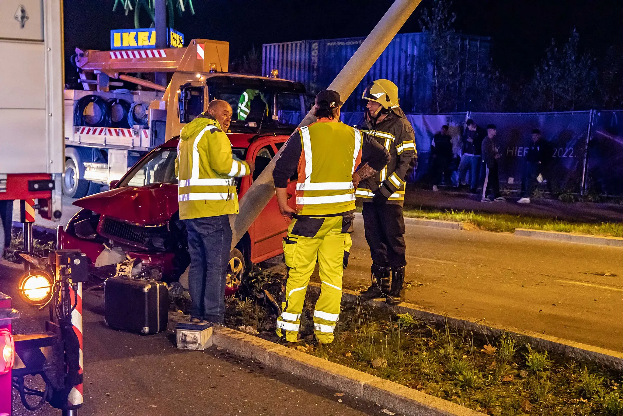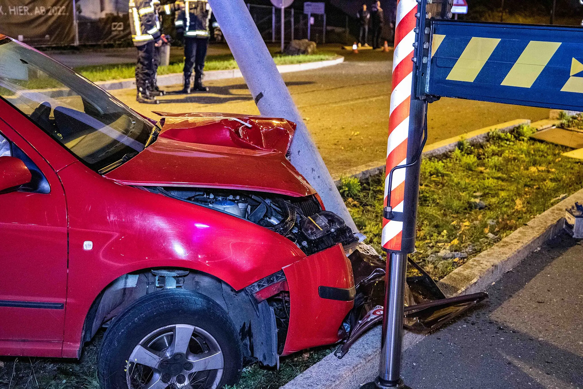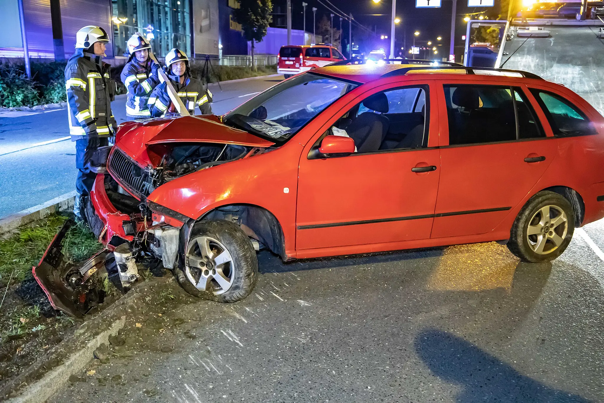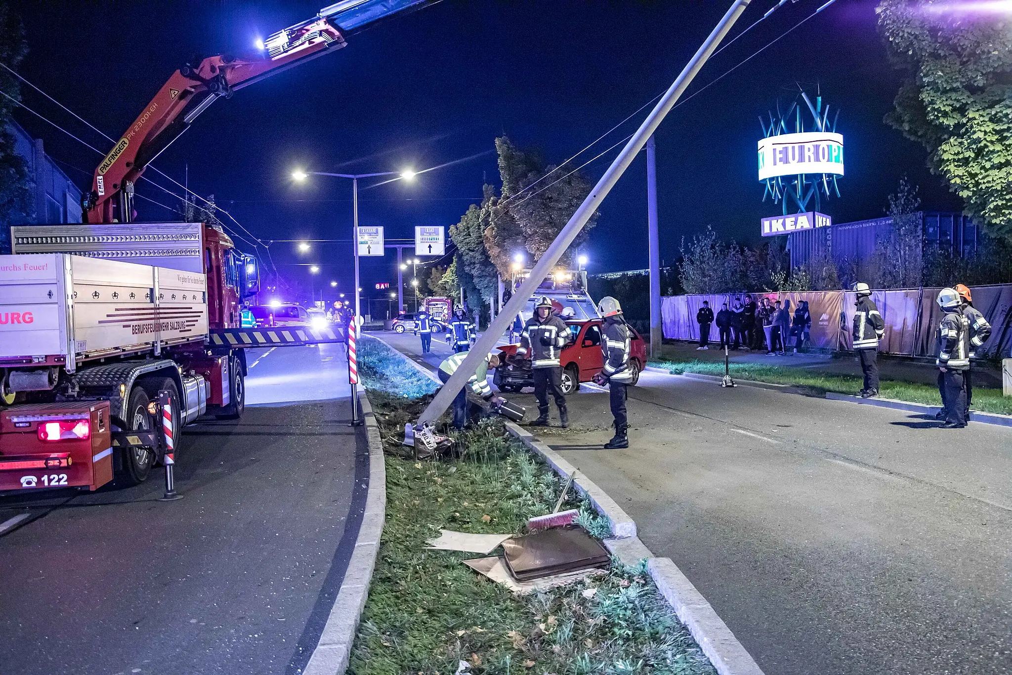 Beim Europark in der Stadt Salzburg krachte Montagnacht ein Pkw-Lenker mit seinem Fahrzeug gegen einen Laternenmast. Zwei Personen wurden dabei verletzt.
