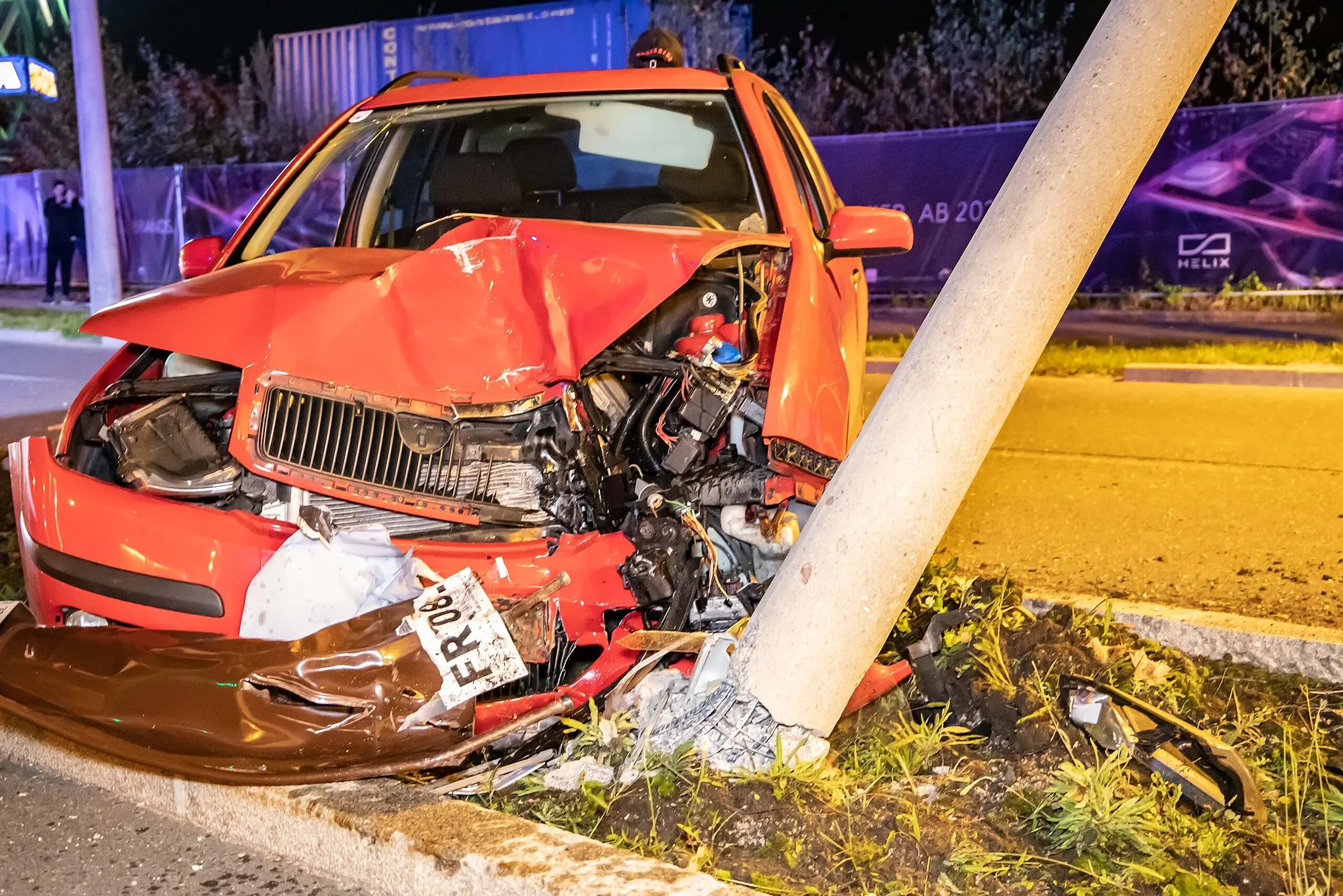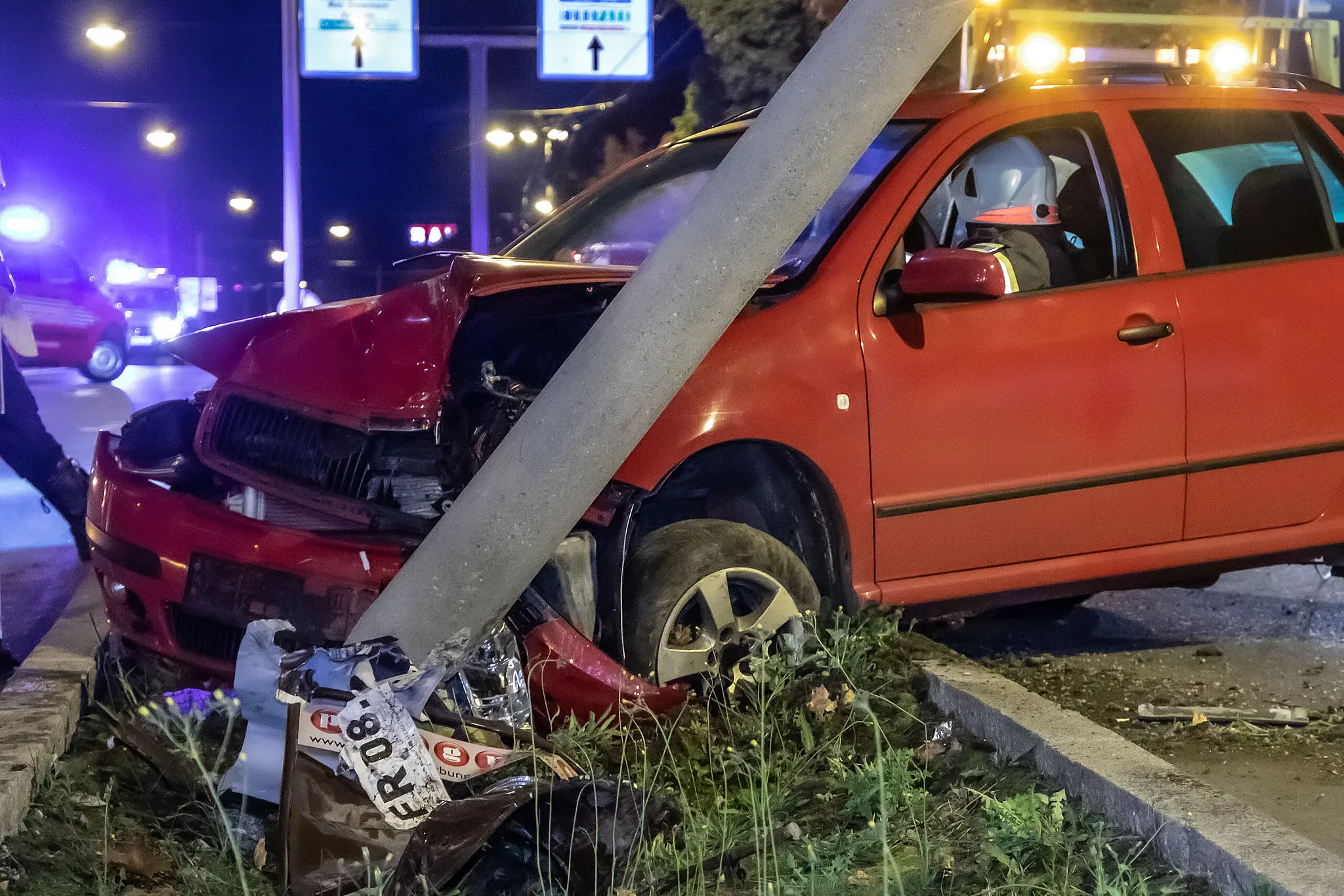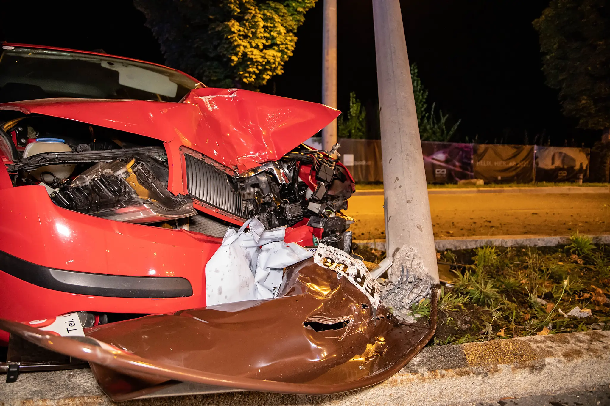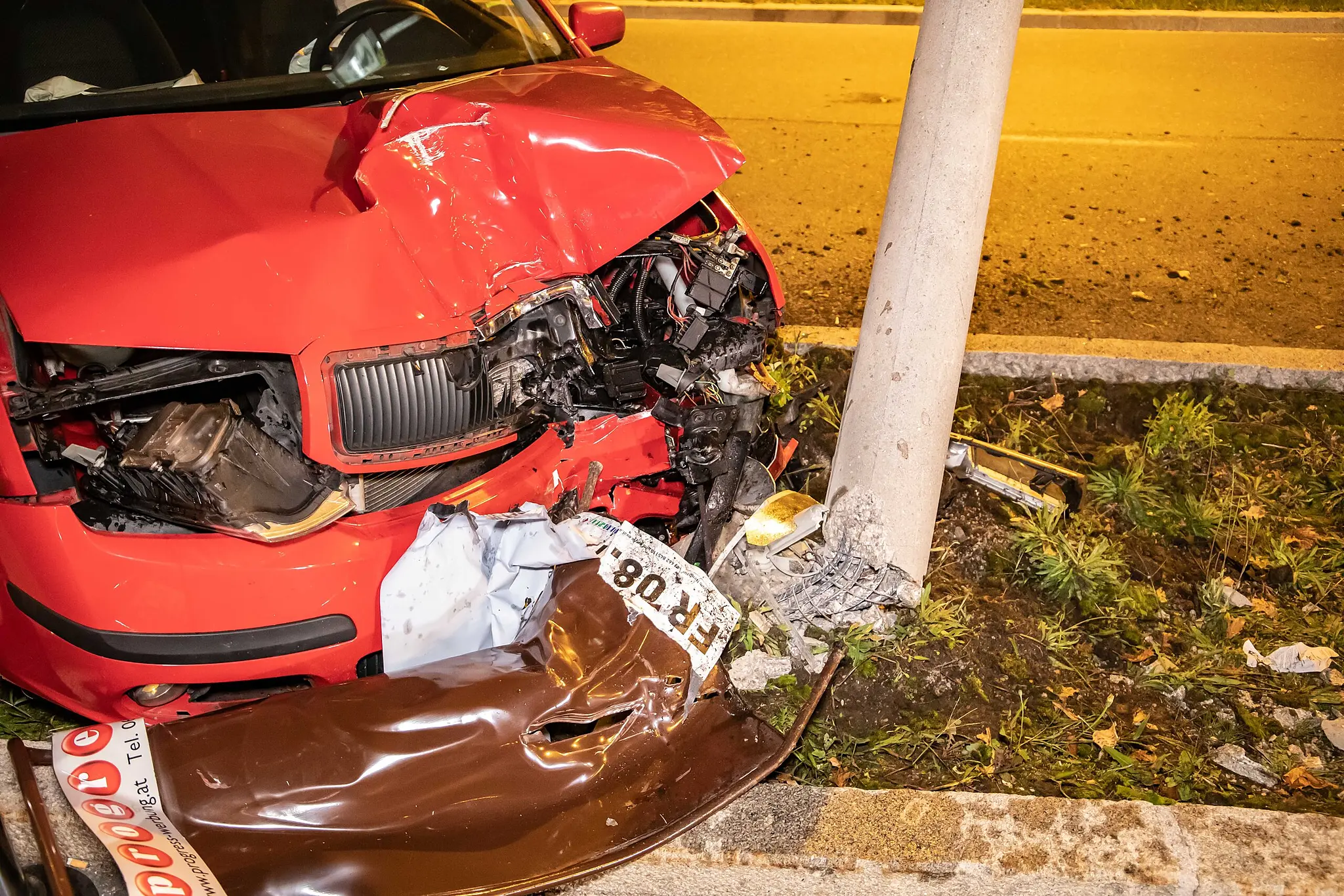 Beim Europark in der Stadt Salzburg krachte Montagnacht ein Pkw-Lenker mit seinem Fahrzeug gegen einen Laternenmast. Zwei Personen wurden dabei verletzt.