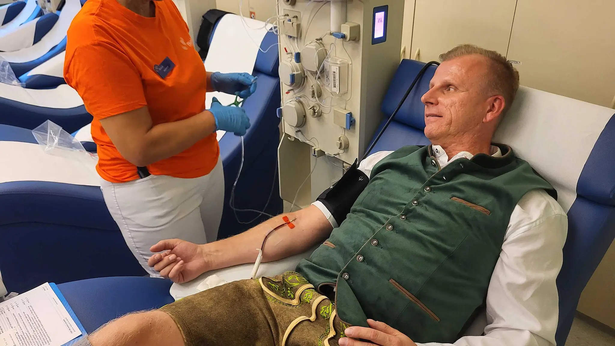 Mit fast 1.100 Spenden zählt Marco Schreiner zu den Top-Spendern in Salzburg. Er hat nach einem Autounfall selbst erfahren, wie wichtig Blutplasma-Therapien sind und hat im Interview davon erzählt: