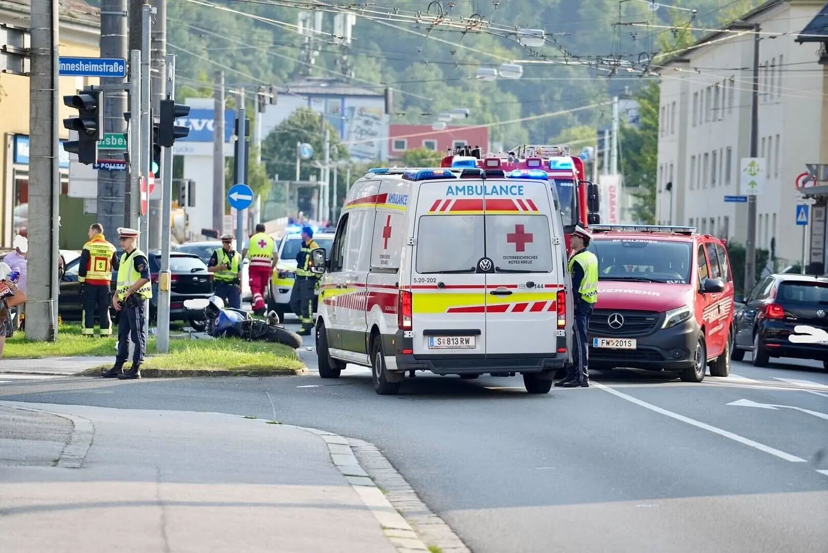 Ein Unfall zwischen einem Motorrad und einem Pkw ist am frühen Sonntagabend auf der Linzer Bundesstraße an der Kreuzung mit der Minnesheimstraße in der Stadt Salzburg passiert. Der Biker wurde dabei schwer verletzt, so das Rote Kreuz.