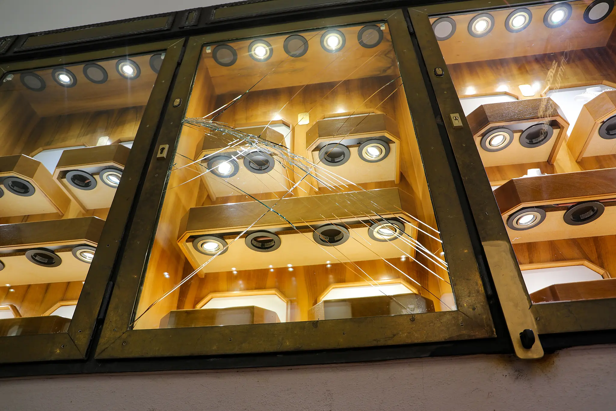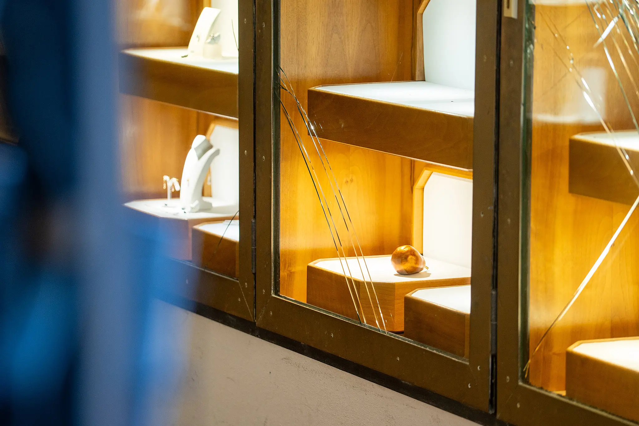 Beim Einbruch ins Juweliergeschäft Schneider in der Salzburger Altstadt wurden Glasvitrinen zerstört und Schmuck gestohlen.