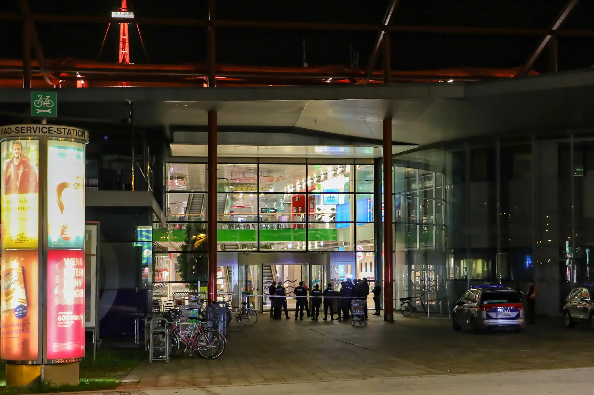 Die Räumung sei wegen einer gefährlichen Drohung notwendig gewesen – genaueres konnte die Polizei aus ermittlungstaktischen Gründen bislang nicht mitteilen. Das gesamte Einkaufszentrum sowie die Tiefgarage wurden von einem Großaufgebot an Einsatzkräften durchsucht. Entwarnung konnte gegen 21.30 Uhr gegeben werden, teilte die Salzburger Polizei später am Abend mit. Verdächtiges sei nicht gefunden worden.