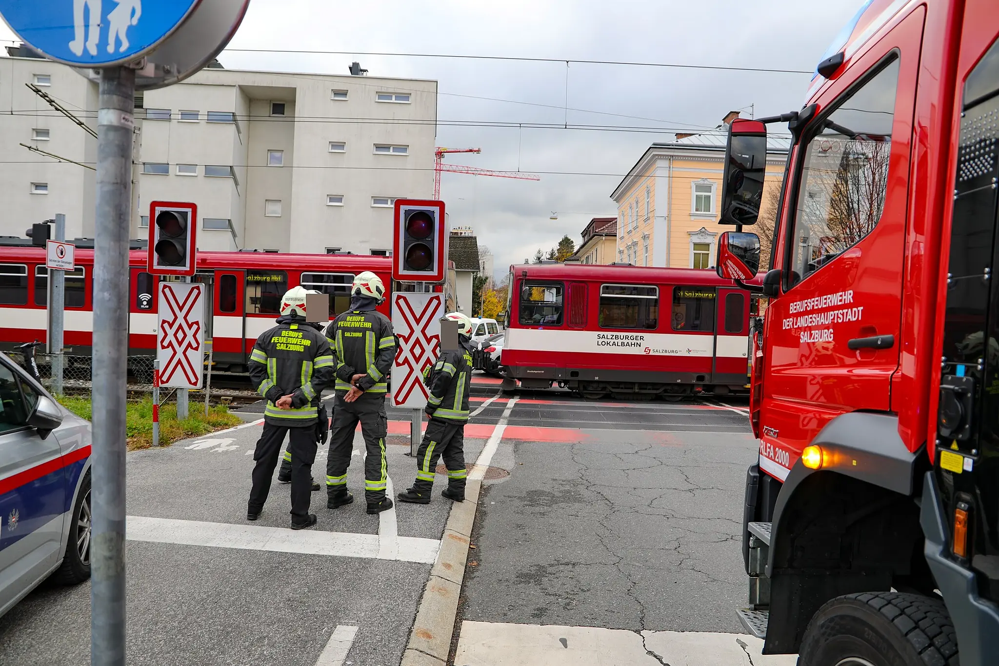 Zusammengestoßen sind ein Zug der Salzburger Lokalbahn und ein Auto in der Stadt Salzburg.