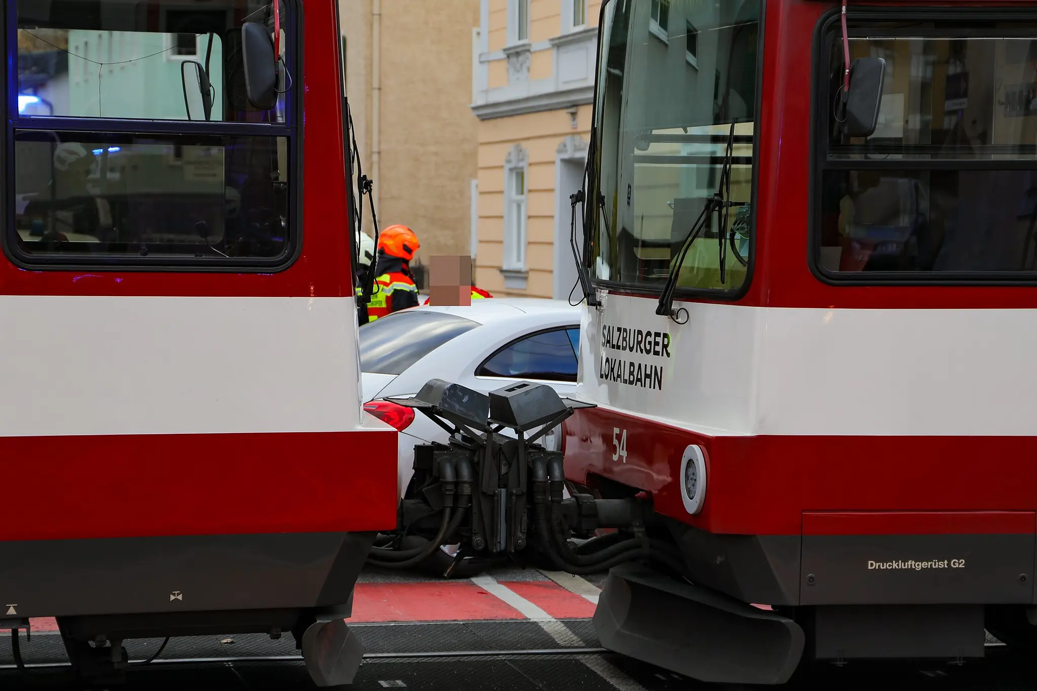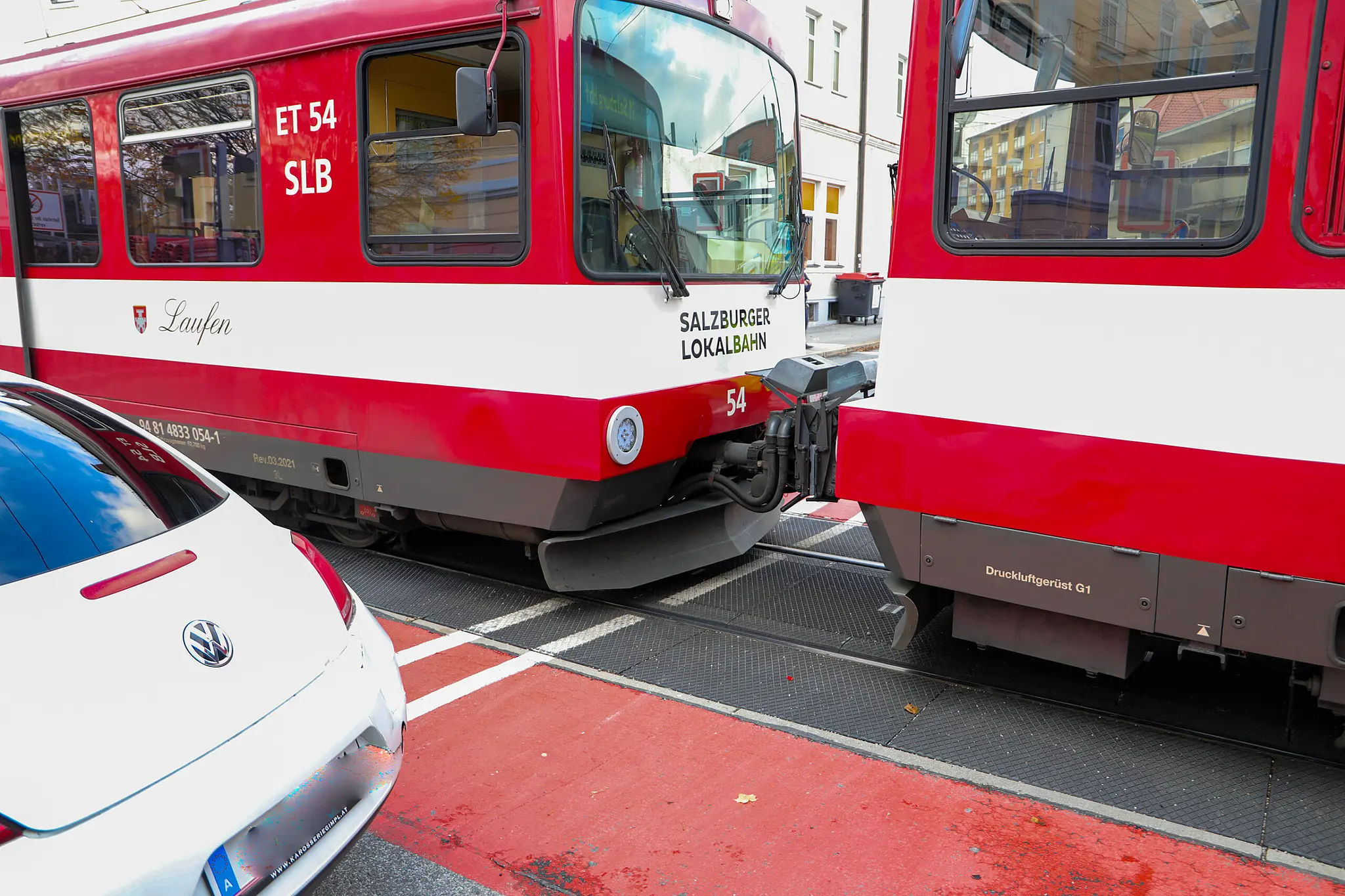 Ein Zug der Salzburger Lokalbahn und ein Auto sind heute Nachmittag in der Stadt Salzburg kollidiert. Der Zusammenstoß endete glimpflich.