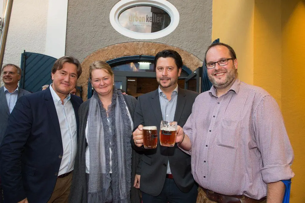 Mit einem Doppelbieranstich wurde der Urbankeller neu eröffnet.