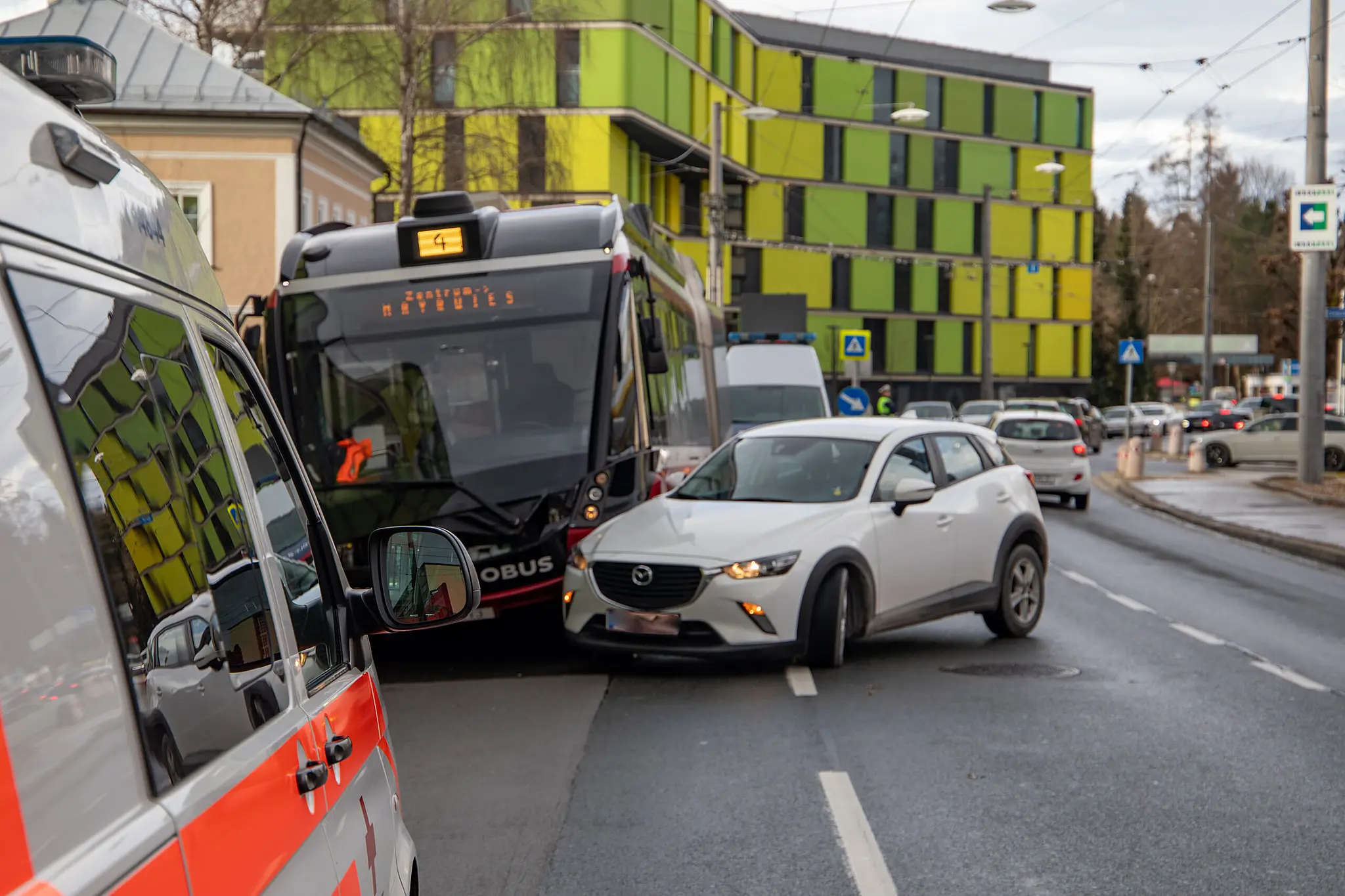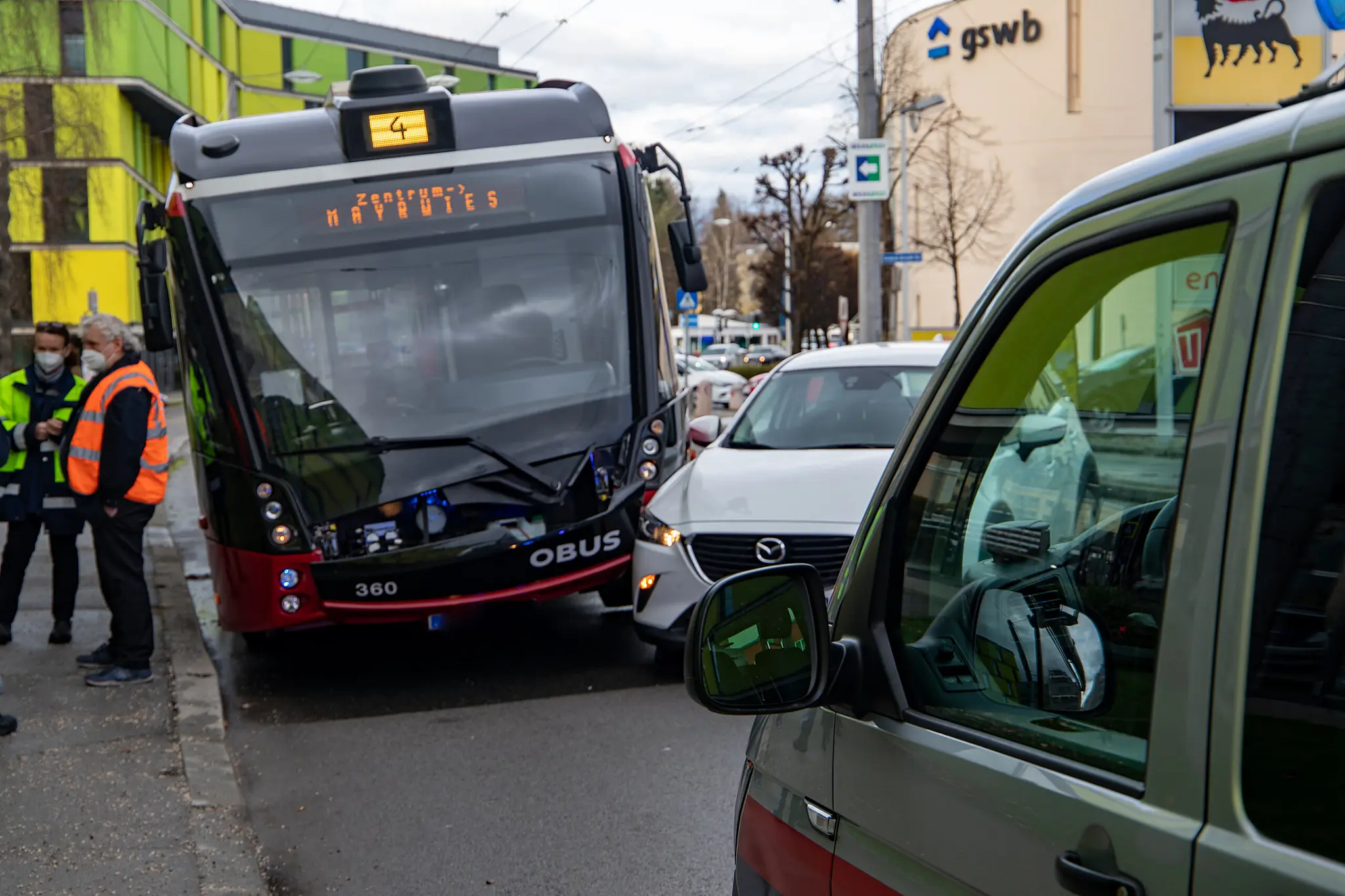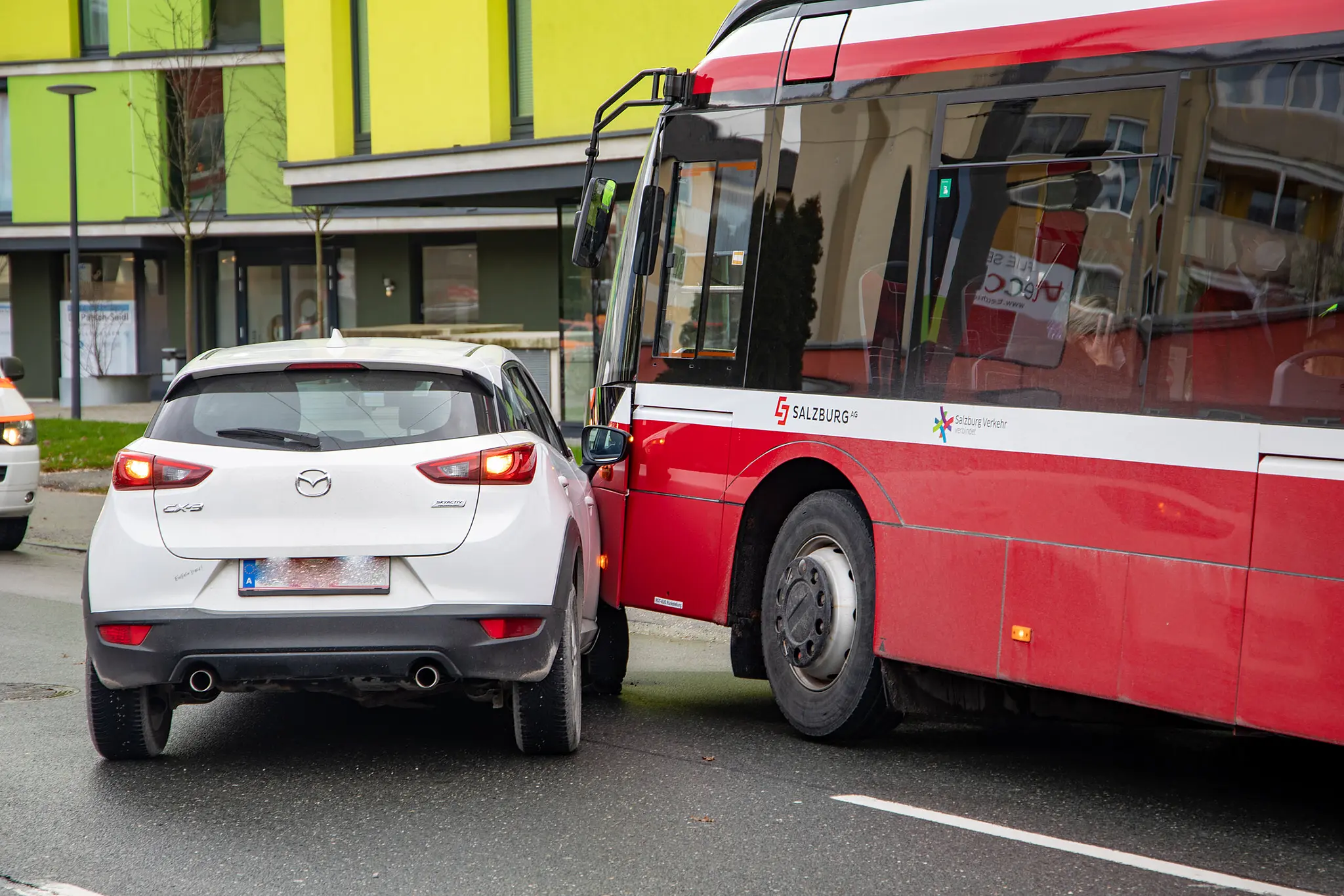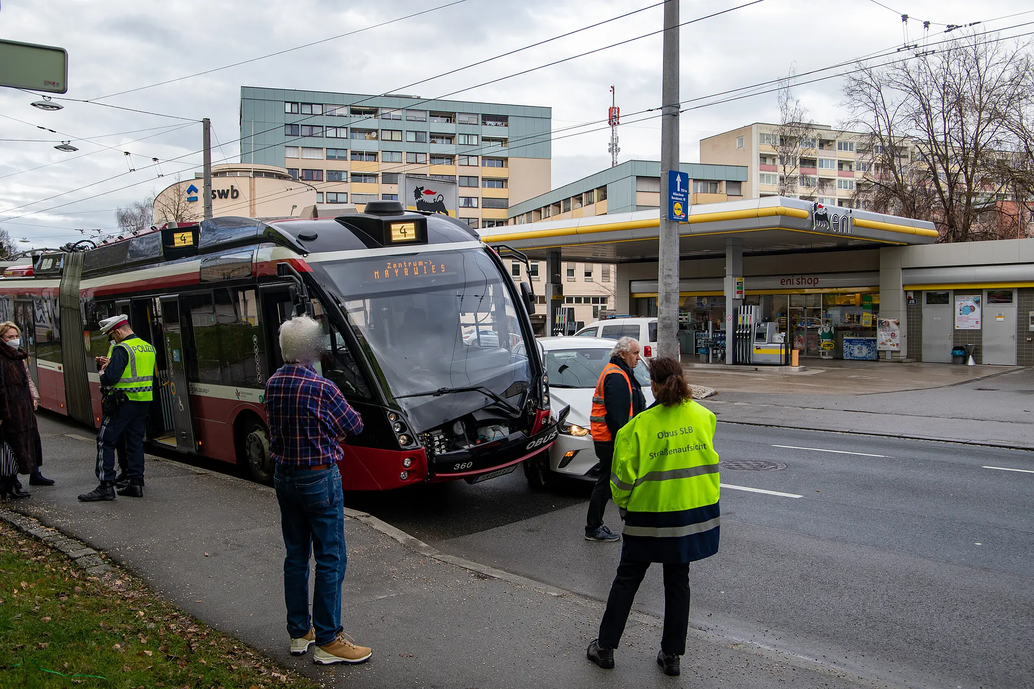 In der Ignaz-Harrer-Stra\u00dfe prallte ein Pkw in einen Obus.\u00a0