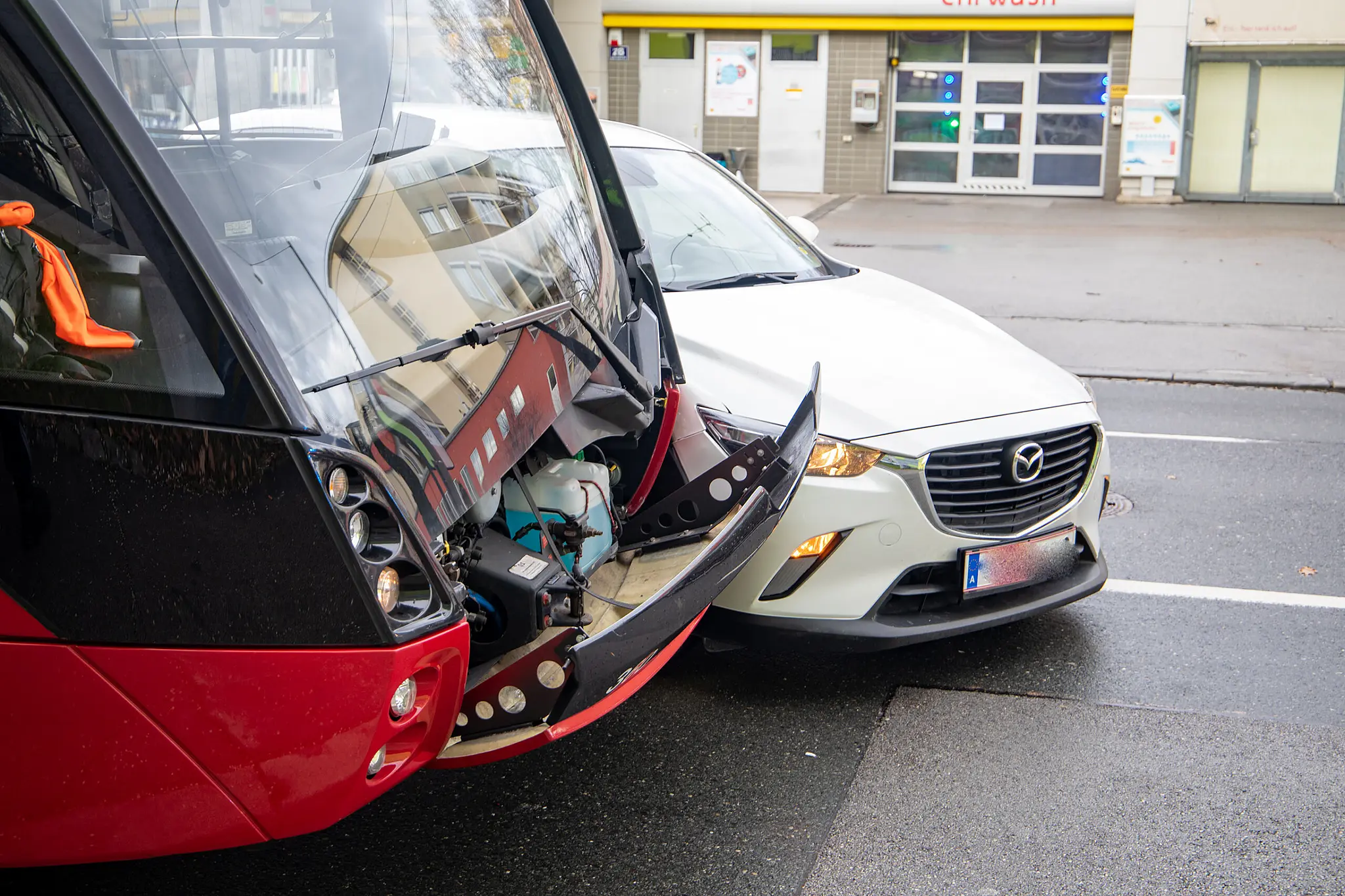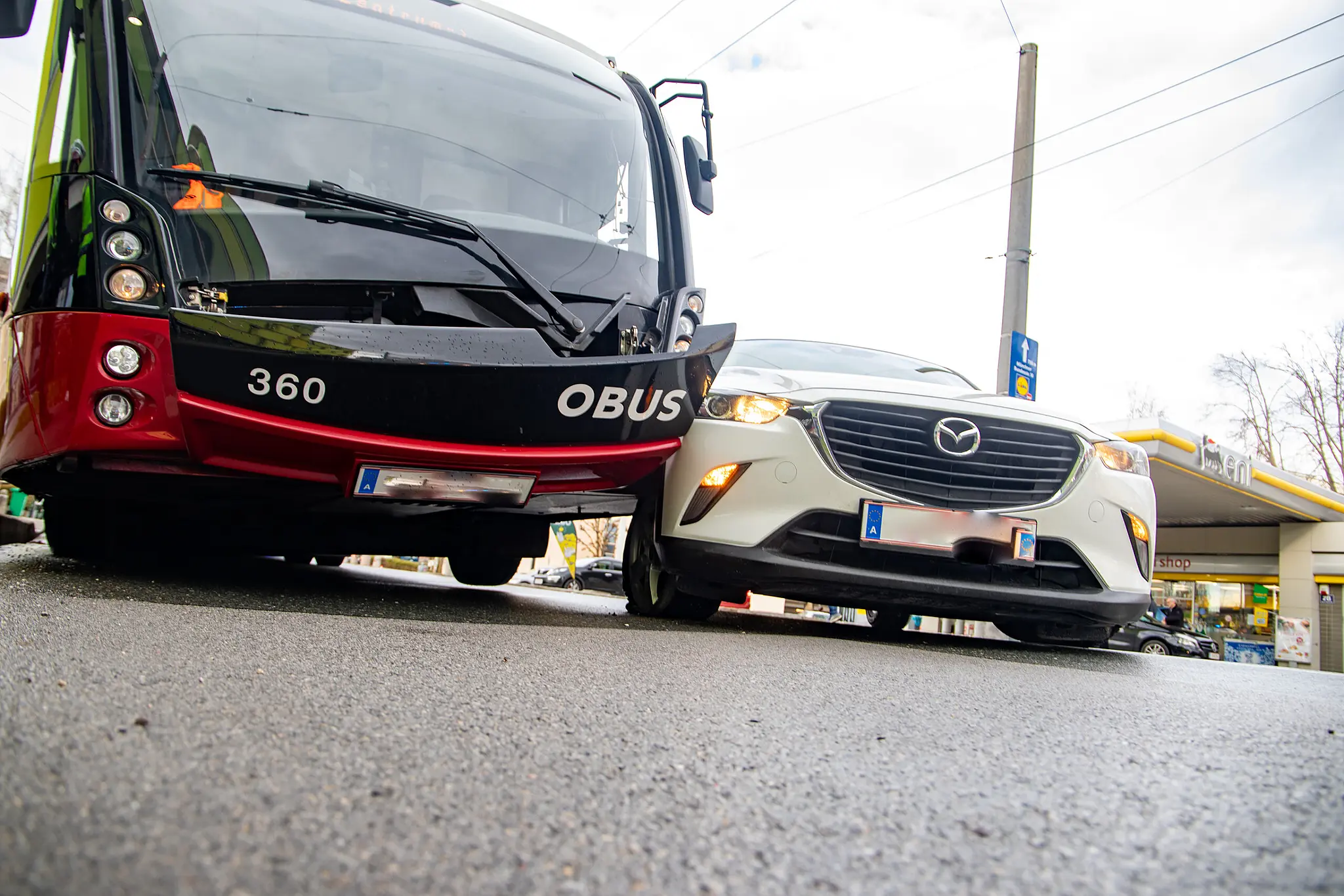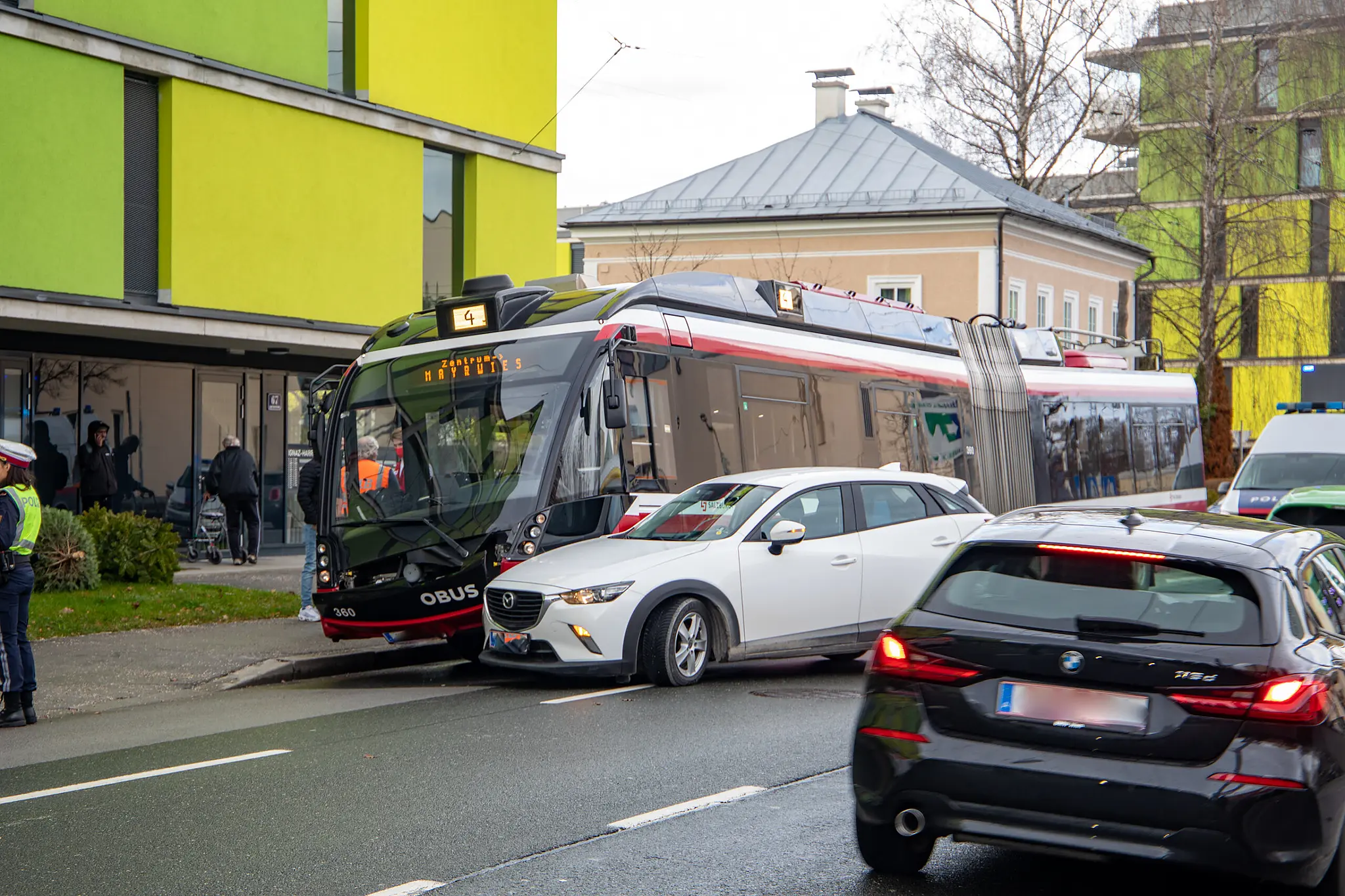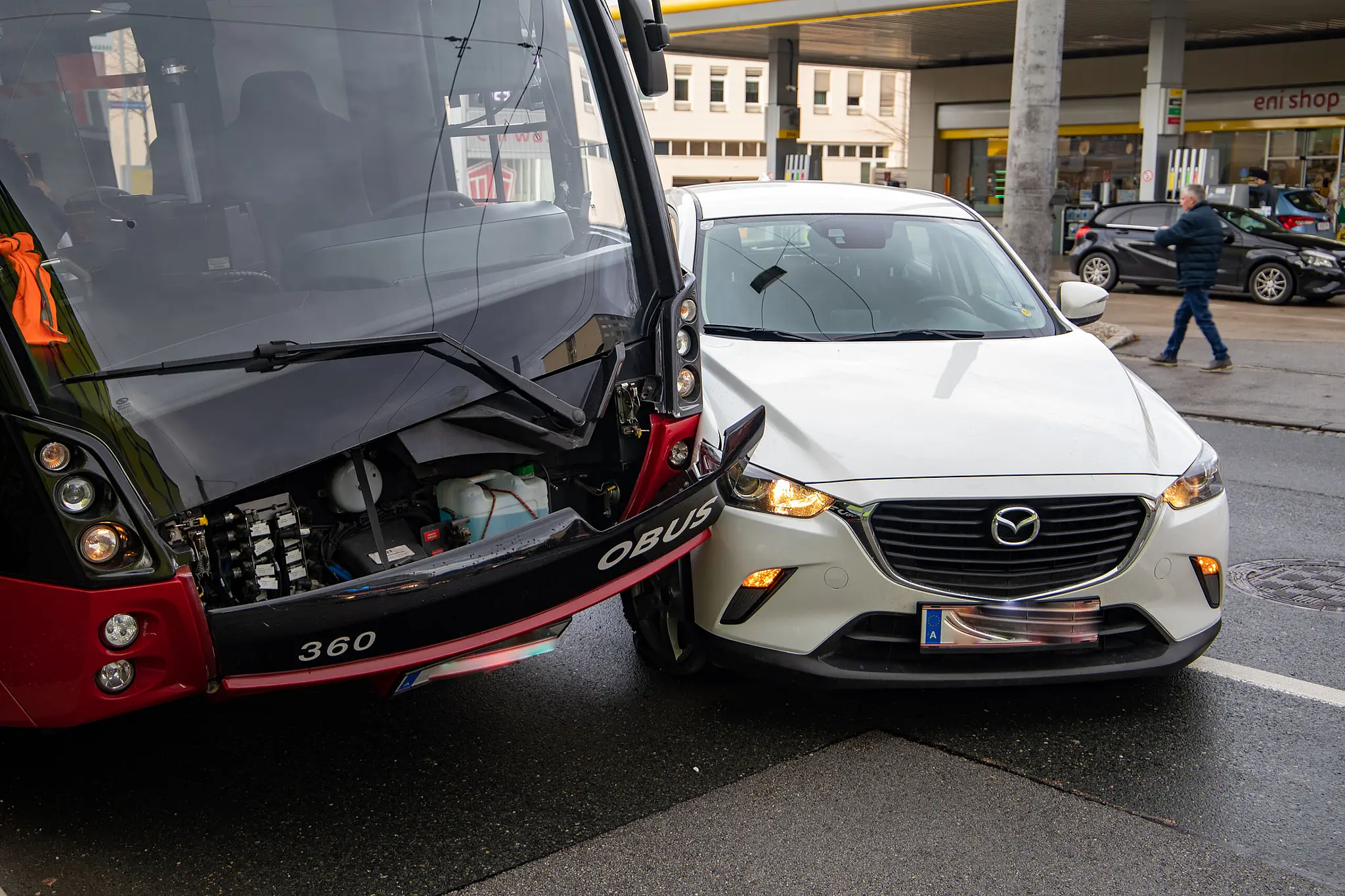In der Ignaz-Harrer-Stra\u00dfe prallte ein Pkw in einen Obus.\u00a0